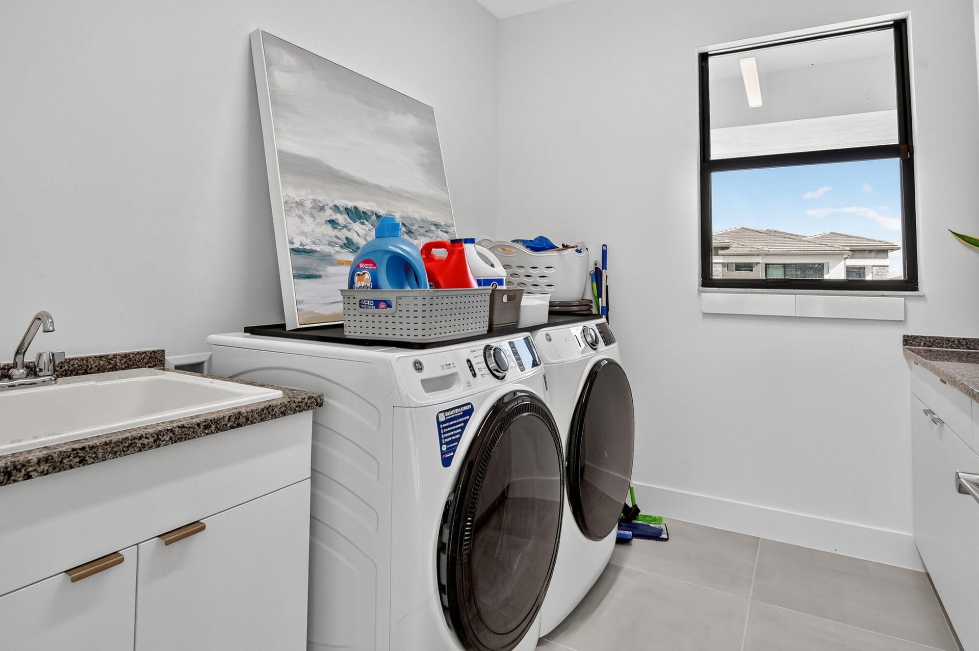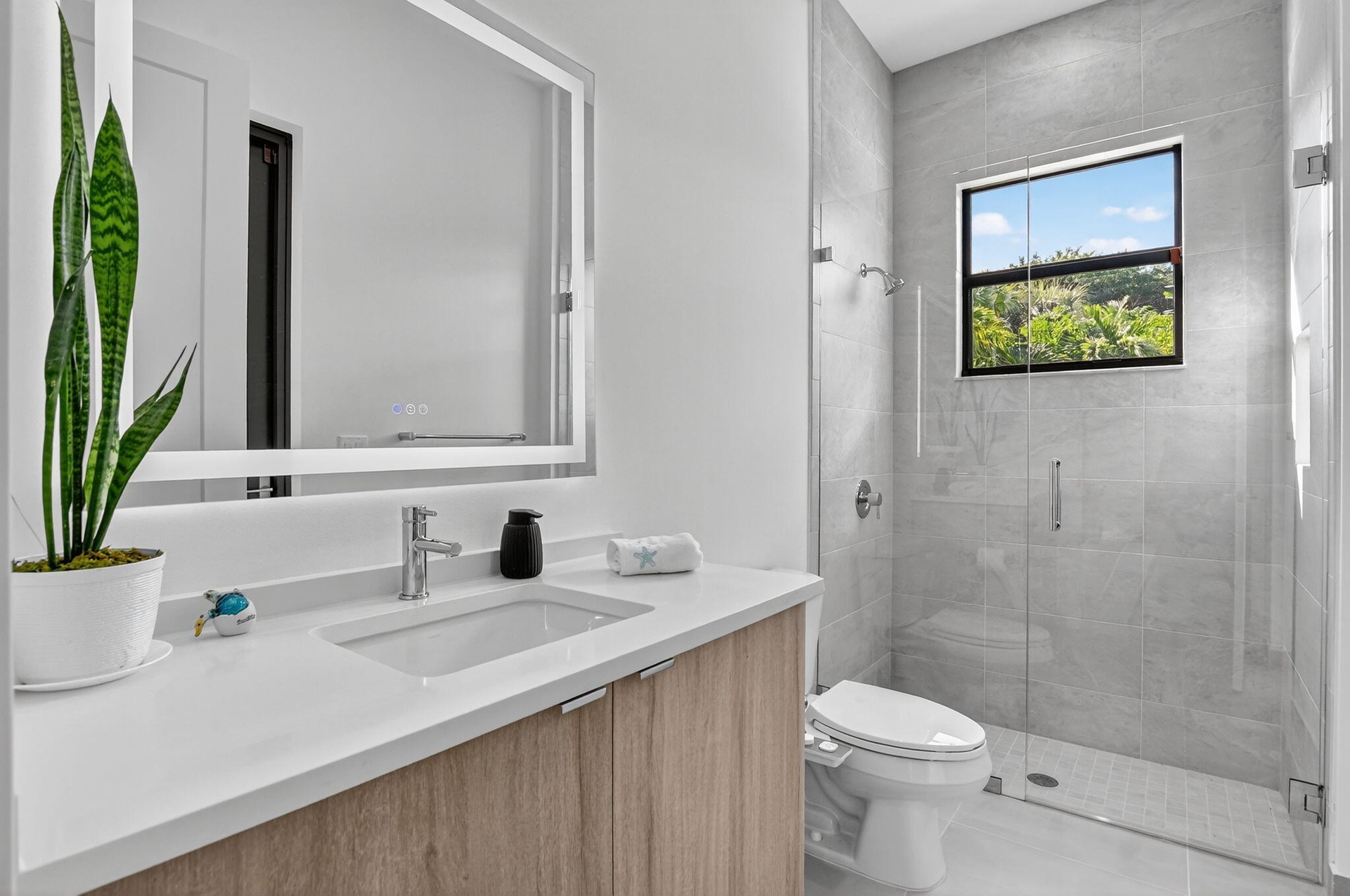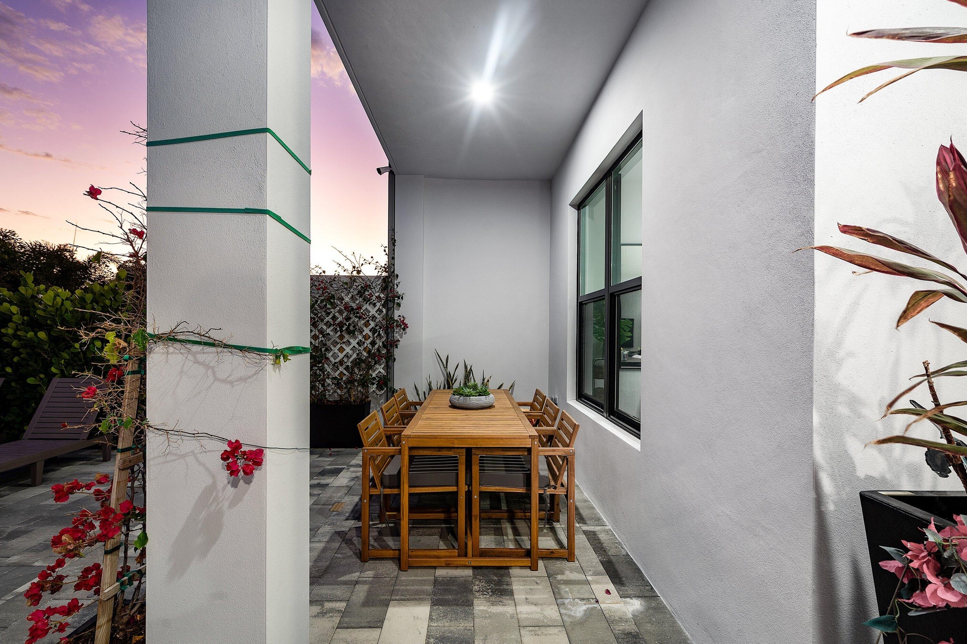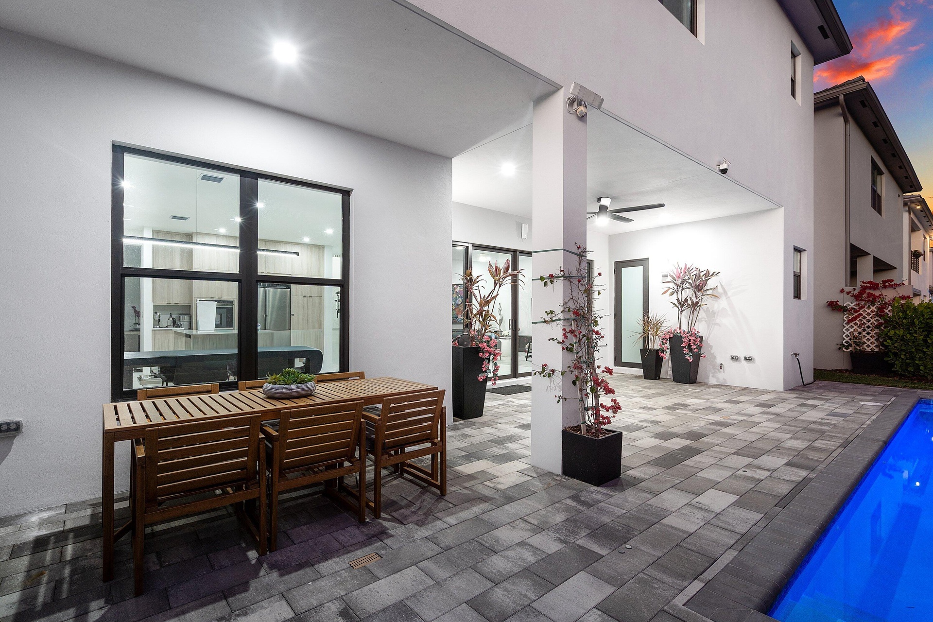 Step outside to your private, lush backyard oasis, highlighted by a saltwater pool, perfect for relaxing or hosting unforgettable gatherings.