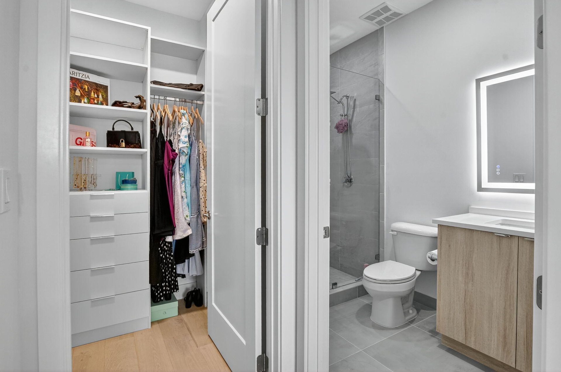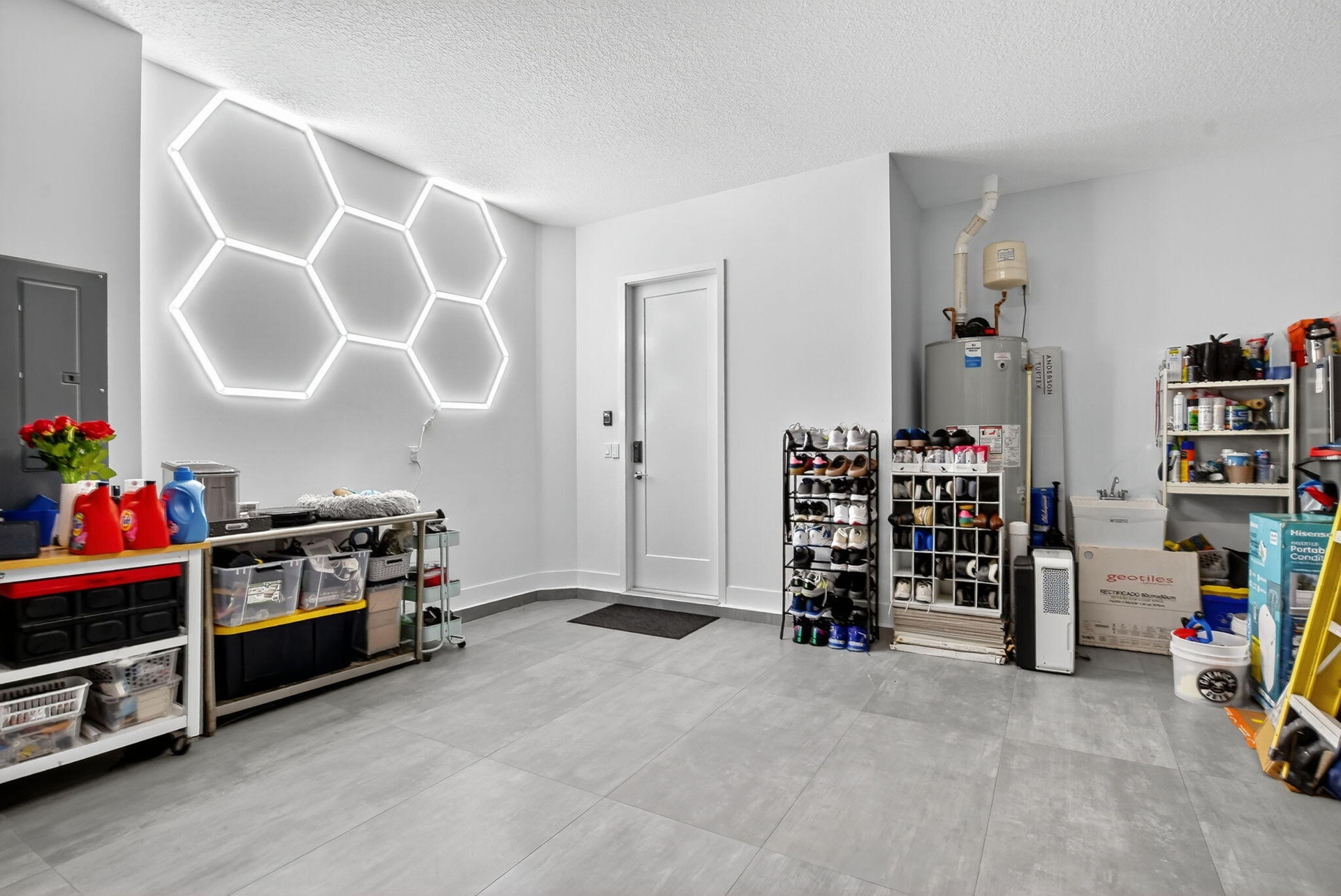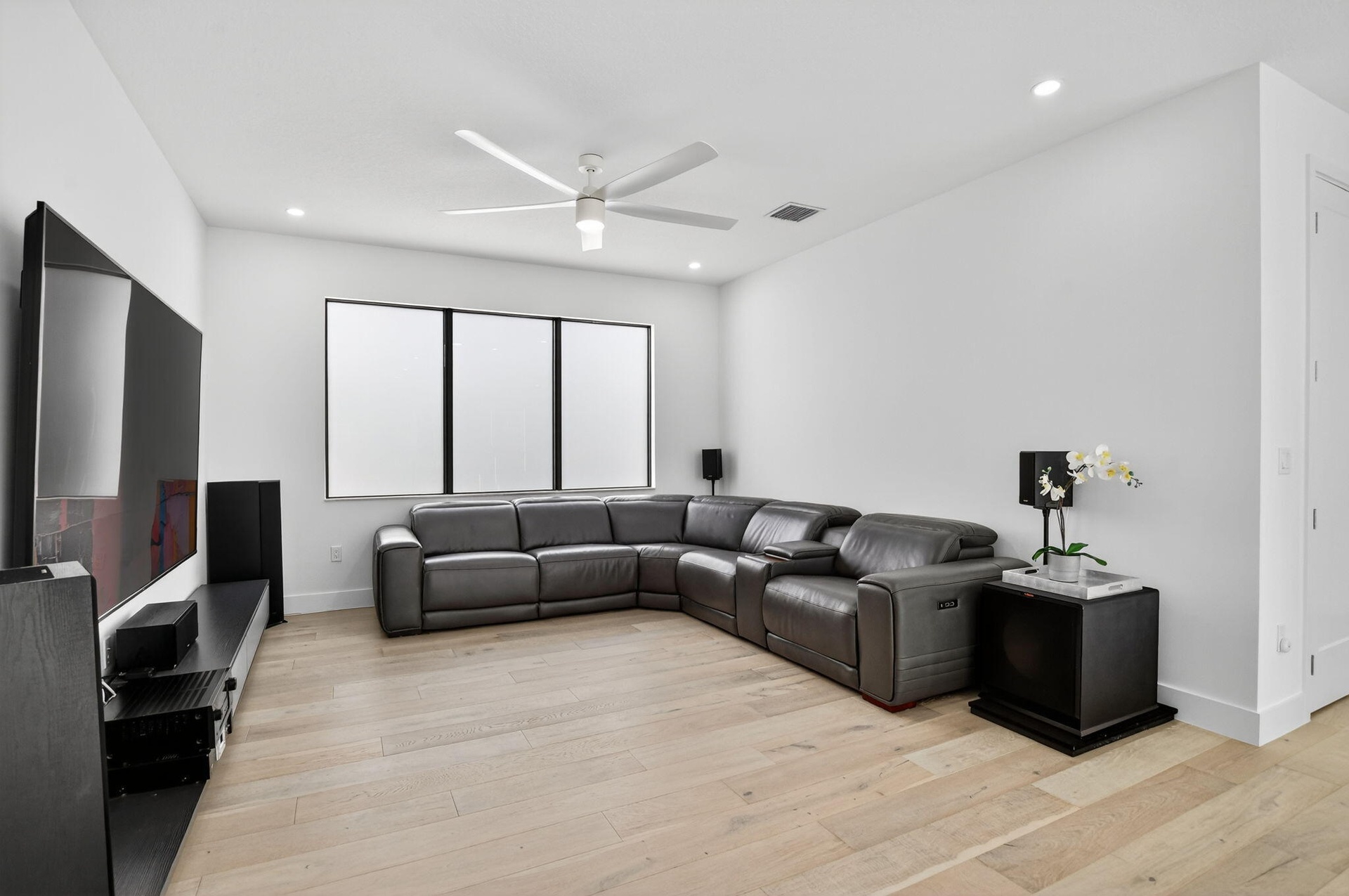 The open layout features upgraded tile and wood flooring throughout, a formal dining room perfect for entertaining, and a convenient downstairs suite ideal for guests or multigenerational living. The chef's kitchen is a true showpiece, complete with floor-to-ceiling cabinetry and seamless flow into the main living areas. All bathrooms have been fully upgraded and include frameless glass shower doors, floor to ceiling upgraded tile and quartz countertops, delivering a sleek, spa like experience. Impact windows and doors provide peace of mind while enhancing energy efficiency.