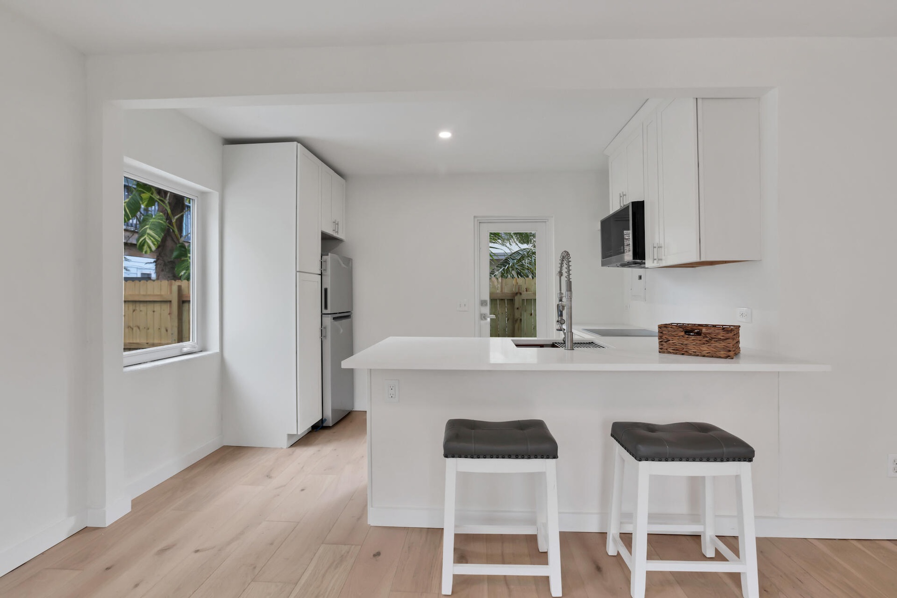 Modern coastal living meets historic charm and timeless beauty at 123 S Ocean Breeze. With a private guest house complementing the main residence, this beautiful property offers a rare blend of character, location, and versatility delivering an undeniable wow factor just blocks from the Intracoastal. The main residence, built in 1925, offers 3 bedrooms and 3 bathrooms, two are primary suites. Newly installed metal wire staircase railings lead you to the second-floor primary suite oasis, where a charming reading nook invites slow mornings with coffee and a good book before retreating to your private sanctuary. Natural light pours through the home, creating a warm and inviting energy throughout. Features include impact windows and doors, and a roof installed in 2021. Dade County pine hardwood floors ,Tile, and Engineered hardwood flooring. Vaulted ceilings and historic architectural details are thoughtfully paired with modern finishes in every corner of the home. The kitchen is a dream, showcasing soft-close cabinetry, stone countertops, and new stainless steel appliances, including a gas stove perfect for both everyday living and entertaining. Step outside to newly landscaped grounds with room for a pool (city permitted). What truly sets this property apart is the detached guest house (built in 1954), newly painted and fully updated with a kitchen, flooring, and impact windows. This versatile space is ideal for guests, a private office, or as a rental opportunity for additional income. Property offers street parking as well as 3 additional parking spots in the rear of the home. Schedule your private showing today and experience the beauty of this unique property for yourself.