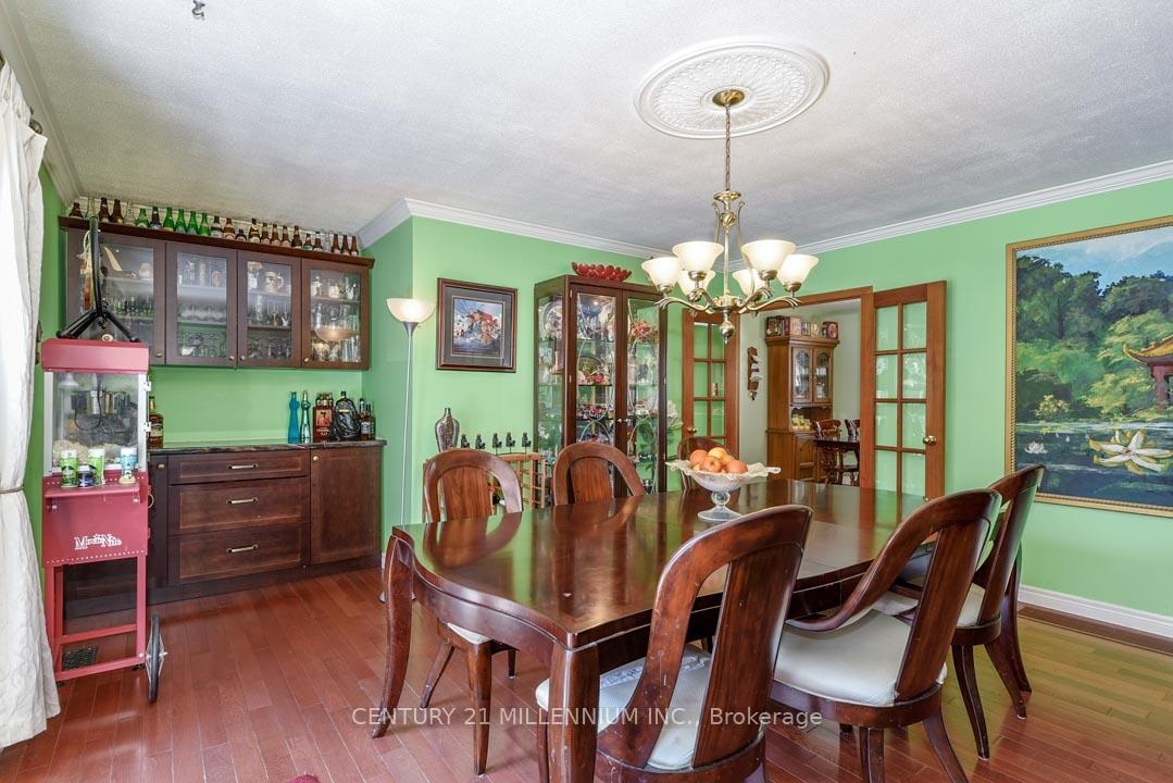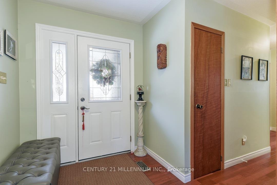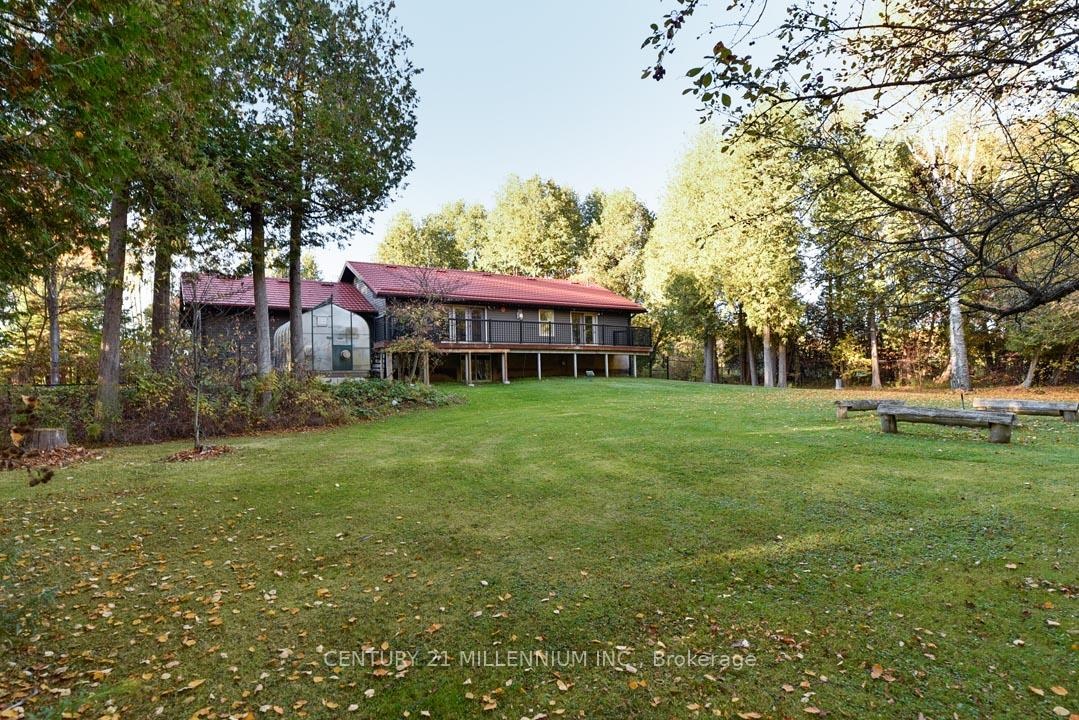 Located on a paved country road, this 3+2 bedroom, 3-bathroom raised bungalow set on a private, treed 2.89-acre lot features a pond, stream, bush, trails, fenced backyard, circular driveway, and a detached approx. 24 ft. x 30 ft. outbuilding with excellent workshop potential. An ideal property for nature lovers, hobbyists, and extended family living! The main level features an oak kitchen with stainless steel appliances, bright living spaces, and a south-facing deck overlooking the private backyard. The Living room offers hardwood flooring and a propane gas fireplace. Fabulous for extended family or in-law living, the finished basement with above-ground windows includes a spacious rec room with a gas woodstove, laundry area, hobby/workshop, 3-piece bath, bedrooms #4 & #5, and a cold room. The home has a steel roof, vinyl siding, and vinyl casement/awning windows, along with a ground-source heat pump and a fenced backyard. The attached, insulated approx. 23 x 23-foot garage is propane-heated w/ 11 ft. ceiling, a 16 x 10 ft. insulated roll-up steel door, and includes a vertical platform lift (elevator) for enhanced accessibility. An 8 ft. x 12 ft. greenhouse has water, hydro and propane heater. A fabulous opportunity combining privacy, functionality, and natural beauty in a tranquil setting close to major commuter highways 10, 9, and Airport Road. Minutes to all shopping amenities and hospital in nearby Orangeville, 20 mins to Brampton, 1hr to Toronto and 45 minutes to Pearson Airport.
