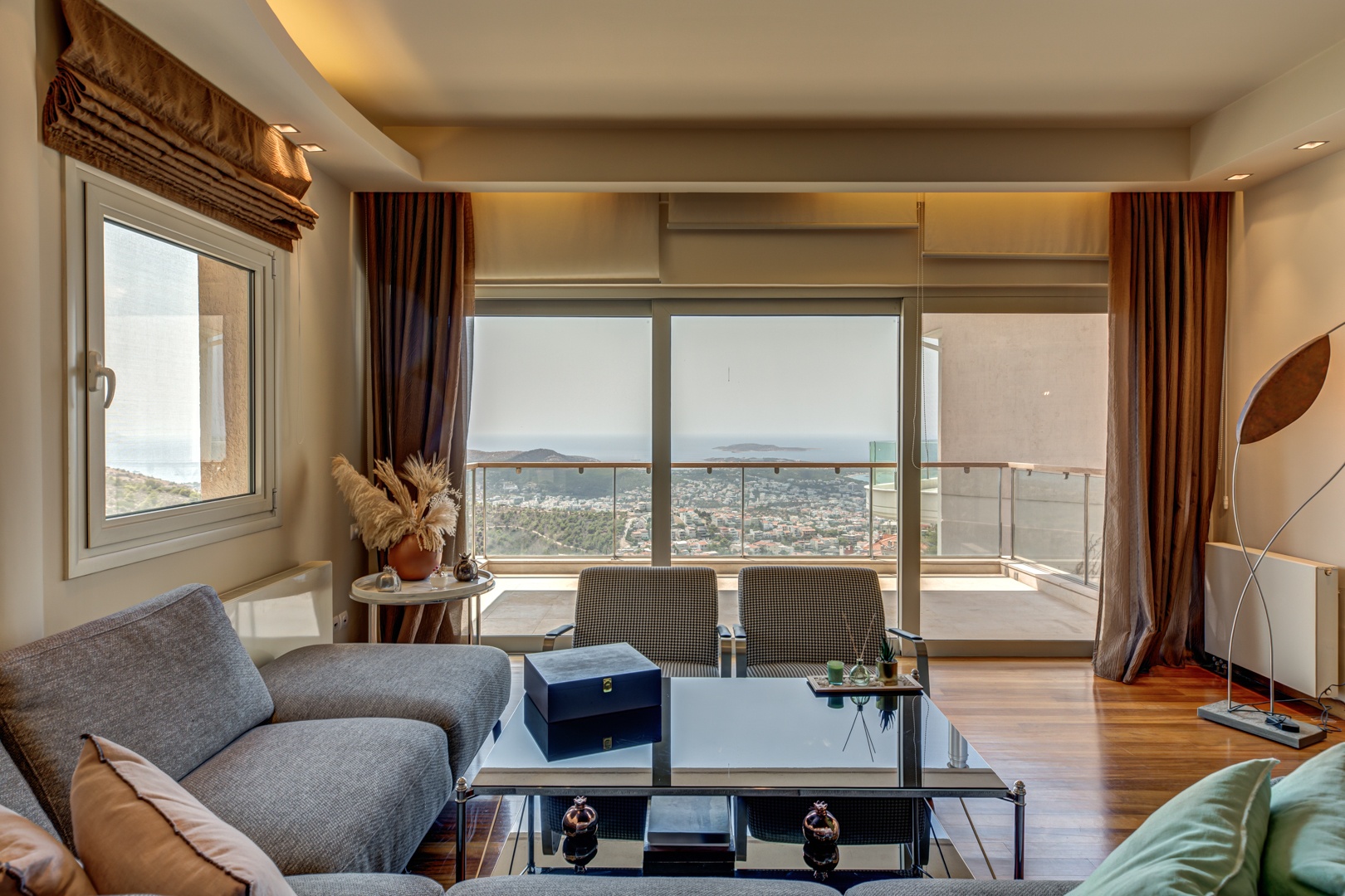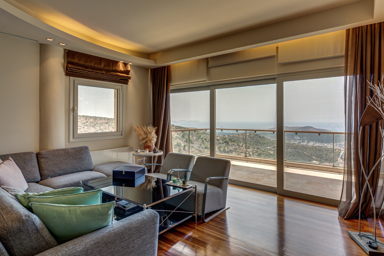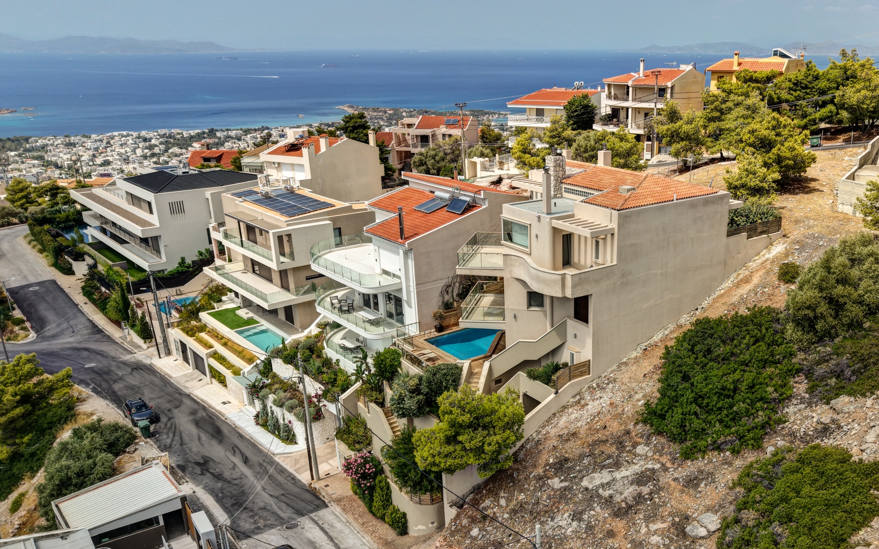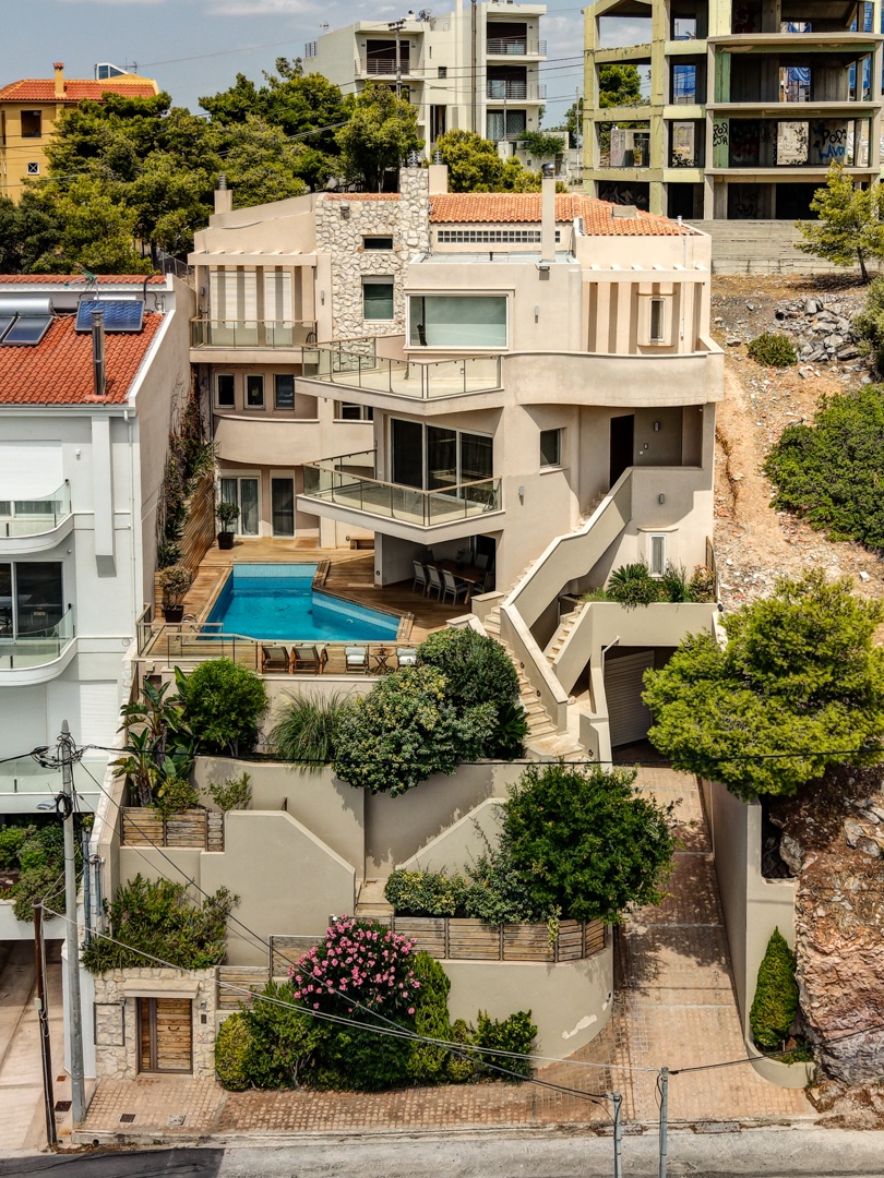 Presenting a 3-level Villa in Panorama Voula, built in 2007, set on a dead-end street ensuring peace and increased security, with unlimited panoramic seaviews towards the Saronic Gulf.