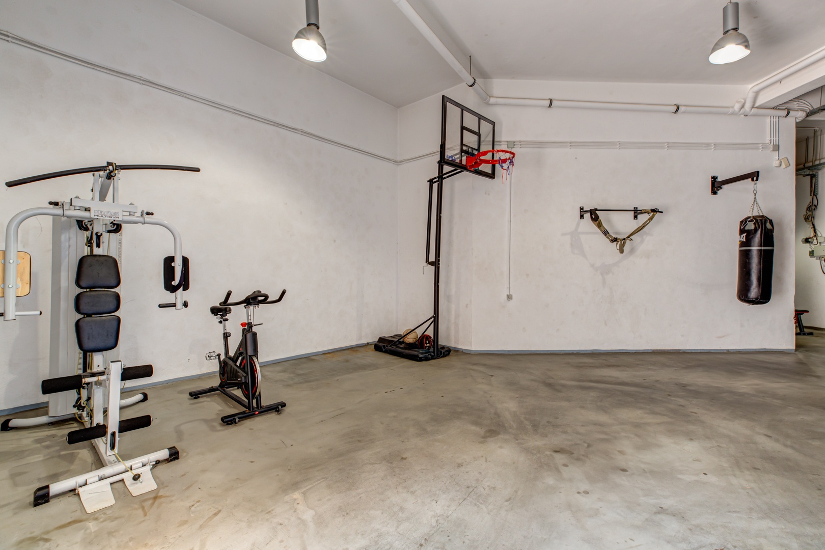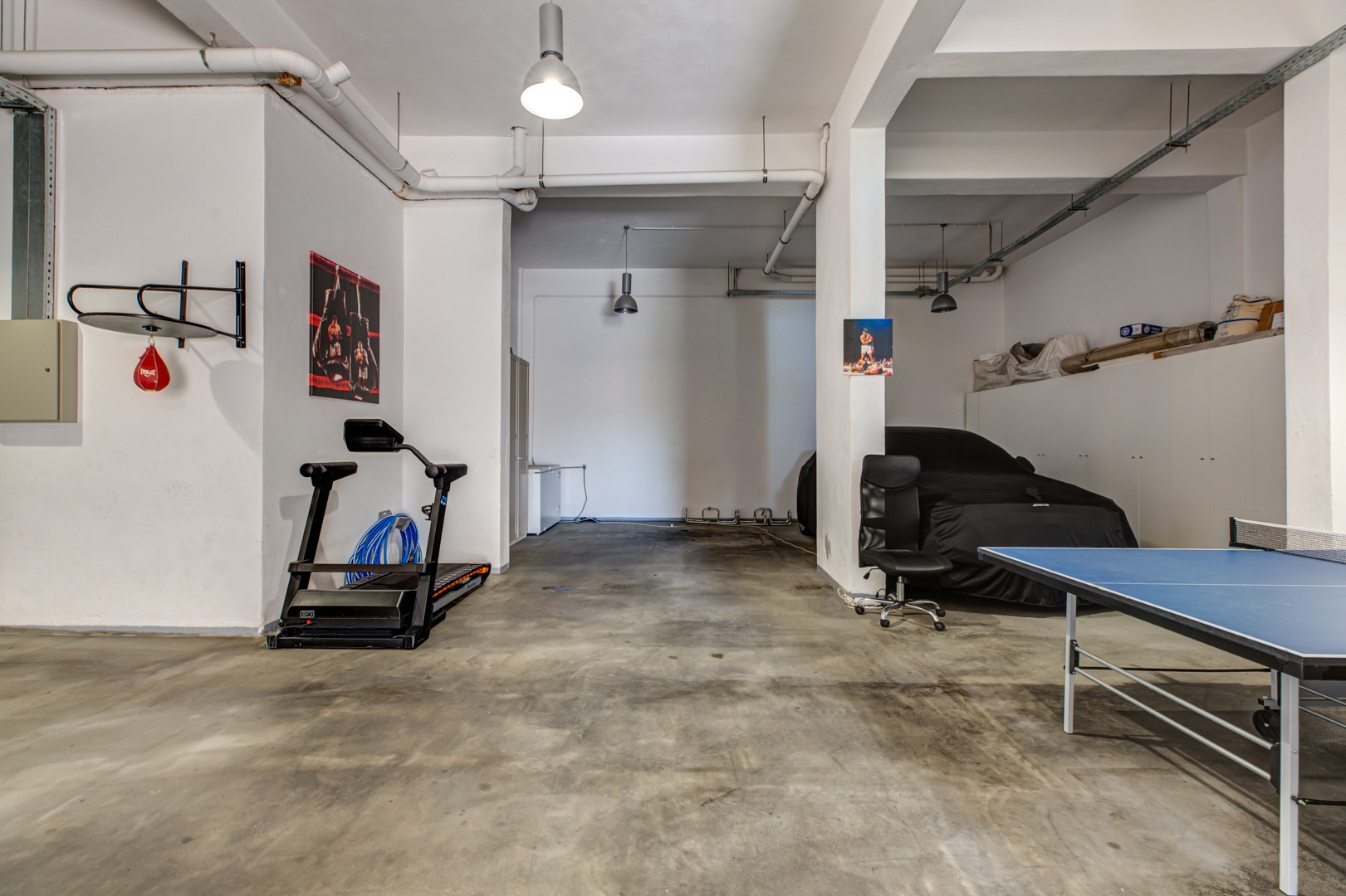 Gym area with equipment, Warehouses & Engine Rooms, totalling area 220+ m2