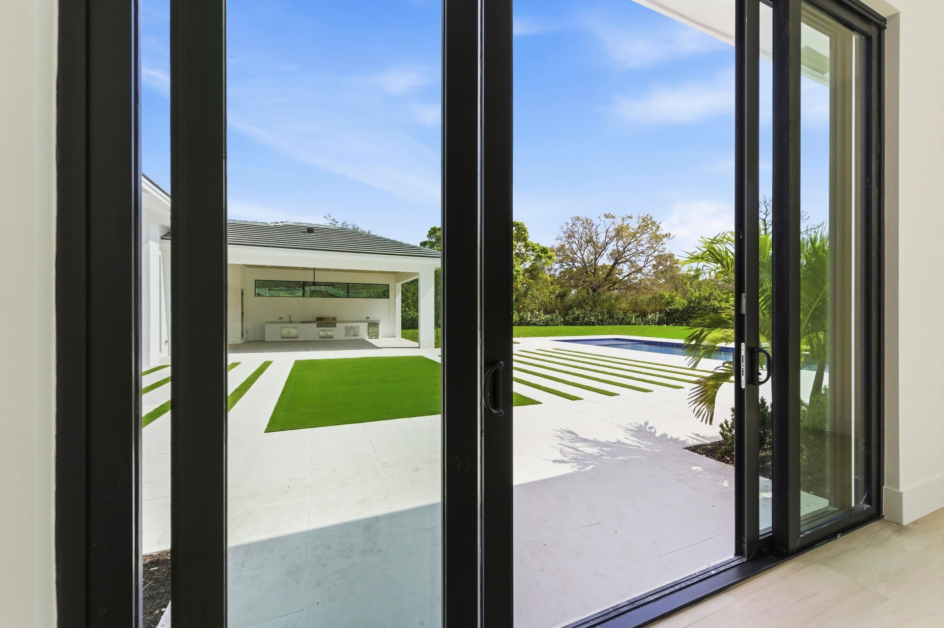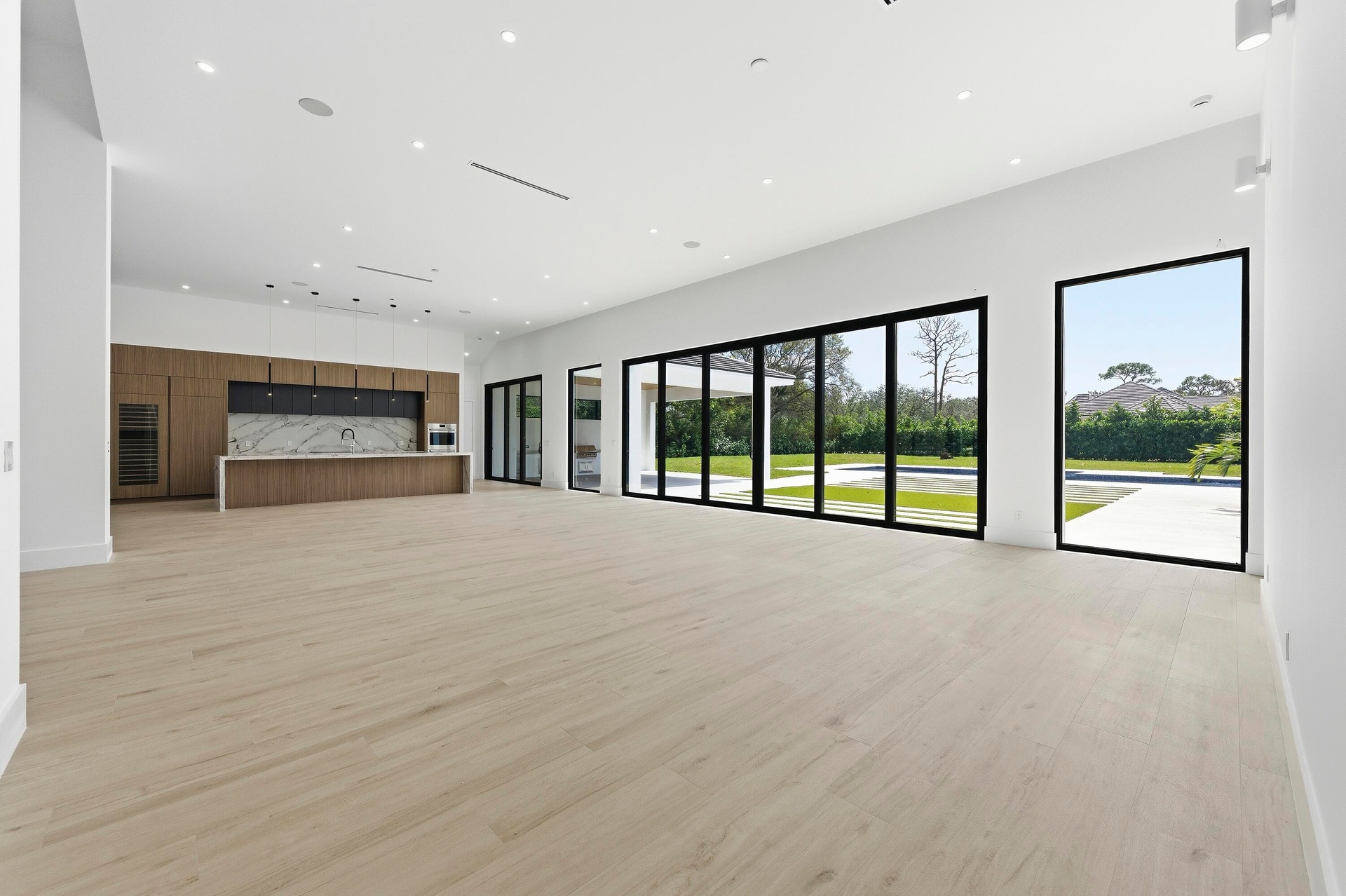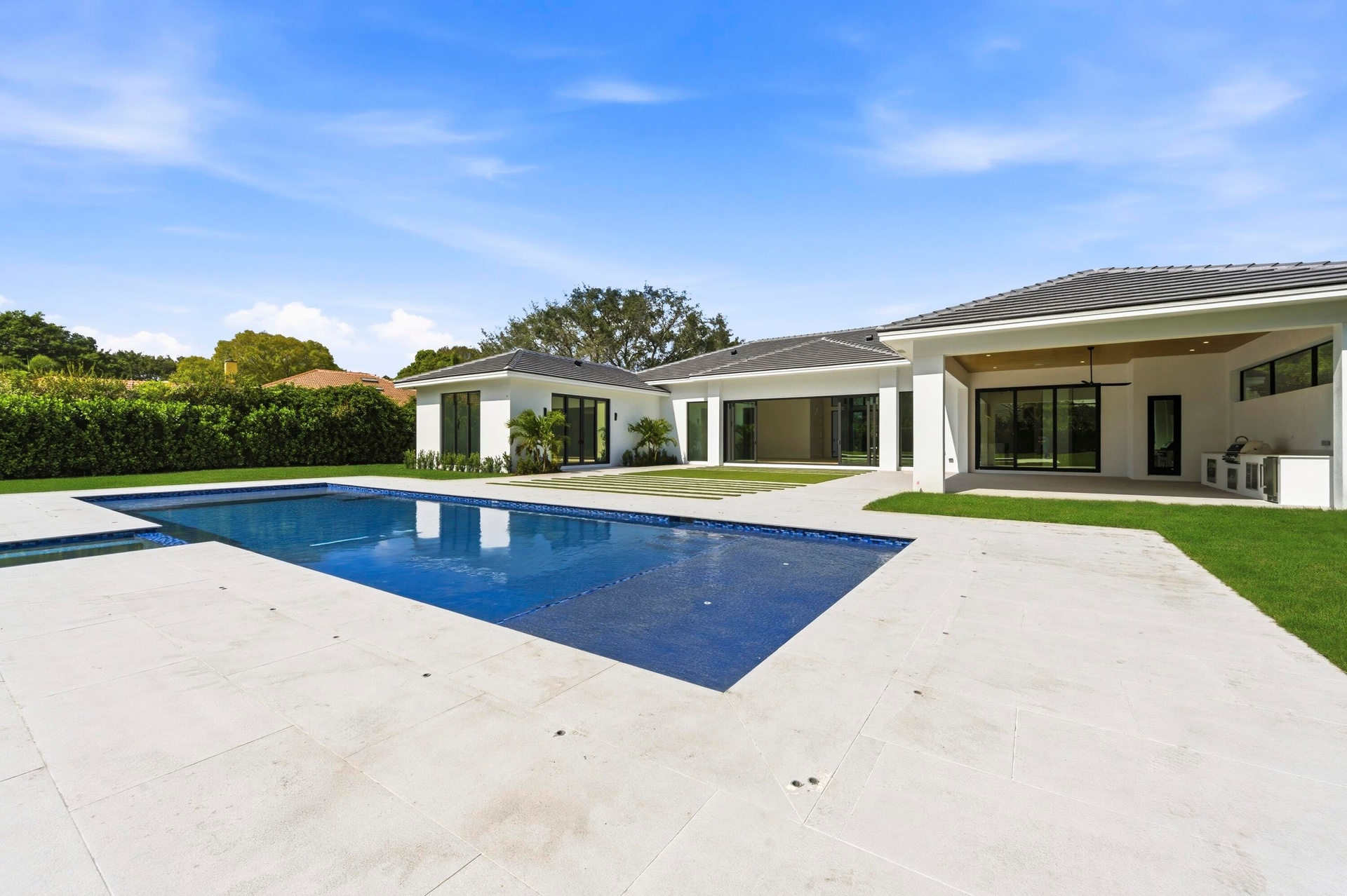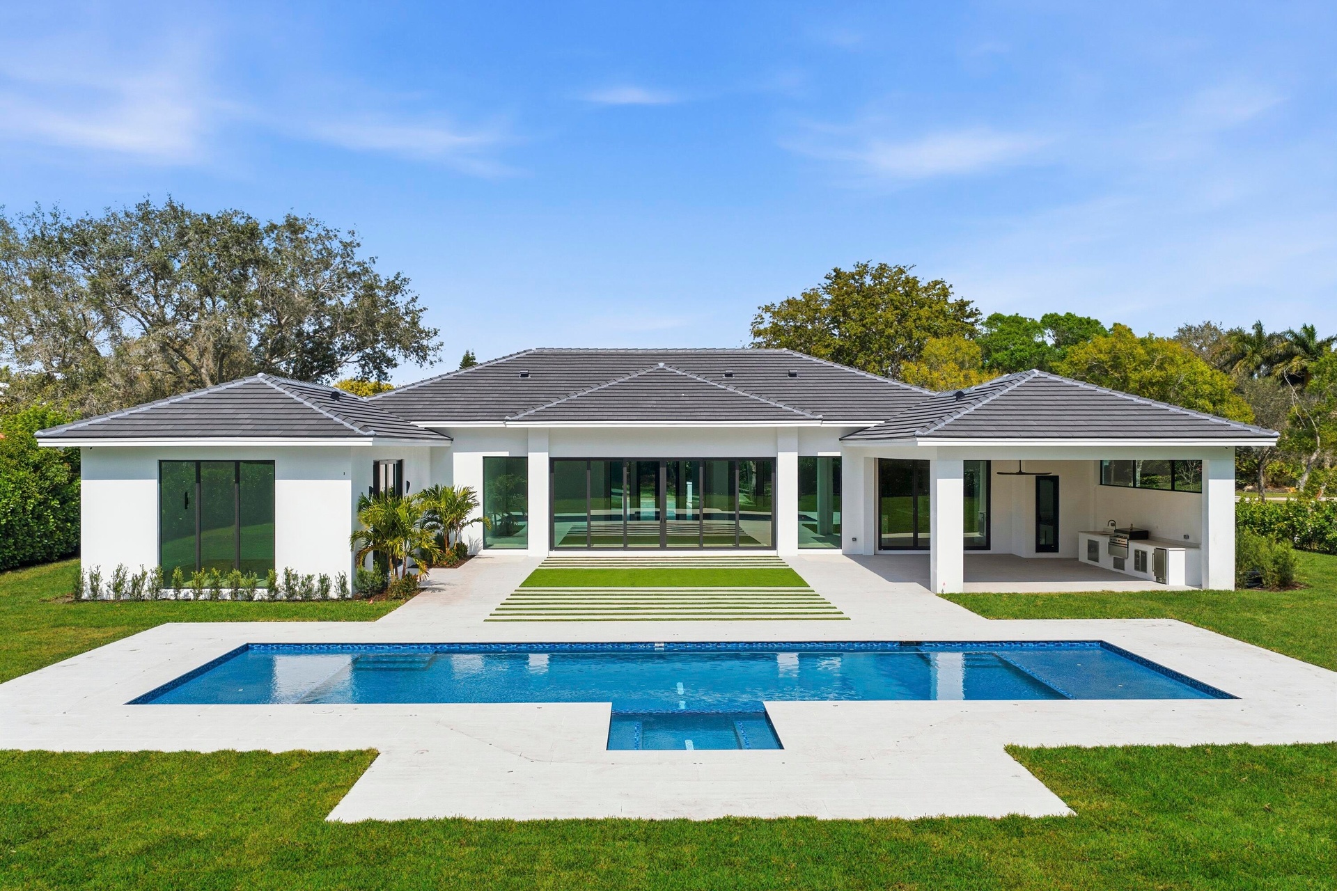 An exceptional new construction estate set on a prime lot within the prestigious, gated community of Steeplechase. This single-story residence offers 5 bedrooms, 5 full baths, two half baths. 4,993 sq ft of refined living space (6,930 total). A grand 17-foot foyer opens to a stunning great room with soaring 14-foot ceilings and walls of glass that seamlessly connect to a private courtyard oasis. Outdoor living is elevated with oversized porcelain pavers, artificial turf, and a 16 x 50 saltwater pool featuring sun shelves, deck jets, bubblers, spa, and an expansive covered patio with a 20-foot summer kitchen. The chef's kitchen showcases a 15-foot mitered quartz island, custom cabinetry, full backsplash, pantry, and a complete Sub-Zero/Wolf/Cove appliance suite. The primary retreat offers pool views, dual walk-in closets, and a spa-inspired bath. Additional ensuite bedrooms, 4-car garage with EV charger, impact glass, smart wiring, and lush landscaping complete this refined offering, minutes to golf, dining, PBI, and Palm Beach beaches.