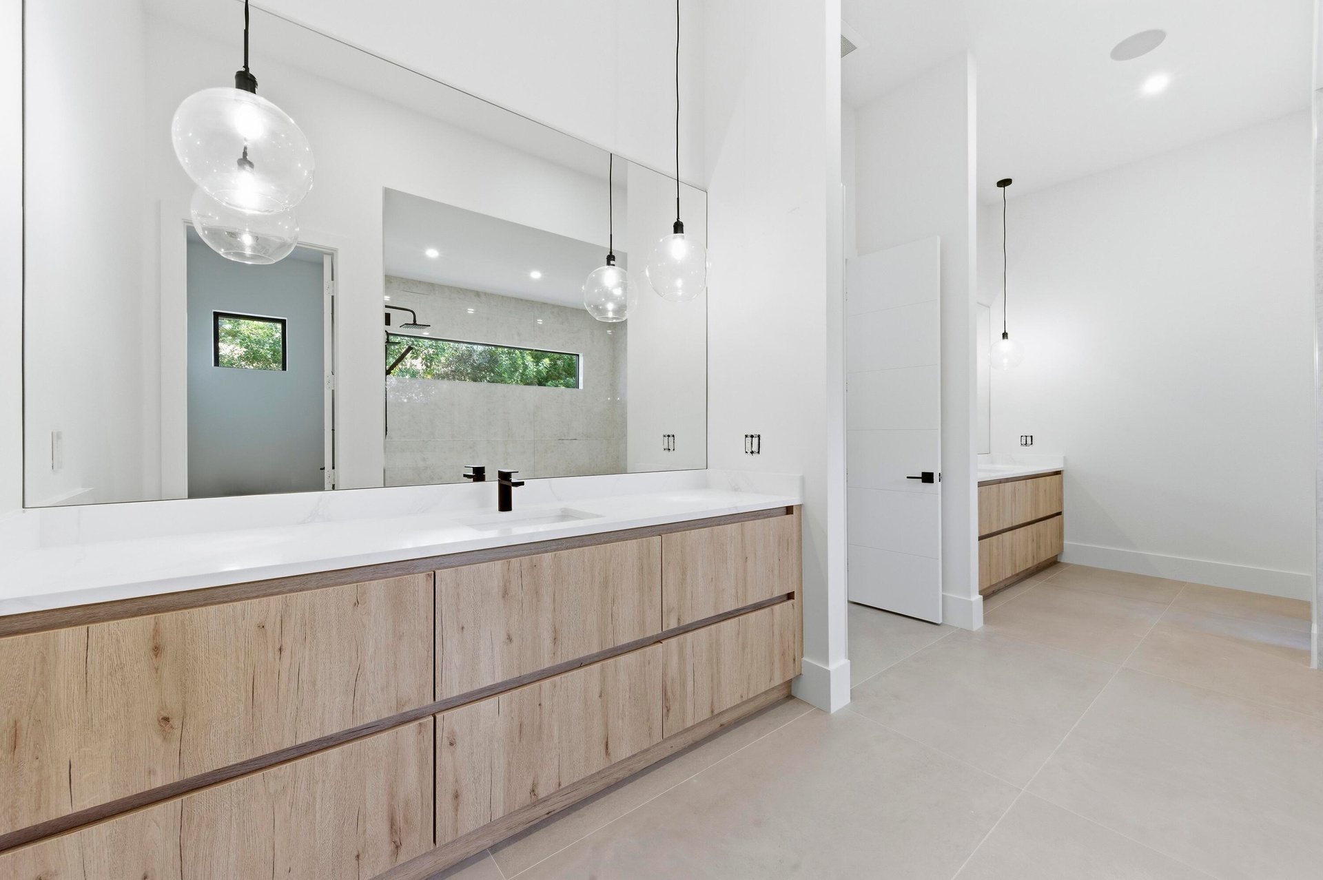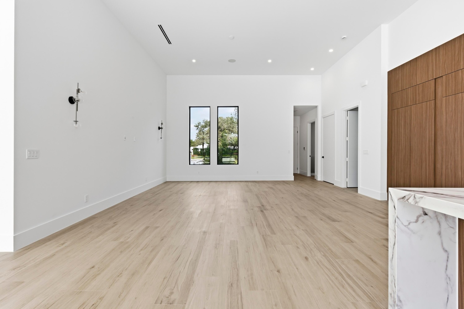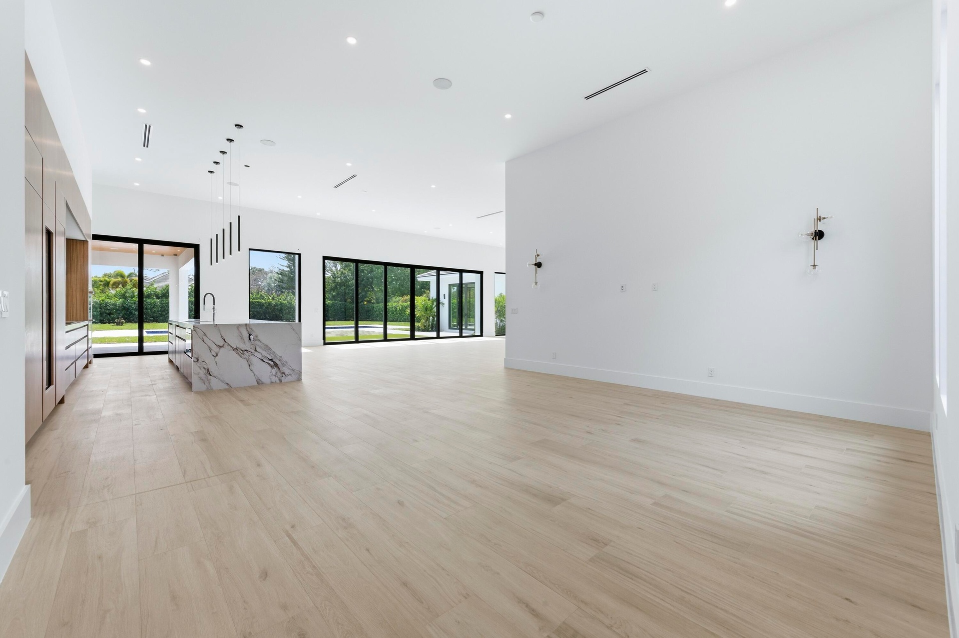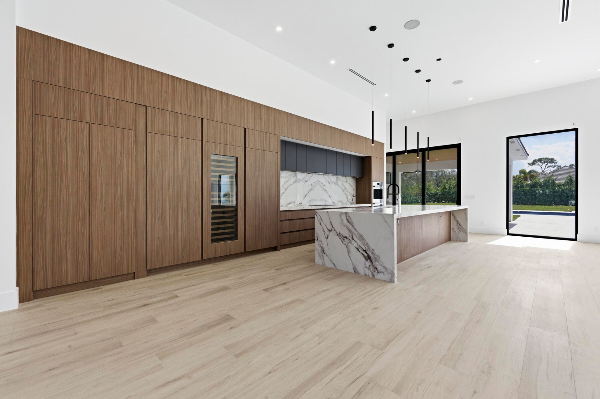 An exceptional new construction estate set on a prime lot within the prestigious, gated community of Steeplechase. This single-story residence offers 5 bedrooms, 5 full baths, two half baths. 4,993 sq ft of refined living space (6,930 total). A grand 17-foot foyer opens to a stunning great room with soaring 14-foot ceilings and walls of glass that seamlessly connect to a private courtyard oasis. Outdoor living is elevated with oversized porcelain pavers, artificial turf, and a 16 x 50 saltwater pool featuring sun shelves, deck jets, bubblers, spa, and an expansive covered patio with a 20-foot summer kitchen. The chef's kitchen showcases a 15-foot mitered quartz island, custom cabinetry, full backsplash, pantry, and a complete Sub-Zero/Wolf/Cove appliance suite. The primary retreat offers pool views, dual walk-in closets, and a spa-inspired bath. Additional ensuite bedrooms, 4-car garage with EV charger, impact glass, smart wiring, and lush landscaping complete this refined offering, minutes to golf, dining, PBI, and Palm Beach beaches.
