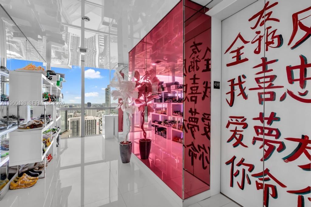 Welcome to Marquis Residence 4907, an oversized two-bedroom sky residence offering the ultimate in elevated urban living. This stunning corner unit showcases unobstructed panoramic views of Biscayne Bay, the Atlantic Ocean, and the Miami skyline, clearing nearly every surrounding building. A private elevator entry opens to a sleek European kitchen with Viking appliances, custom cabinetry, and elegant finishes. Floor-to-ceiling windows fill the home with natural light, highlighting its open and modern design.
