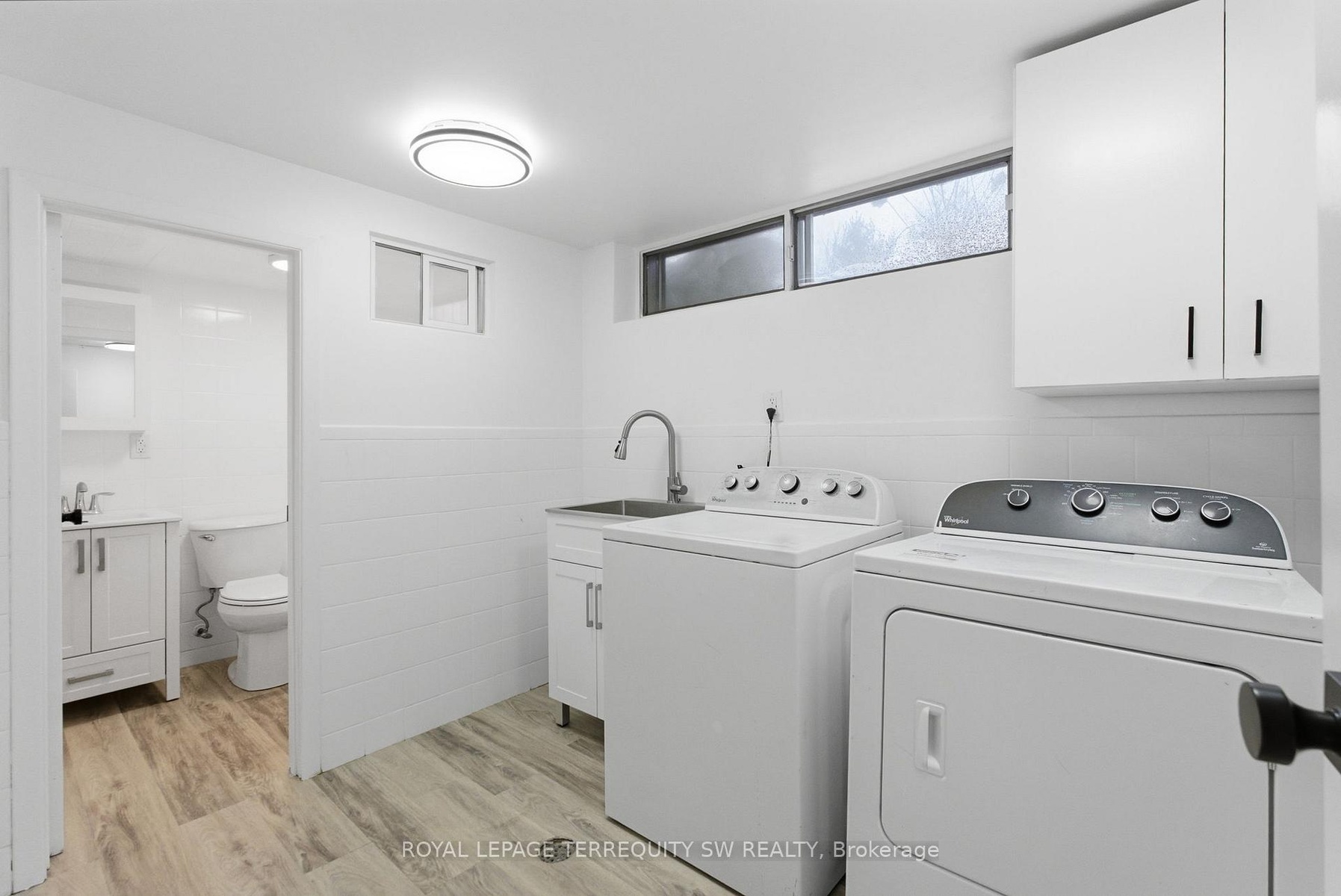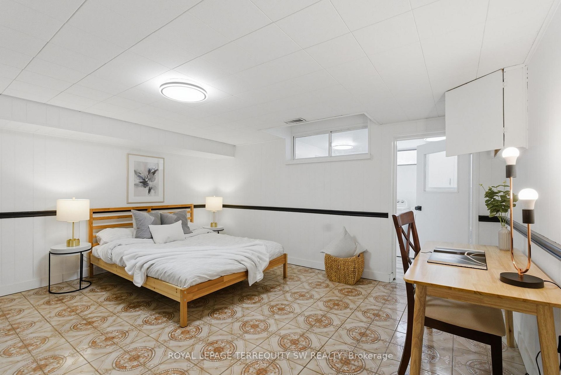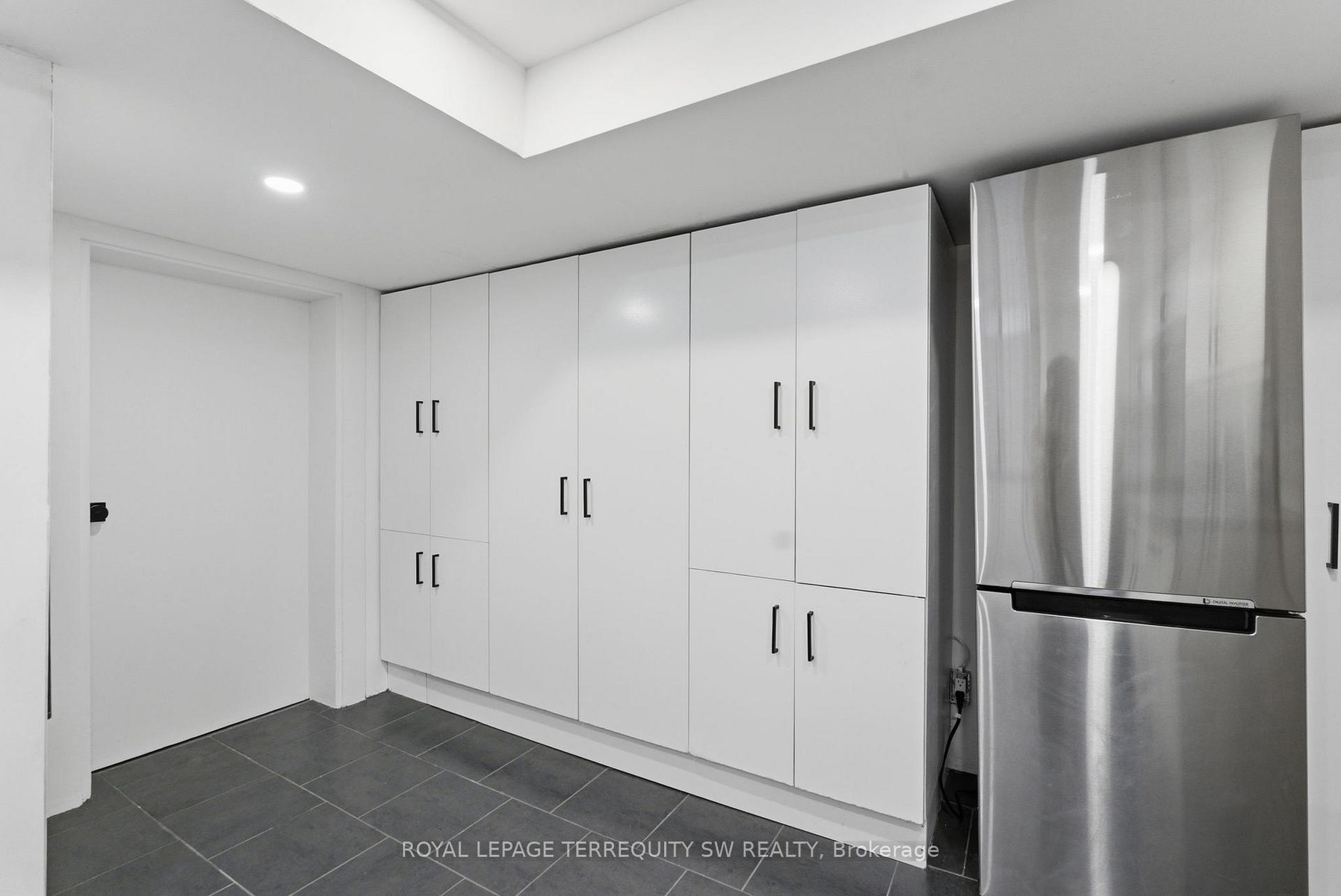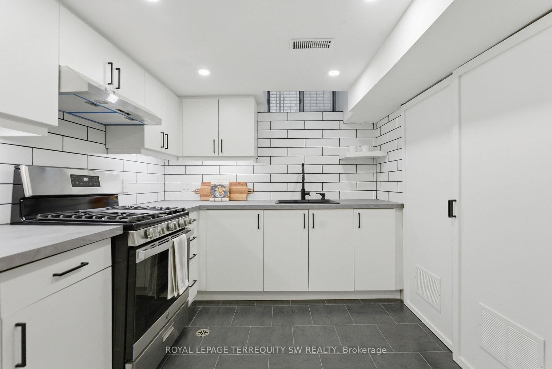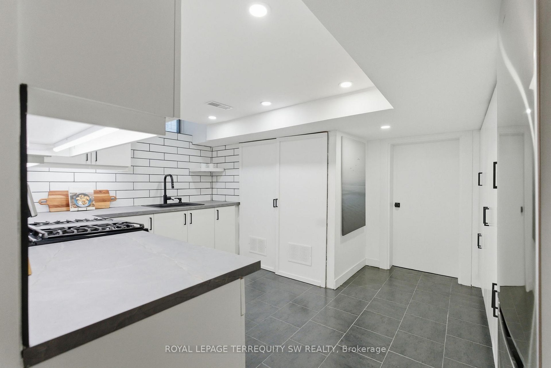 Turnkey fully furnished open concept layout combining living and dining with a wet-bar. With almost 1200sqft of living space and large windows exuding natural light throughout you won't feel like you are in a basement. Newly renovated kitchen with brand new stainless steel kitchen appliance. Two full 4-piece bathroom with exclusive use laundry. Access to a large shared covered backyard patio and exclusive single laneway parking space in the garage. With a walk score of 96 you are conveniently located in one of the hottest Toronto areas with nearby shops, restaurants, transit, parks, place of worship and so much more!! Don't miss your chance to make this your new home. Shared 1.5GB High Speed Internet Included. Tenant pays 25 percent of all utilities(gas, water and hydro)