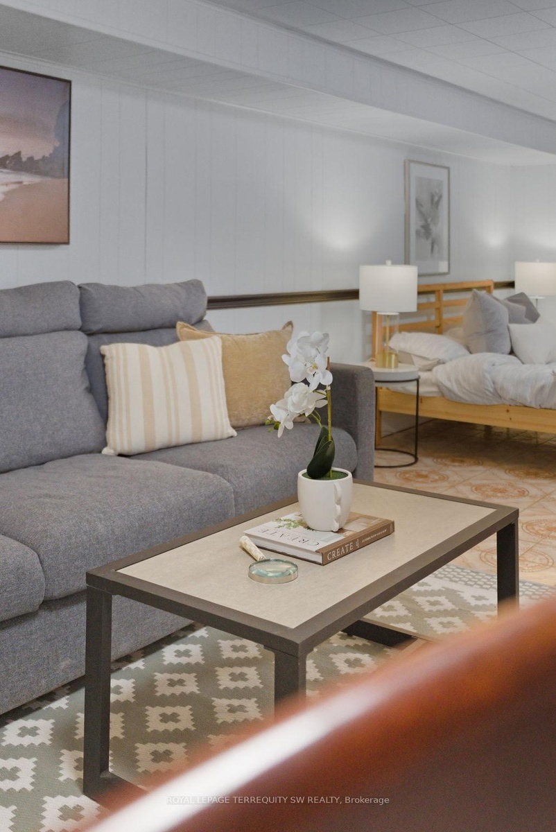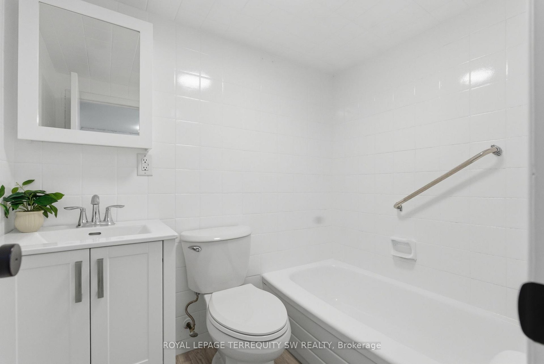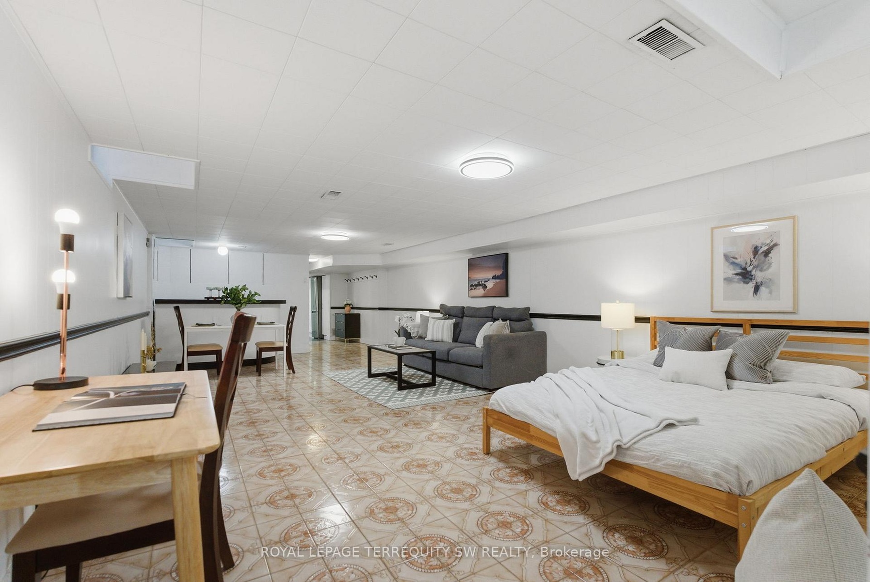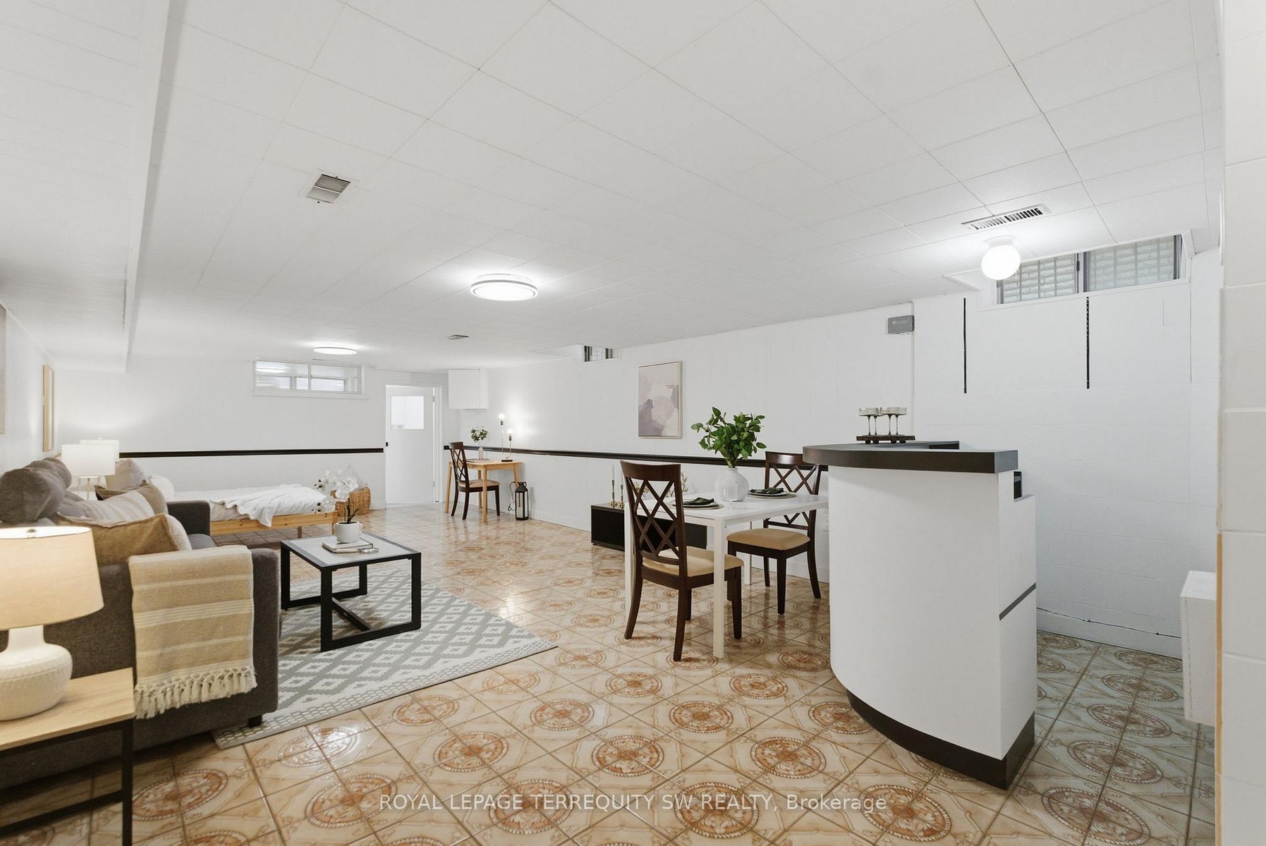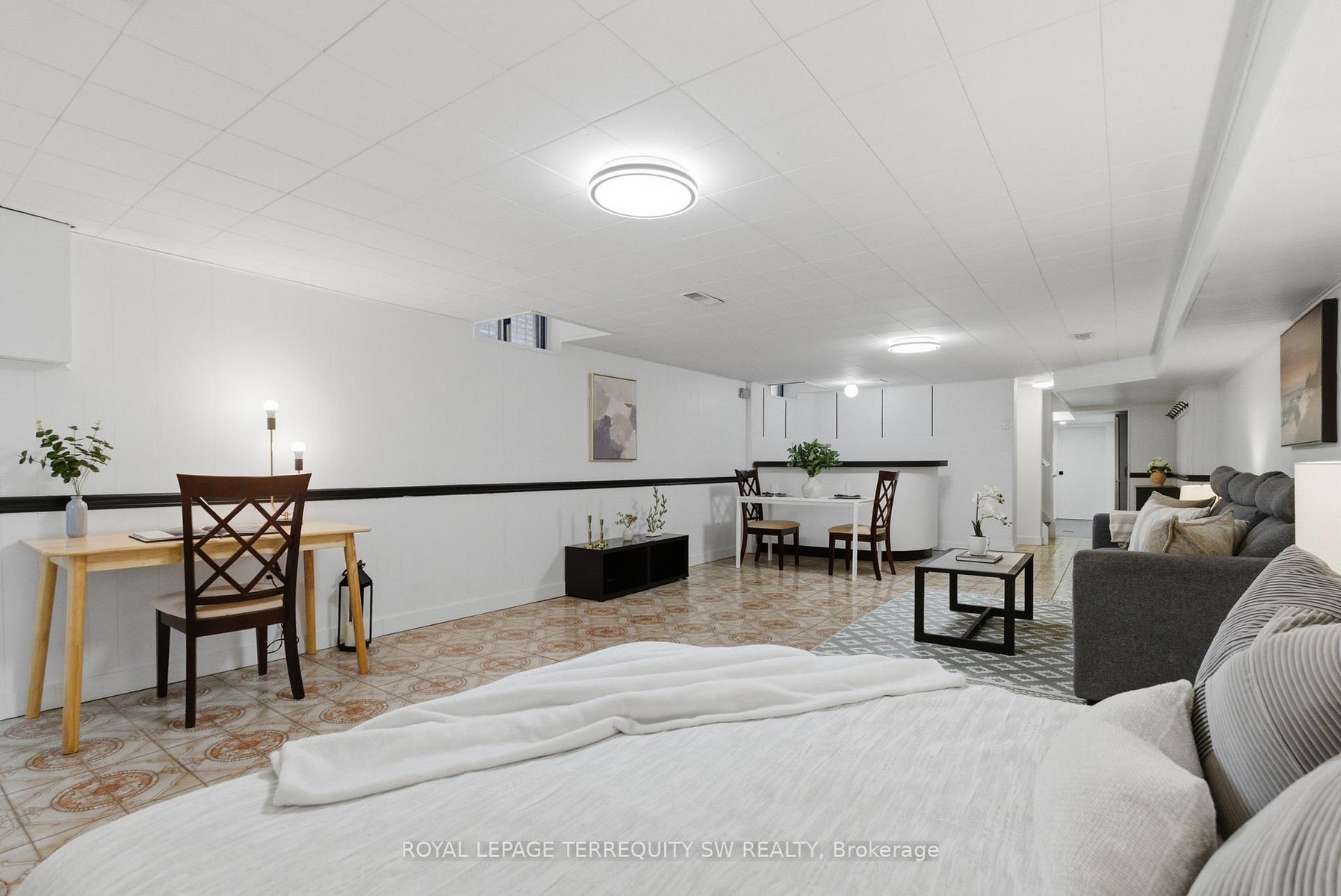 Turnkey fully furnished open concept layout combining living and dining with a wet-bar. With almost 1200sqft of living space and large windows exuding natural light throughout you won't feel like you are in a basement. Newly renovated kitchen with brand new stainless steel kitchen appliance. Two full 4-piece bathroom with exclusive use laundry. Access to a large shared covered backyard patio and exclusive single laneway parking space in the garage. With a walk score of 96 you are conveniently located in one of the hottest Toronto areas with nearby shops, restaurants, transit, parks, place of worship and so much more!! Don't miss your chance to make this your new home. Shared 1.5GB High Speed Internet Included. Tenant pays 25 percent of all utilities(gas, water and hydro)