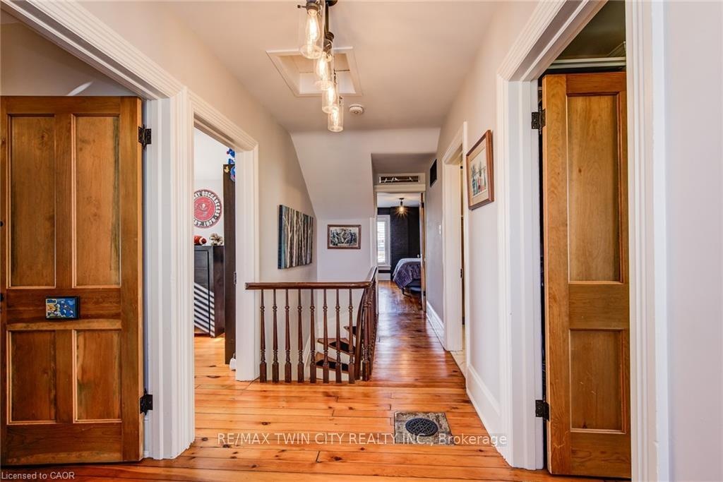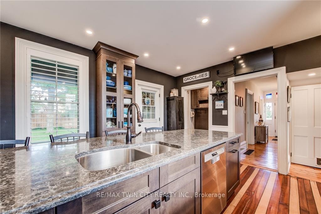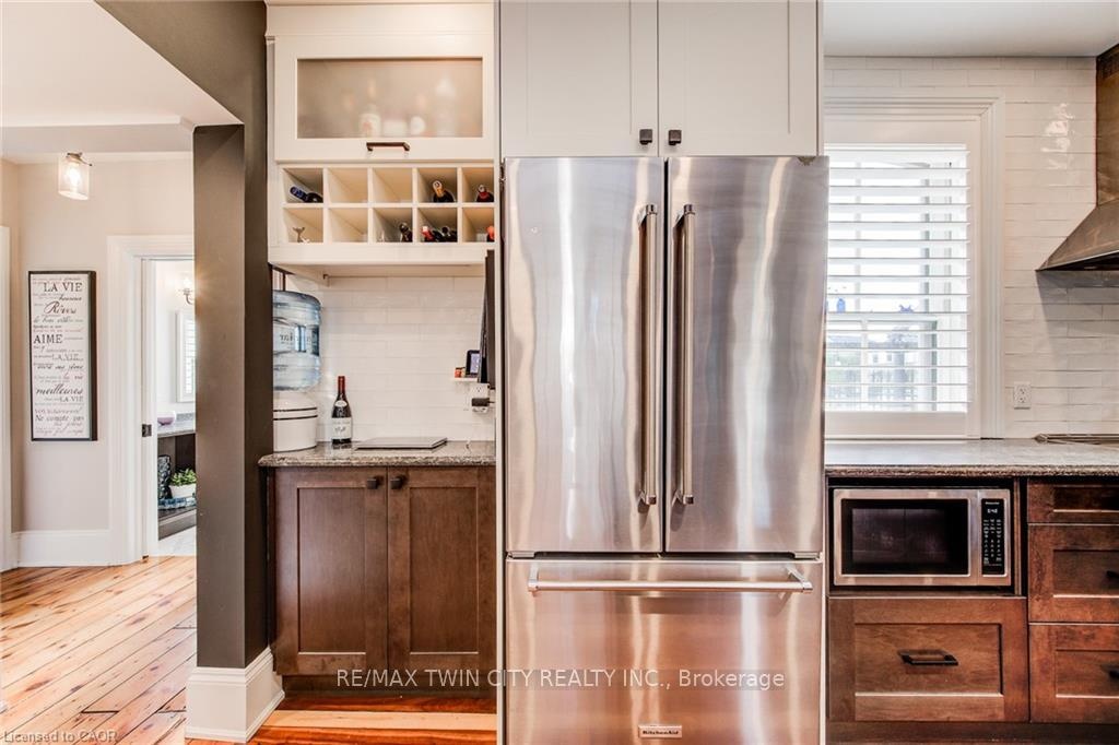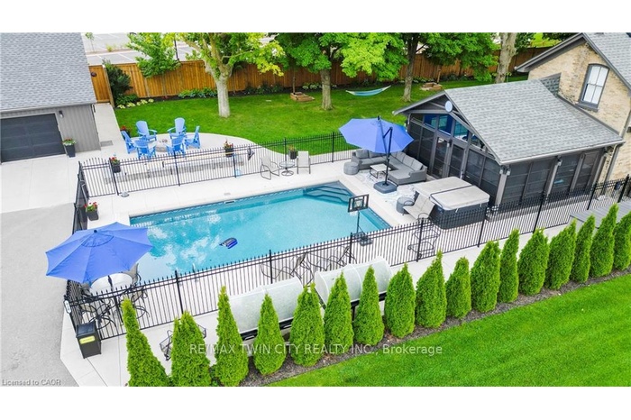 OPEN HOUSE Sunday 2-4pm Visitors receive 2 Kitchener Panthers Baseball tickets for stopping by! This home is for a buyer who will accept nothing short of spectacular - a rare offering delivering unmatched quality, privacy, and lifestyle. Experience the perfect balance of style, comfort, and privacy in this beautifully updated residence, quite likely the highest-quality restoration in the region. Offering the classic charm buyers love, this exceptional home is set on a private 2/3-acre lot tucked into Kitchener's desirable Rosenberg subdivision, directly across from premier sports fields at RBJ Schlegel Park. Distinctive architectural features include a curved staircase, stained-glass accents, and oversized baseboards, paired with extensive high-end upgrades throughout. The heart of the home is a chef-inspired kitchen with quartz countertops, premium appliances, built-in coffee bar, and walk-in pantry/mudroom. A spacious 3-season sunroom offers ideal space for entertaining or quiet relaxation. Upstairs, a spa-like bathroom showcases custom tilework and a quartz vanity, complemented by second-floor laundry. Major upgrades include 200-amp electrical service, new HVAC, plumbing, roof, eaves, and repointed masonry - delivering true peace of mind. A rare bonus is the detached, self-contained coach house featuring its own HVAC, 100-amp service, full bathroom, bedroom, living area, and main-floor space ready for a kitchen. A finished basement provides flexible space for a gym, studio, or creative retreat. The resort-style backyard is an entertainer's dream, complete with a 15' x 32' smart-controlled pool by Tim Goodwin, professional-grade putting green, gas firepit, RV parking, invisible pet fencing, and new irrigation system, framed by mature maple trees. Perfect for multigenerational living, a home-based business, or potential rental income, subject to city approval.