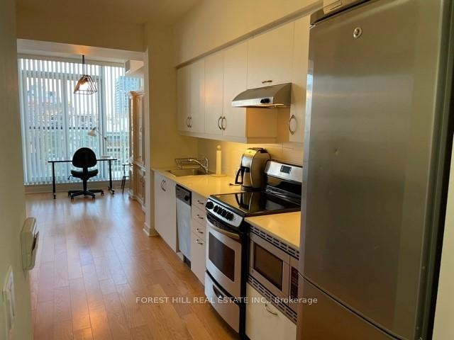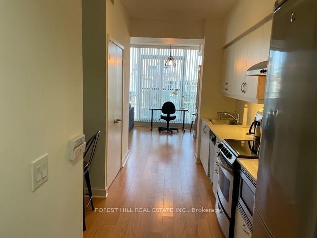 Welcome to modern downtown living. This beautifully furnished one-bedroom condo offers a bright, open-concept layout with floor-to-ceiling windows, stylish finishes, and thoughtful design throughout. Perfect for professionals or executives seeking comfort and convenience. The contemporary kitchen features integrated appliances, ample storage, and sleek cabinetry, seamlessly flowing into the living and dining space-ideal for relaxing or entertaining. The spacious bedroom offers a comfortable retreat with a generous walk-in closet. Enjoy a spa-inspired bathroom and in-suite laundry for added convenience. One parking space included. Residents enjoy access to excellent building amenities, including 24-hour concierge, fitness centre, party room, and additional lifestyle conveniences. Prime downtown location steps to TTC, restaurants, shopping, entertainment, and major employment hubs. Move-in ready.