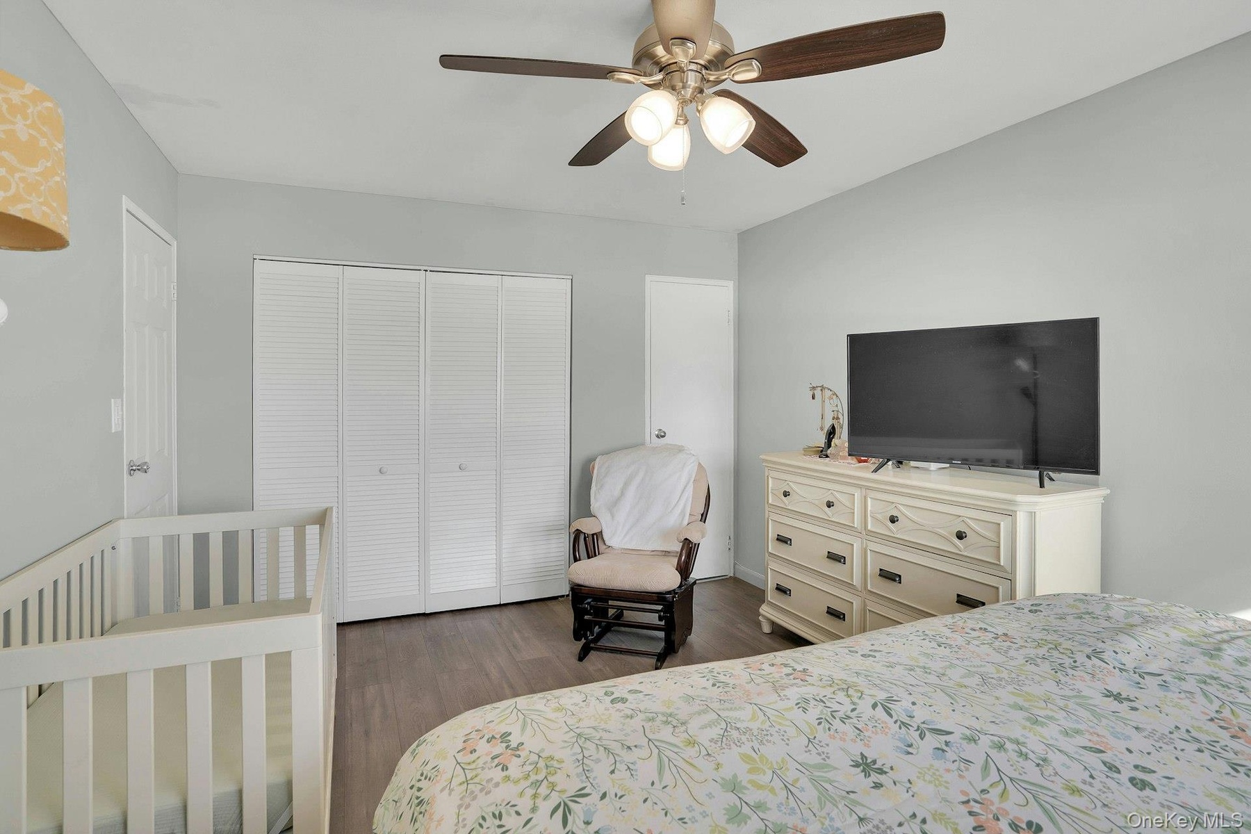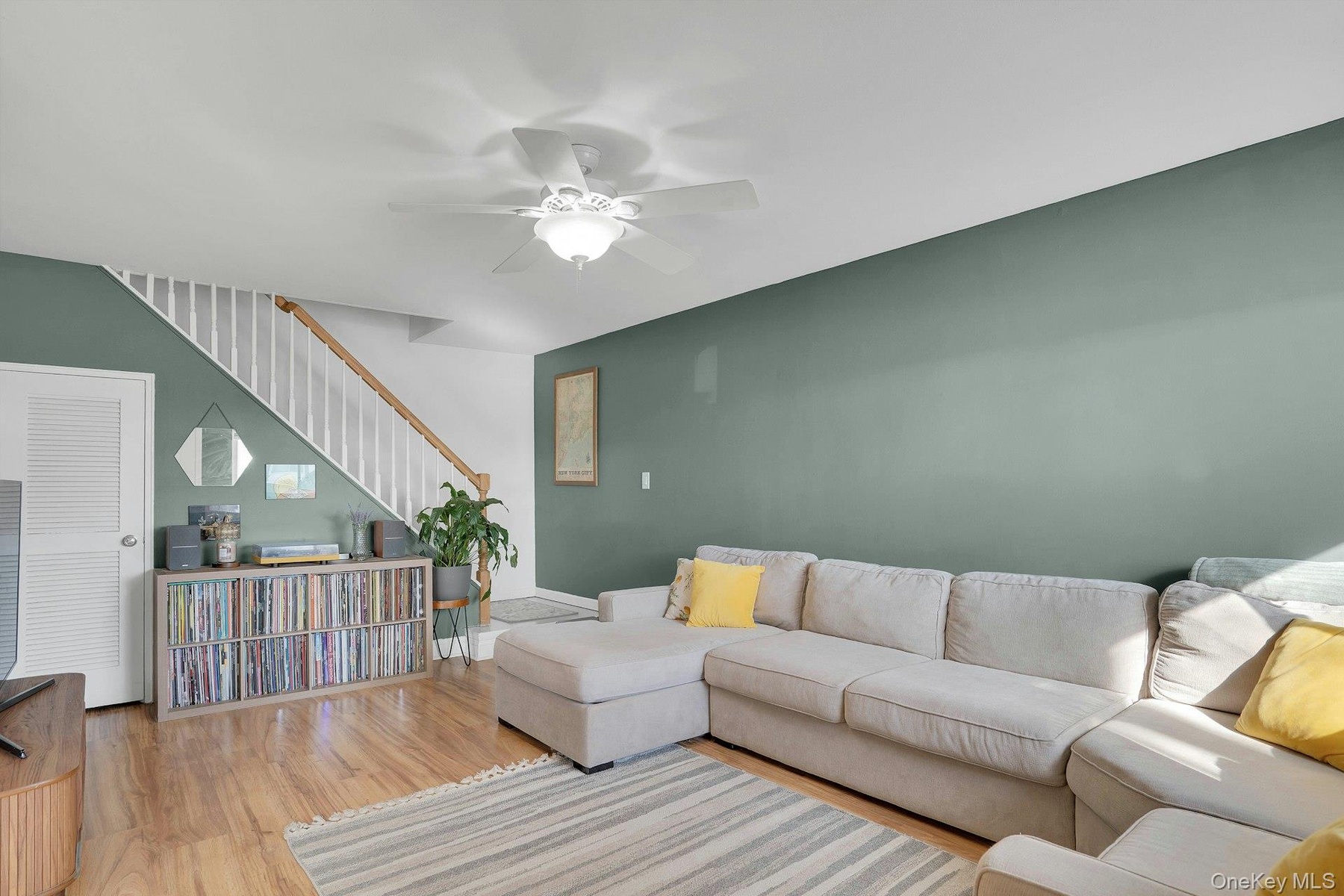 The primary bedroom is generously sized and includes two closets plus a walk-in closet, offering excellent storage. The second bedroom is also well-proportioned. Additional interior features include storage beneath the staircase for added convenience.