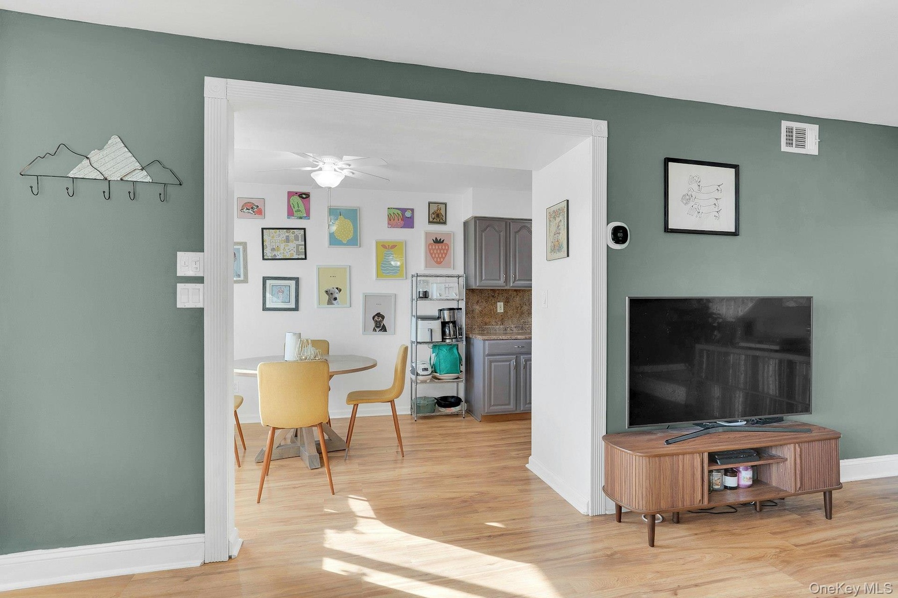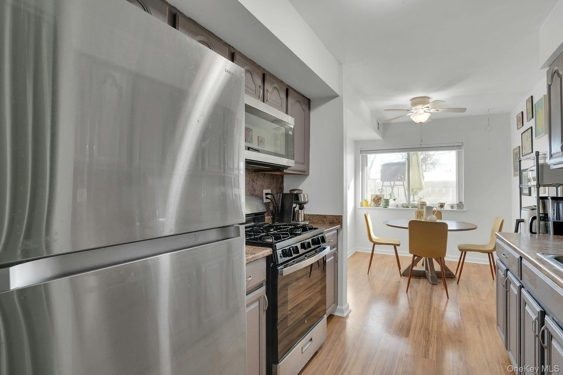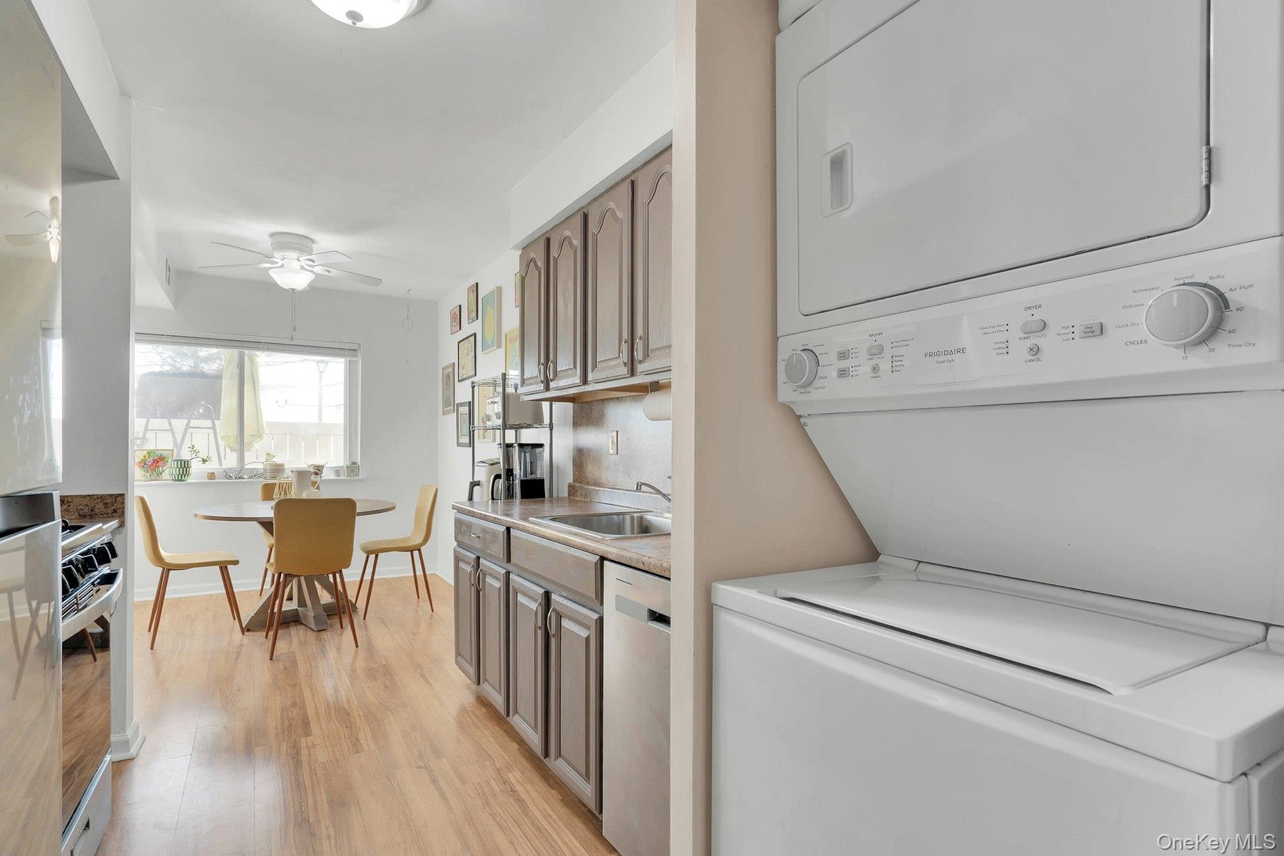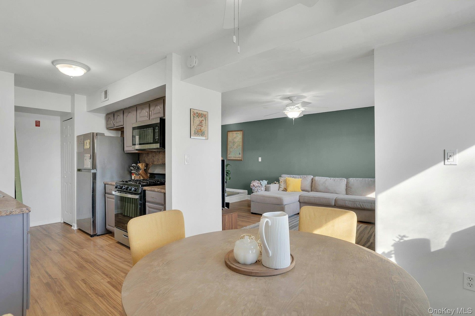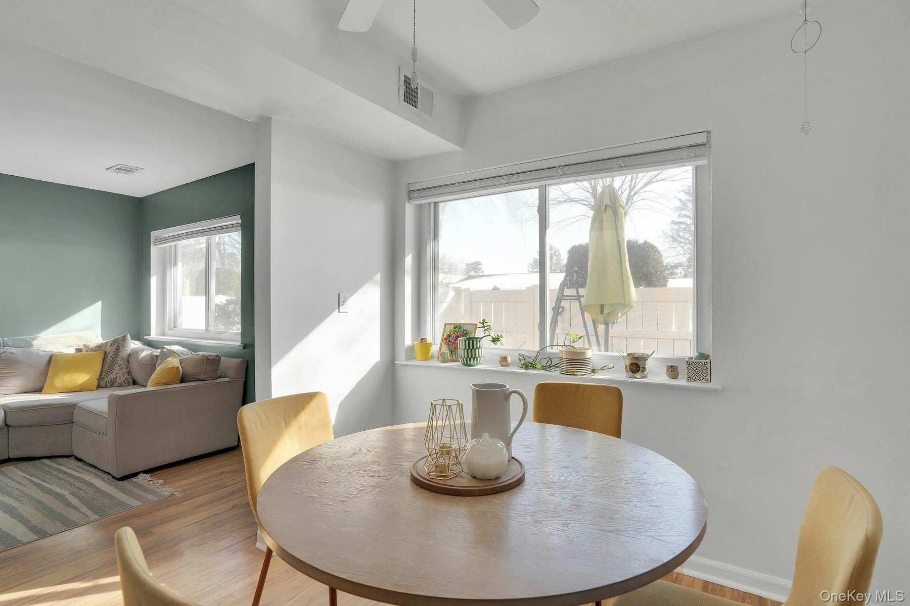 This townhouse-style residence offers a bright and functional layout with hardwood flooring and an easy flow between the living room, dining area, and kitchen—ideal for everyday living and entertaining.