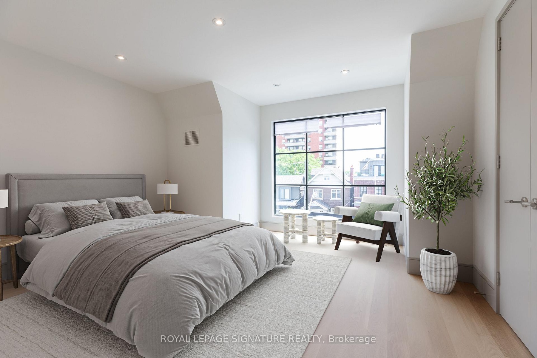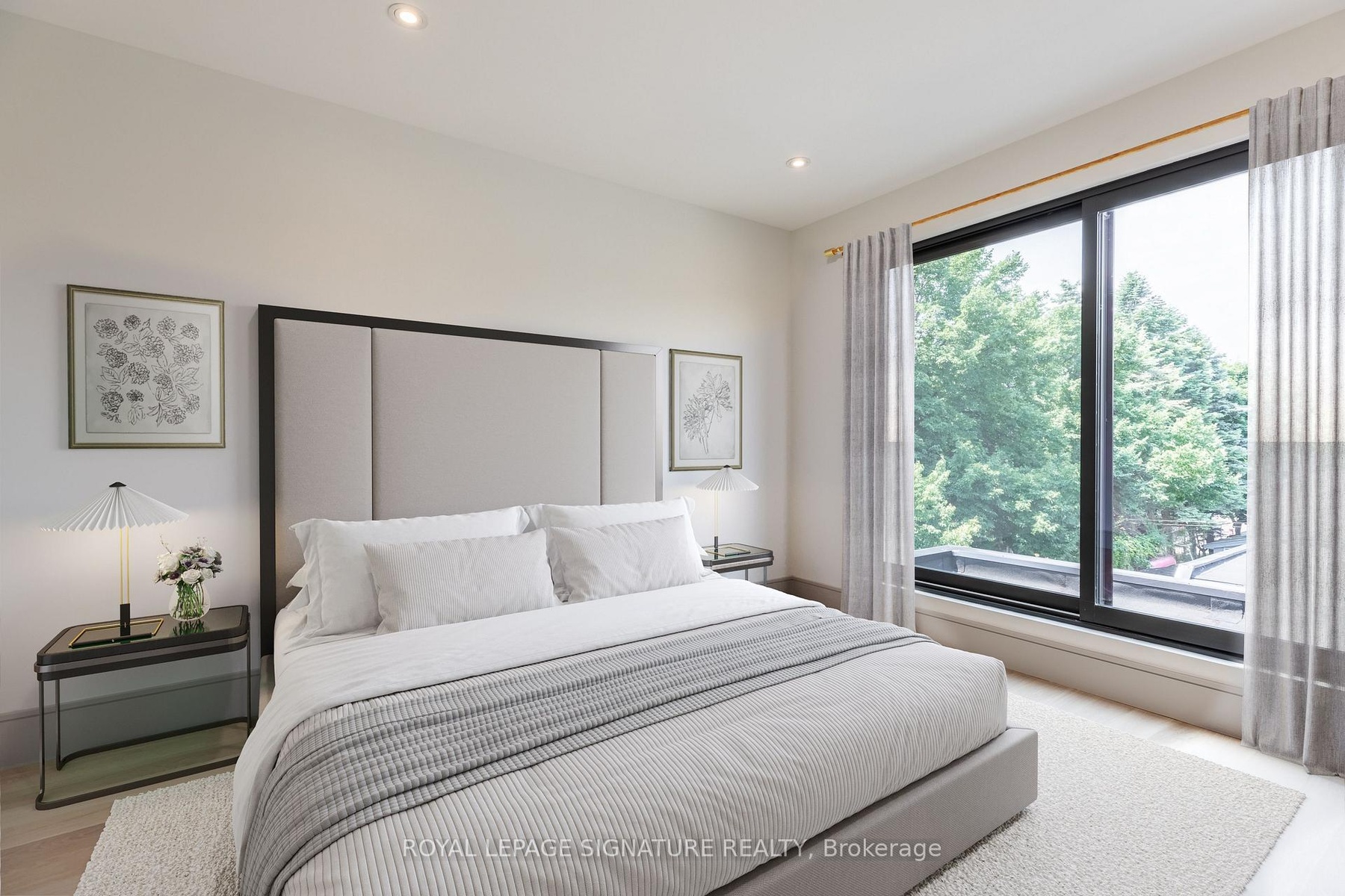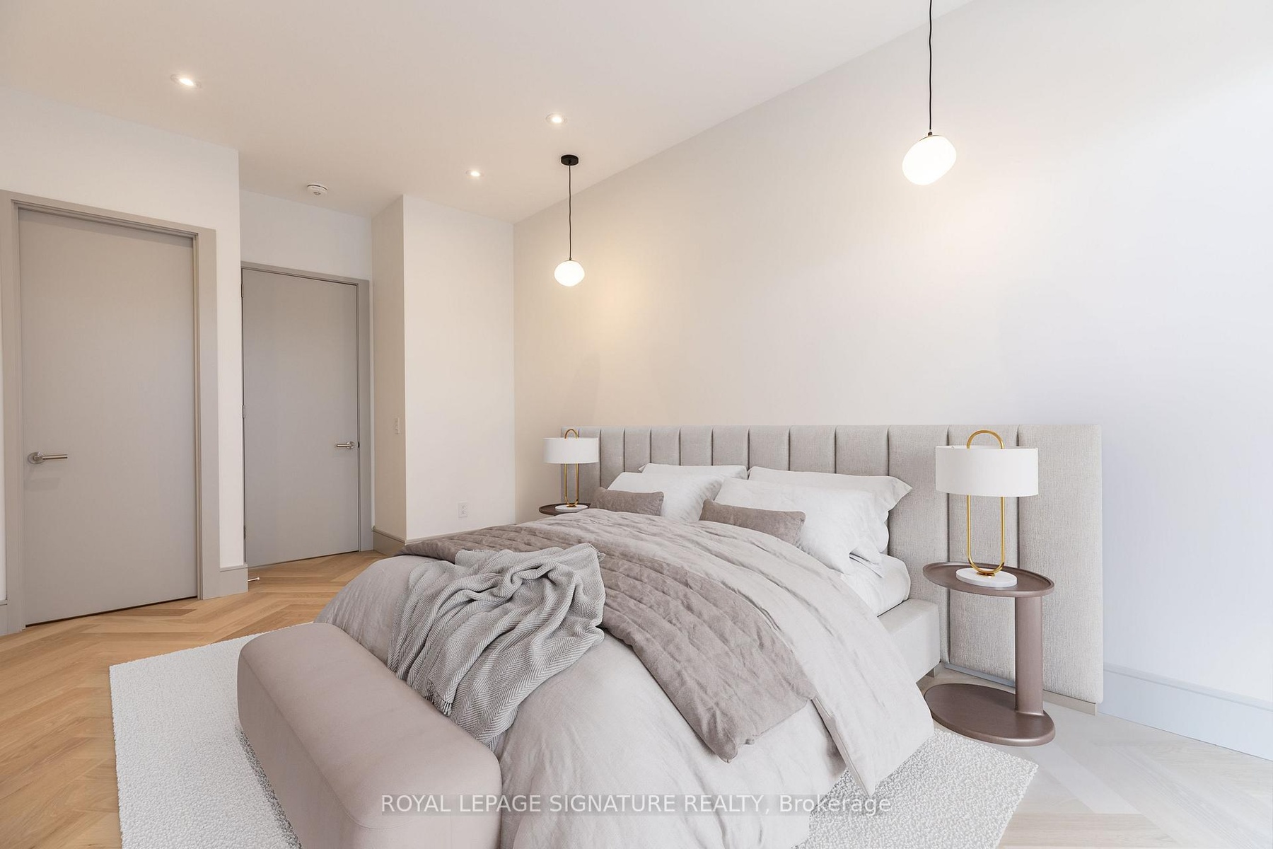 Welcome to this brand new, three-story executive furnished rental that combines modern luxury with timeless elegance. Featuring 5 bedrooms plus a den and 4.5 bathrooms, this home offers an abundance of space and style for the discerning renter. Step inside to find soaring ceilings and exquisite herringbone hardwood floors throughout. The main living area is anchored by a cozy gas fireplace, perfect for relaxing or entertaining. The modern kitchen is a chefs dream, complete with a breakfast bar, stone countertops, and a pantry with a wet bar. Each bathroom is designed with spa-like finishes, ensuring a serene retreat in your own home. The lower level includes a spacious storage room, providing ample space for all your needs. The property also boasts a two-car parking garage, a rare find in this sought-after neighborhood. Nestled in the heart of Carlaw/Danforth, you'll be just steps away from the subway, parks, and nature trails, offering the perfect blend of urban convenience and natural beauty. Some photos are virtually staged.