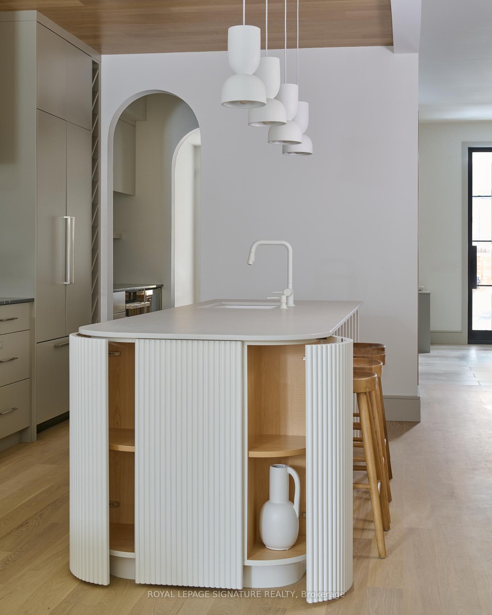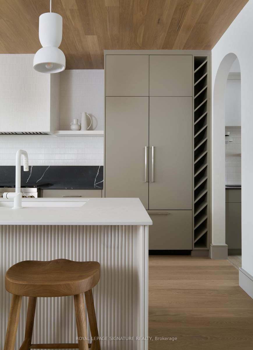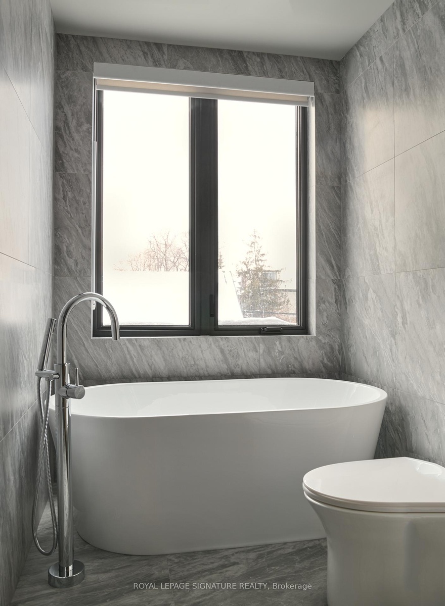 Welcome to this brand new, three-story executive furnished rental that combines modern luxury with timeless elegance. Featuring 5 bedrooms plus a den and 4.5 bathrooms, this home offers an abundance of space and style for the discerning renter. Step inside to find soaring ceilings and exquisite herringbone hardwood floors throughout. The main living area is anchored by a cozy gas fireplace, perfect for relaxing or entertaining. The modern kitchen is a chefs dream, complete with a breakfast bar, stone countertops, and a pantry with a wet bar. Each bathroom is designed with spa-like finishes, ensuring a serene retreat in your own home. The lower level includes a spacious storage room, providing ample space for all your needs. The property also boasts a two-car parking garage, a rare find in this sought-after neighborhood. Nestled in the heart of Carlaw/Danforth, you'll be just steps away from the subway, parks, and nature trails, offering the perfect blend of urban convenience and natural beauty. Some photos are virtually staged.