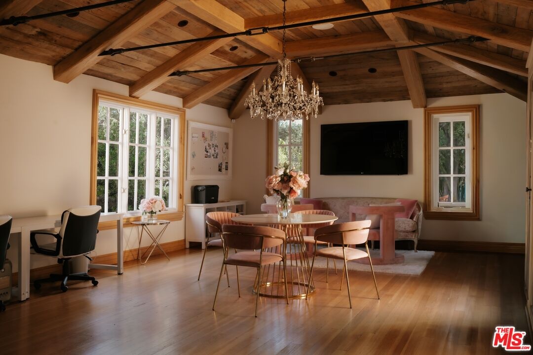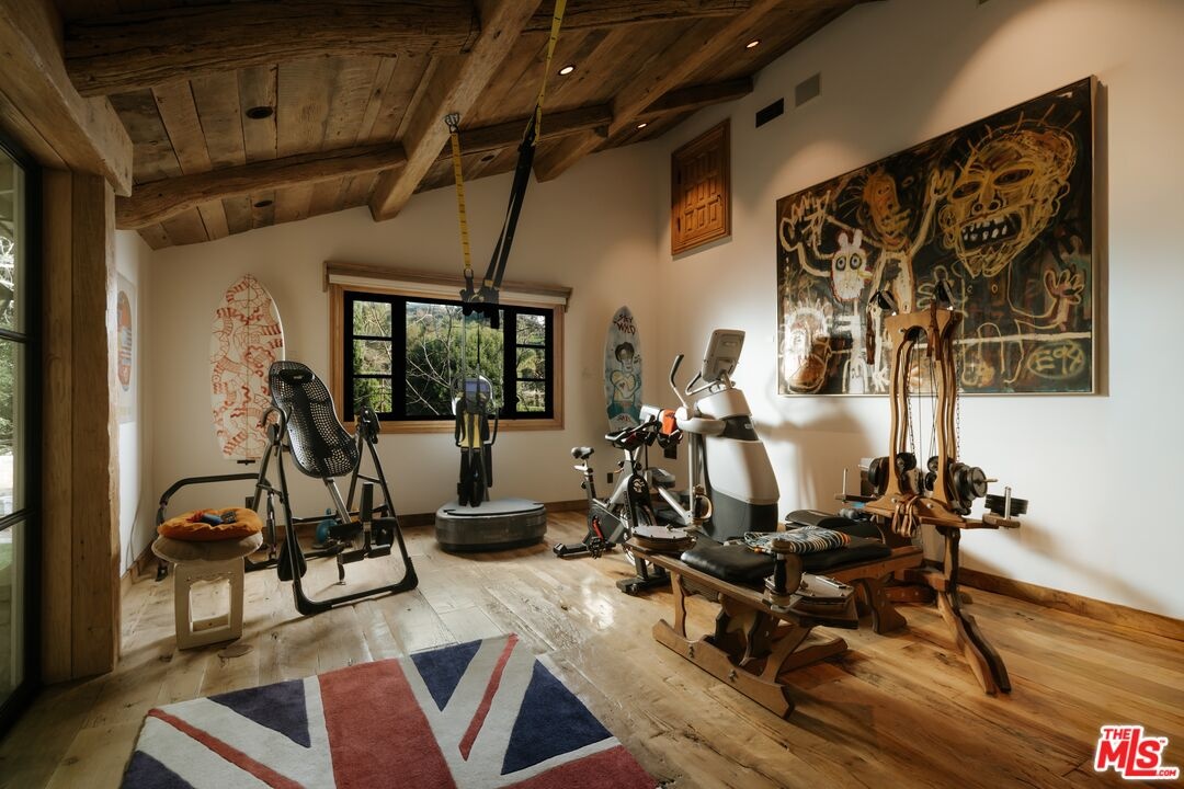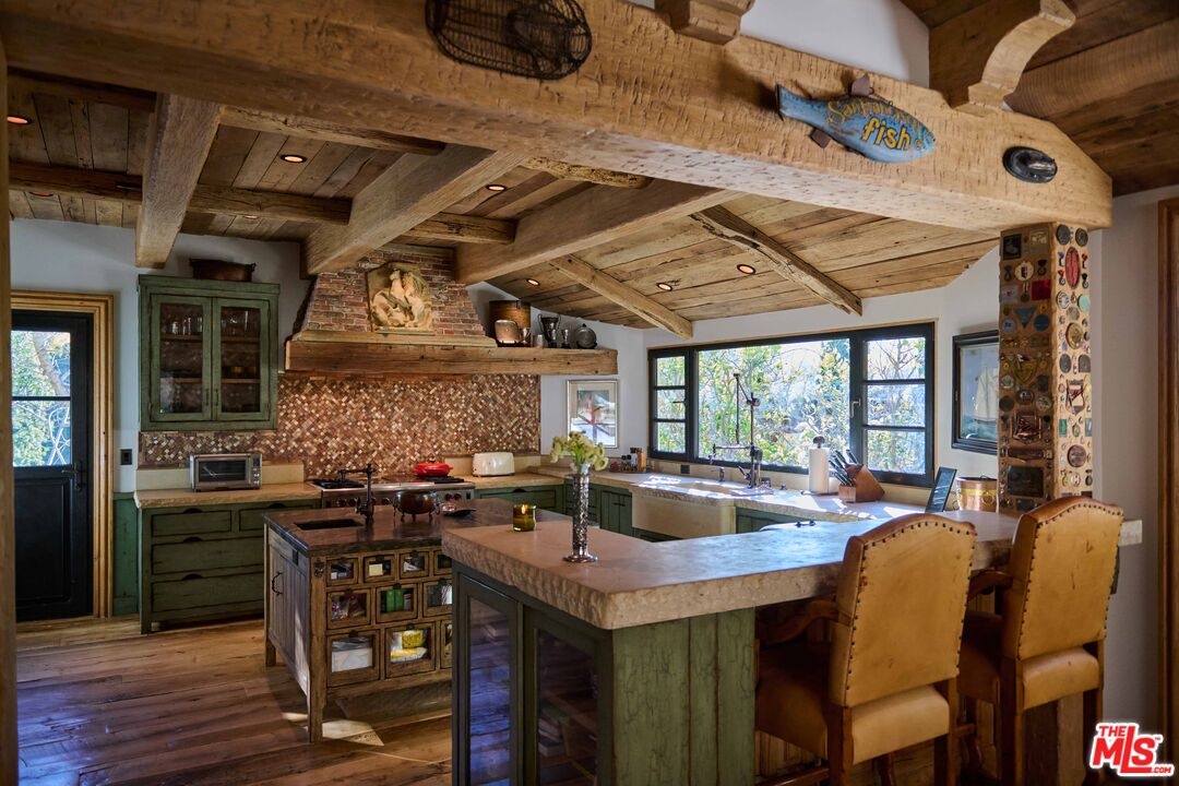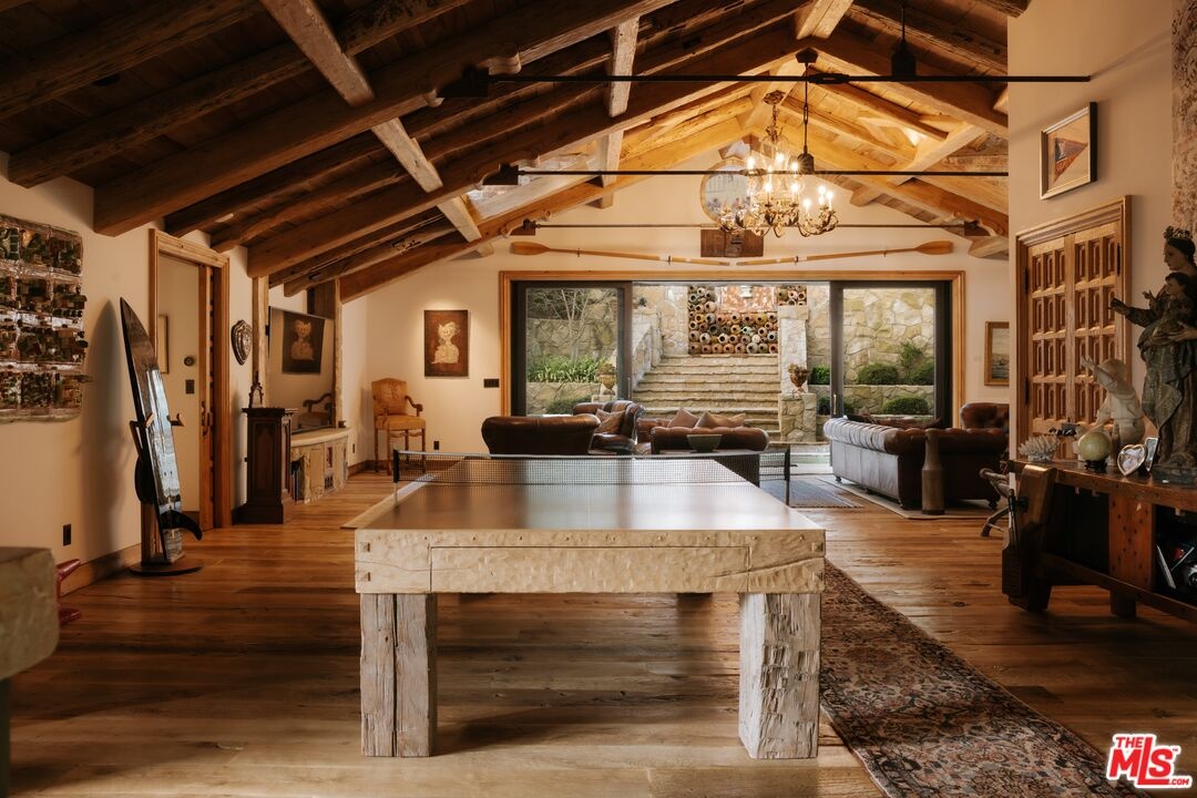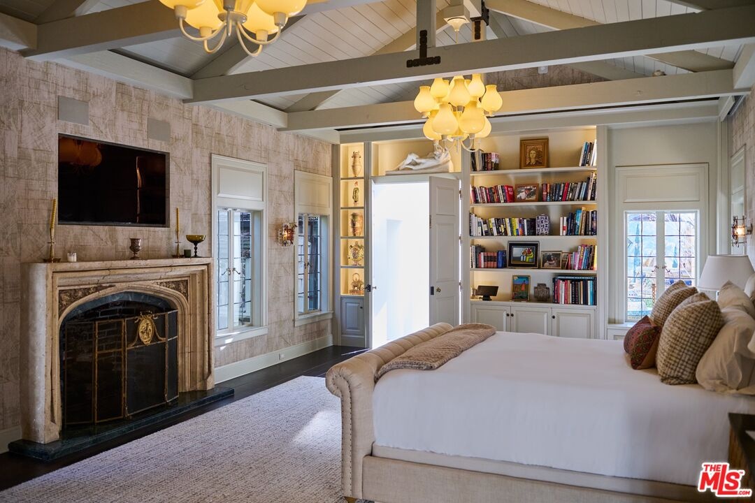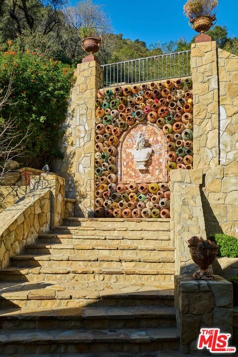 Once the storied Beverly Hills estate of Hollywood legend James Cagney, this rare and formerly celebrity-owned gated compound presents a once-in-a-generation opportunity to acquire a historic luxury estate in Beverly Hills 90210. Tucked privately beneath Franklin Canyon Nature Reserve, this expansive multi-residence Beverly Hills compound spans more than five acres of secured gated grounds, offering an unheard-of combination of acreage, provenance, and seclusion. Extensively renovated, updated and restored over many years, the private gated estate unfolds as a village-like enclave with multiple residences connected by hand-laid stone pathways winding through tiered citrus gardens, sculptural courtyards, candle-carved stone walls, and museum-quality European statuary. Mature landscaping and curated outdoor rooms create a timeless environment ideal for both intimate living and large-scale entertaining. The "Main Villa" is a romantic architectural centerpiece featuring reclaimed European terracotta roof tiles, exposed trussed-beam cathedral ceilings, leaded glass windows, and multiple restored original fireplaces. Designed for seamless entertaining, the home flows effortlessly from wine cellar and butler's pantry to formal dining and elegant yet warm living rooms, evoking timeless character. This main villa residence offers two primary bedroom suites with couture-scale closets and both suites include grand ensuite baths, soaking tubs, double vanities, step in showers for two, while an additional guest bedroom suite features luxurious cedar closet dressing room and en suite bath. Additional structural assets across the estate compound include a secluded guest residence known as "The Boathouse," with wood floors and trussed beams of antique 19th Century reclaimed French Oak complete with its own private gated drive and porte-cochre, ideal as an event venue, creative retreat, or production studio. "The Carriage House-Artist's Studio," is a multipurpose creative studio with full kitchen, en suite bath and auto garages. Plus an additional detached " Guest Cottage", which was Cagney's original art studio where he complete many collection paintings but now renovated to include a full kitchen and en suite bath. This epic compound provides multiple self-contained living environments, making this an exceptional multi-generational Beverly Hills estate uniquely versatile. Other features and amenities include separate regulation tennis and pickleball courts with grandfathered night lighting, a tennis spectator pavilion with wet bar, a glass-tile swimming pool and spa with poolside cabana and outdoor dining bistro. The Pavillion and Pool Cabana each include a fully equipped outdoor chef's kitchen. Expansive flat lawns and play fields offer rare recreational space within the hills above Sunset Boulevard. A true trophy property, the former James Cagney Estate stands as a legacy Beverly Hills estate where architecture, landscape, and artistry converge, perfectly suited for multigenerational living, artists-in-residence, or those seeking an irreplaceable Hollywood history estate in one of Los Angeles' most exclusive enclaves.