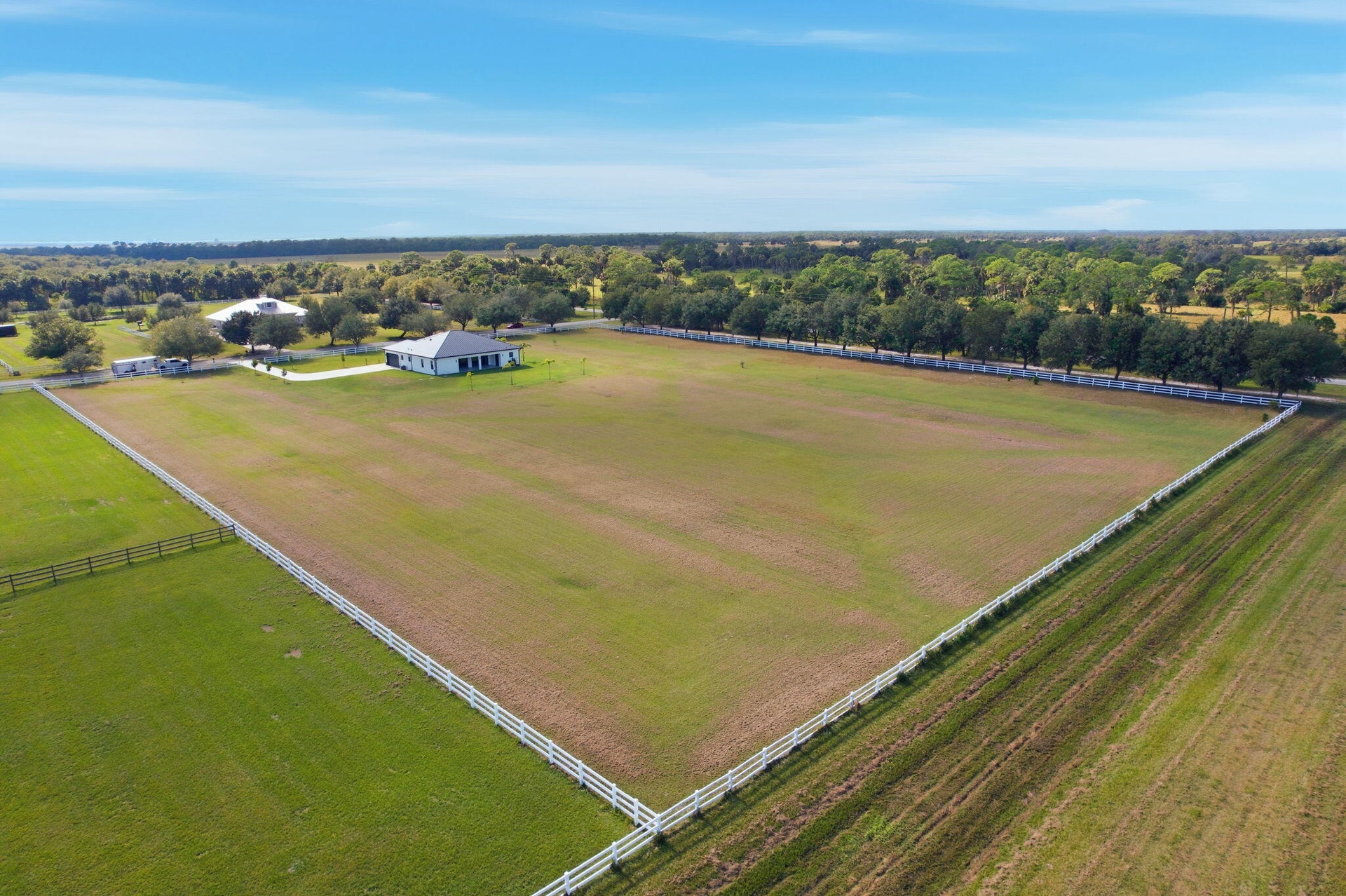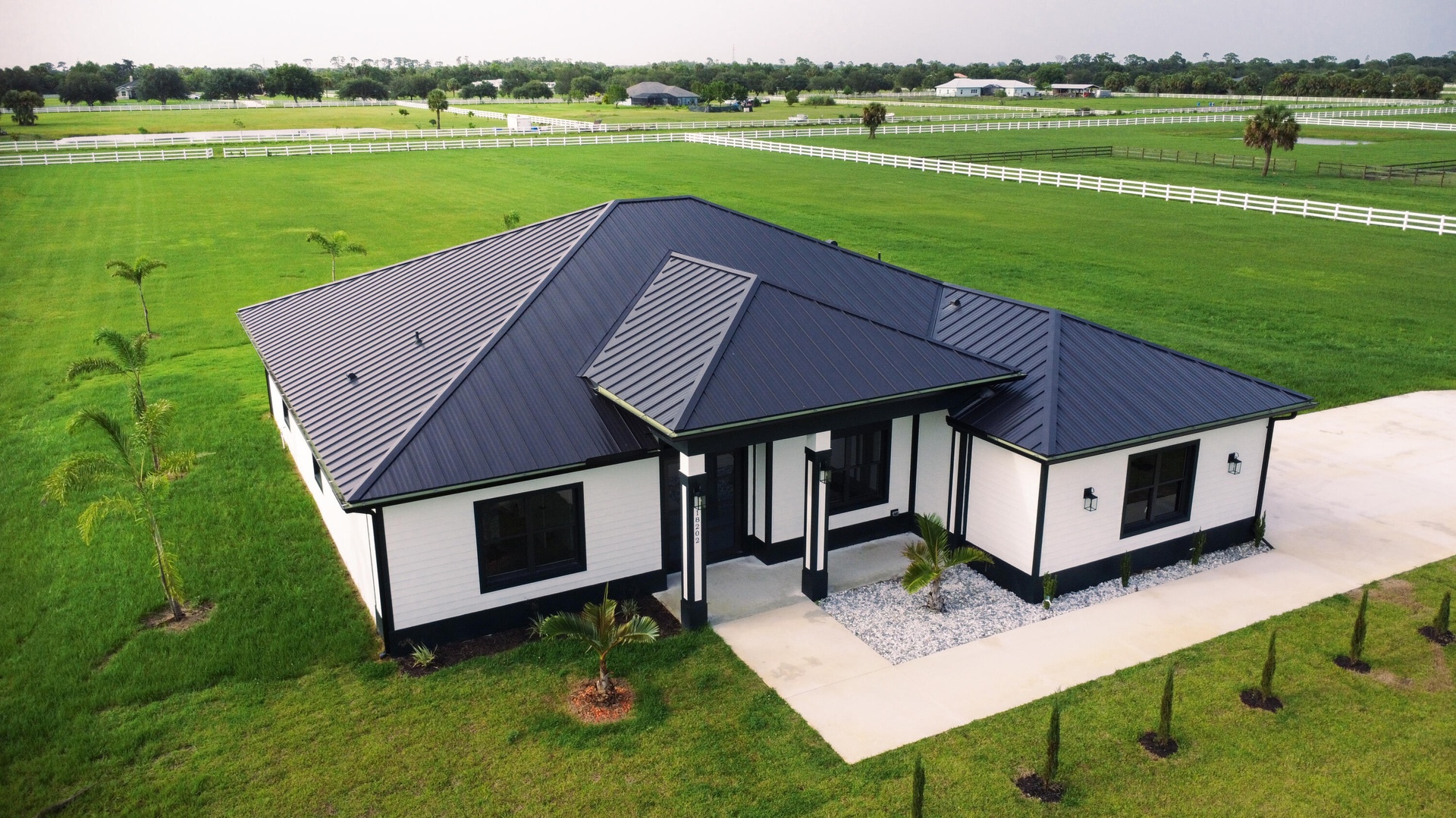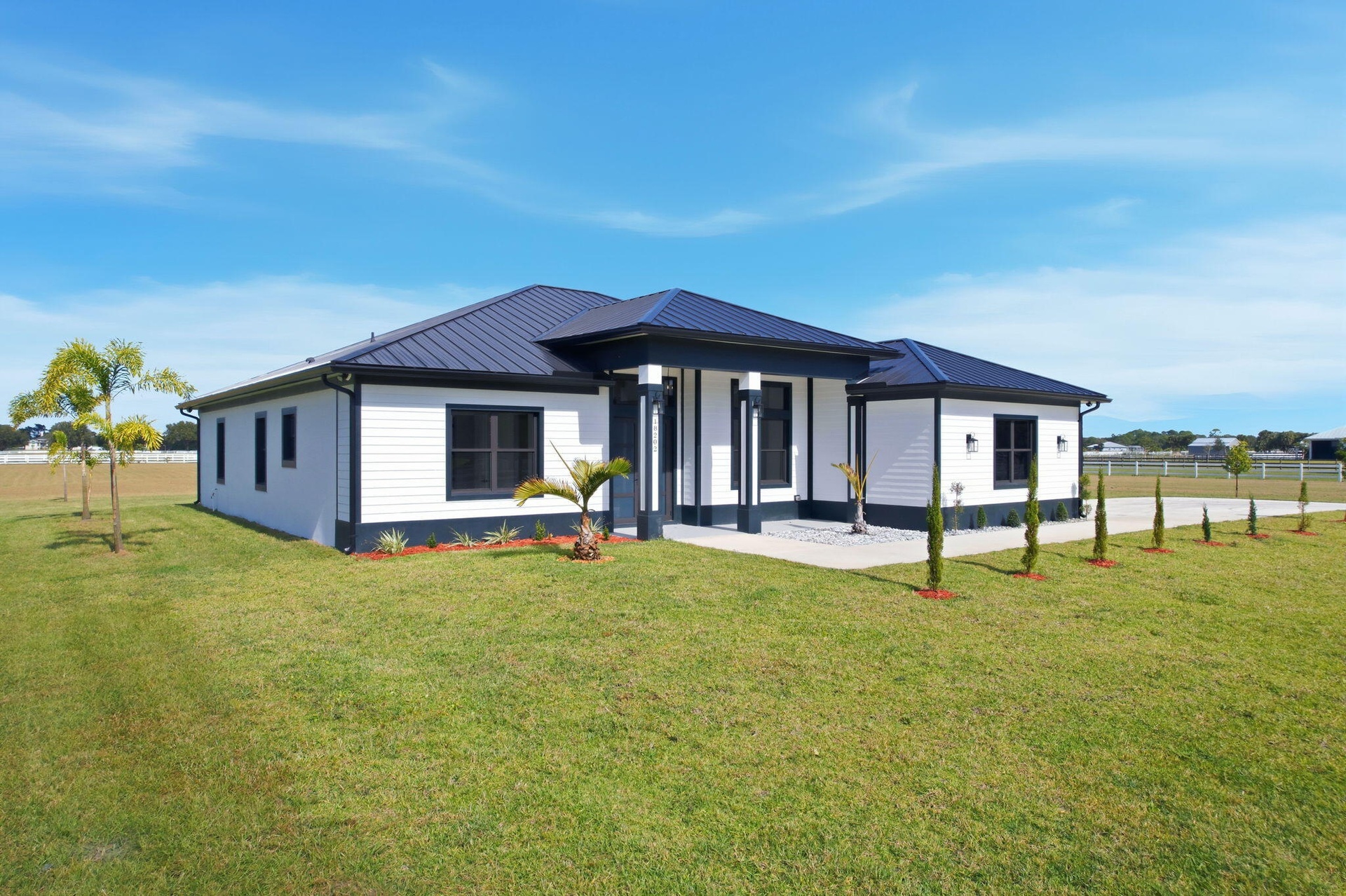 A New Construction, Custom Made Home. With quality building materials, quartz counter tops, metal roof, impact windows/doors, spray foam insulation, and on. Ready to move in, enjoy a peaceful 5 acres of equine property. Close to St.Lucie County Fair Grounds. Ten minutes away from I-95 and Turnpike. Not only is it a beautiful property, it is also in a wonderful location in close proximity of many upcoming developments near Midway Road. All the while maintaining distance from the city noise. Part of a Neighborhood association with trails for walking, or horse riding.