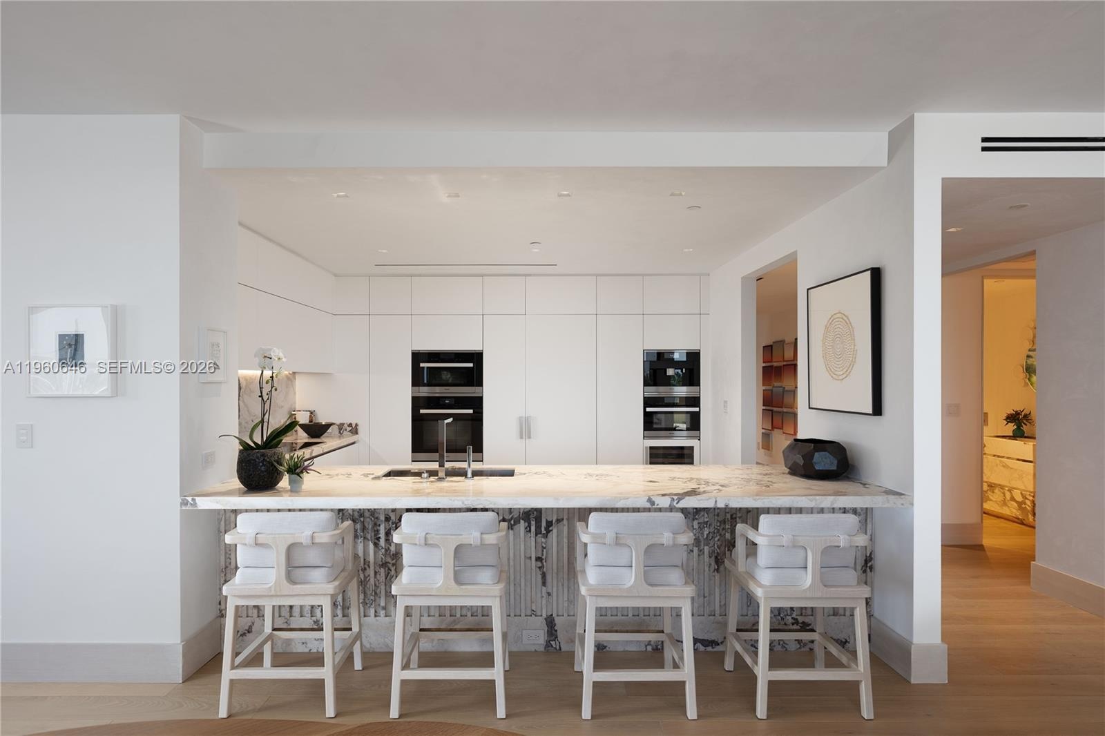 Residence 6851 is a waterfront condominium within Palazzo Della Luna on Fisher Island, offering a carefully renovated and technologically integrated interior totaling 3, 667 SF.