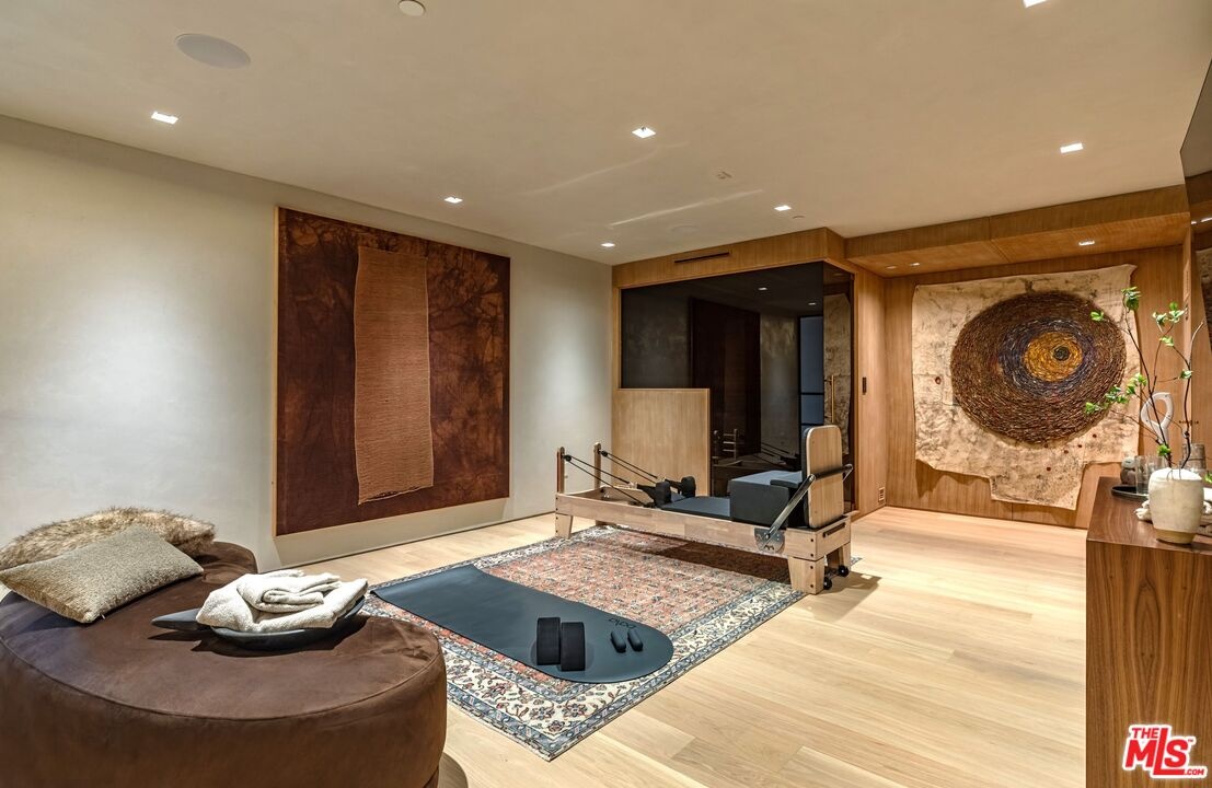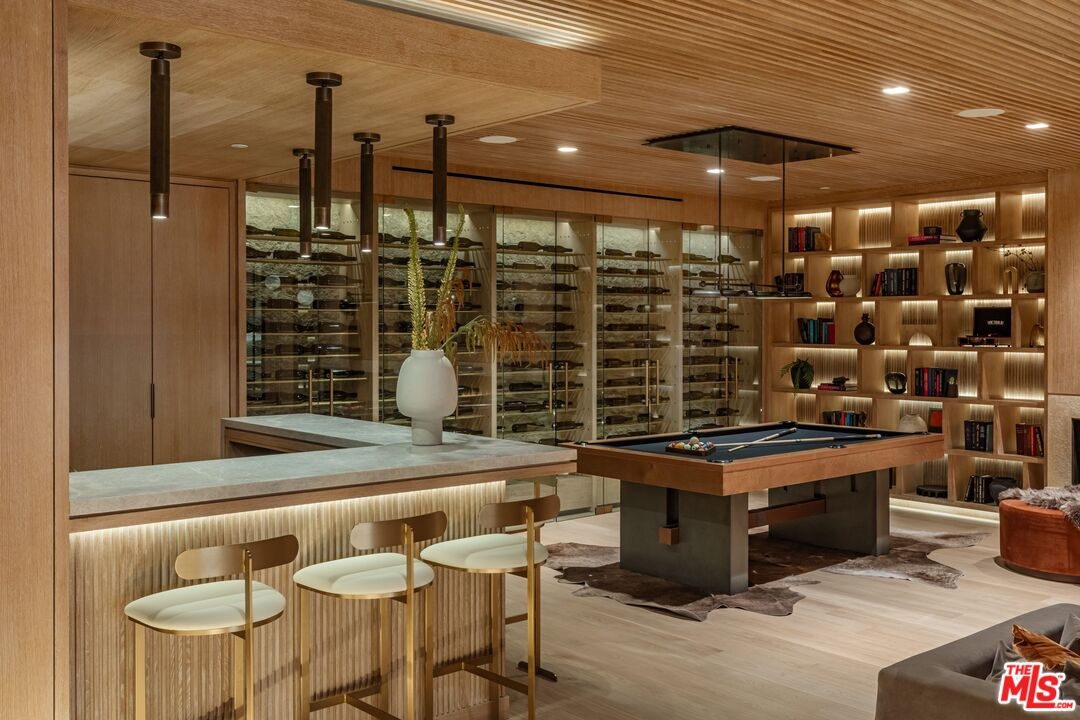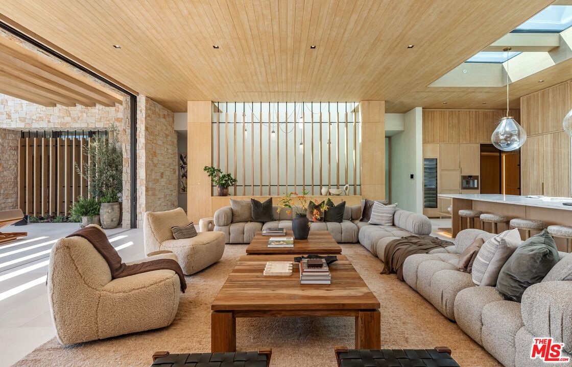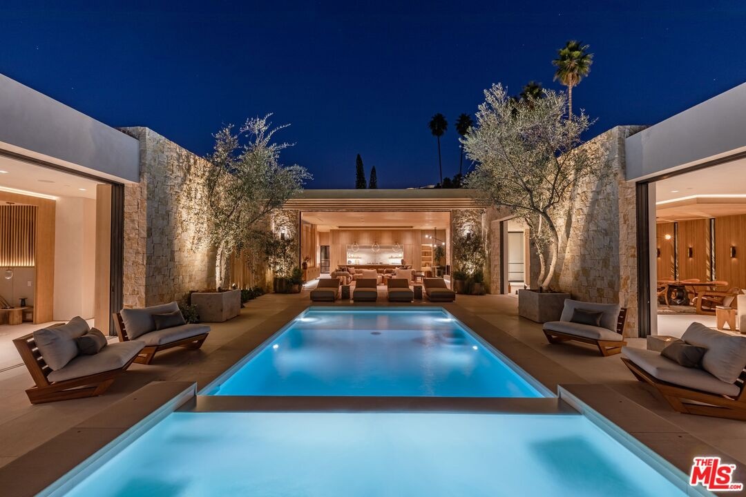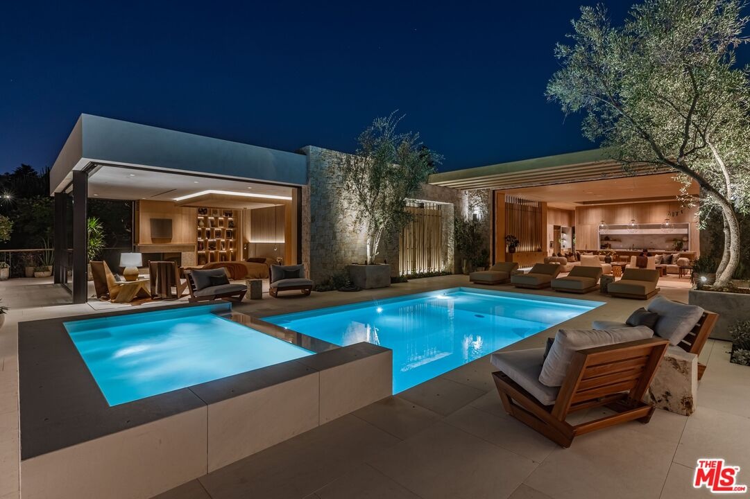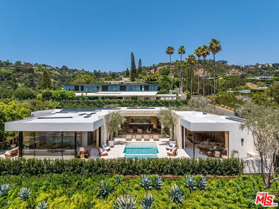 Experience timeless elegance in the exclusive Trousdale neighborhood of Beverly Hills. This organic estate, designed by renowned designer Charles Infante, weaves his experience in film to create a narrative fit for entertainment and curated for elevated living in every possible way. Spanning approx. 10,000 square feet, this architectural masterpiece showcases rich natural tones with Portuguese limestone, Italian Navona travertine, white oak paneling and floors, organic custom plaster walls, and motorized custom steel windows. Sleek lines perfectly frame cinematic city-to-ocean views. Inside, the main living spaces are open and airy, with walls of glass that fully pocket to create a seamless indoor/outdoor flow to the pool, spa, and patio. The expansive living room, dining area, and both the main and chef's kitchens are designed for grand scale living and entertaining. Four ensuite bedrooms offer refined comfort, in addition to a spacious, tranquil primary suite with motorized walls of glass, panoramic city views, and a spa-style bath. Luxurious amenities include a sleek gym with sauna, a temperature-controlled wine display, and an epic entertainment lounge with a sunken conversation pit, full bar, and state-of-the-art theater. The fully finished showcase garage features a car turntable; perfect for showcasing your collection. This is your moment to live above it all, in a home that sets the new standard for Trousdale living.
