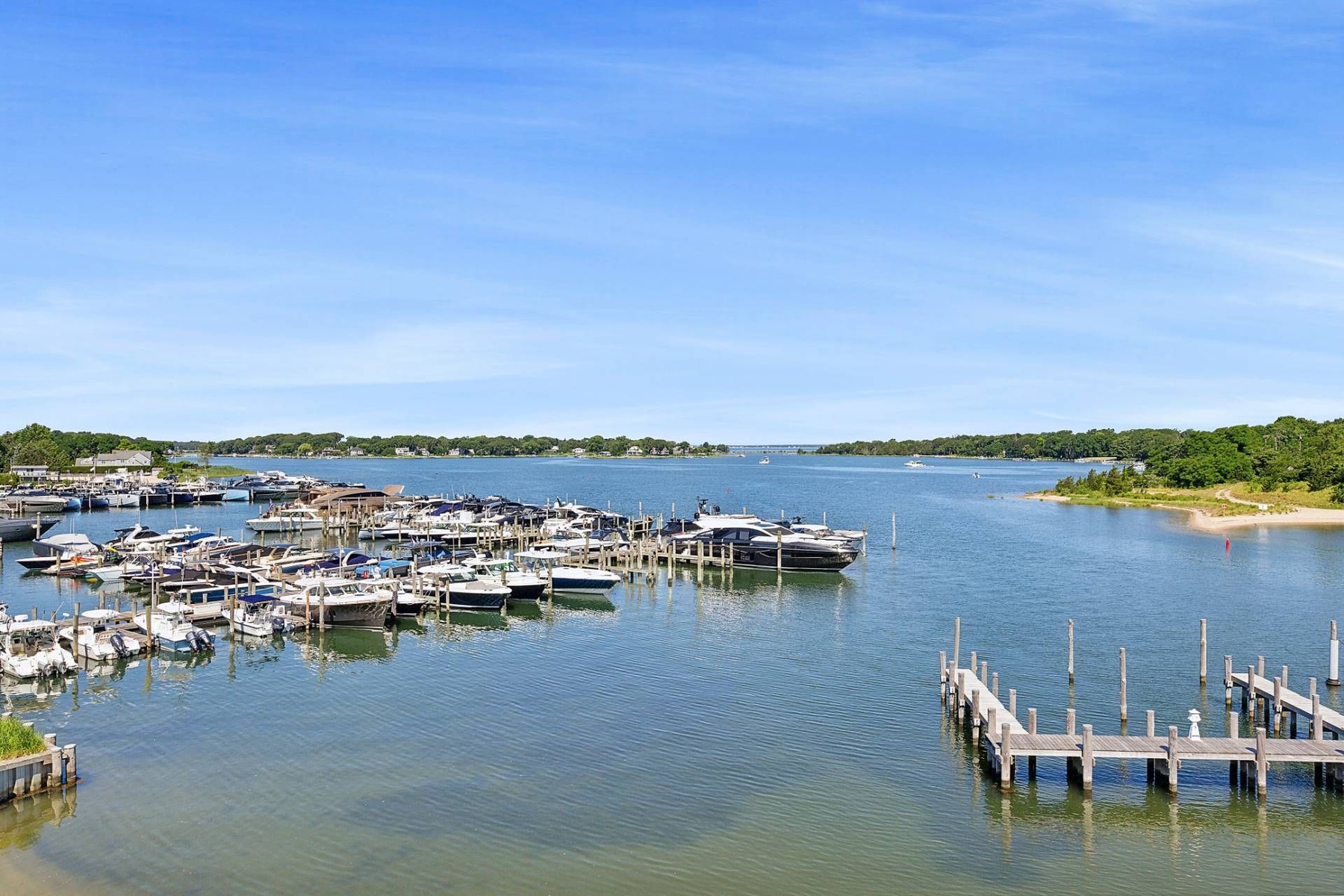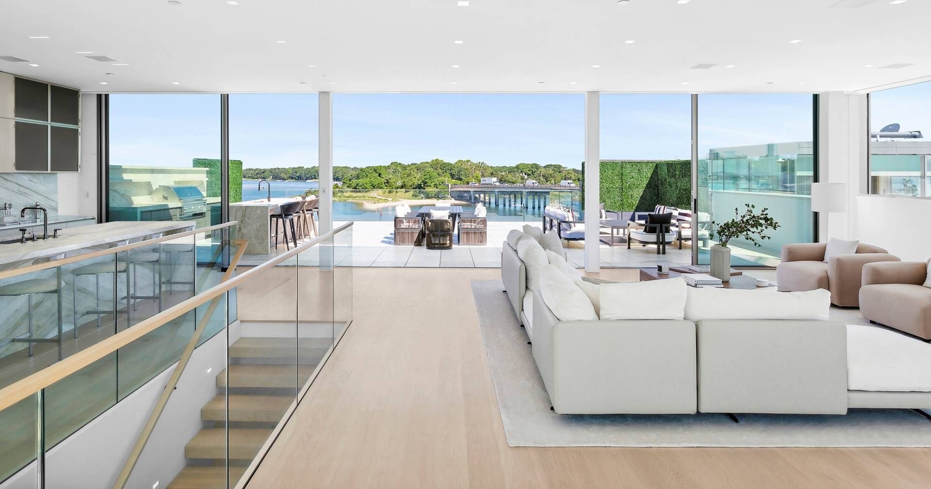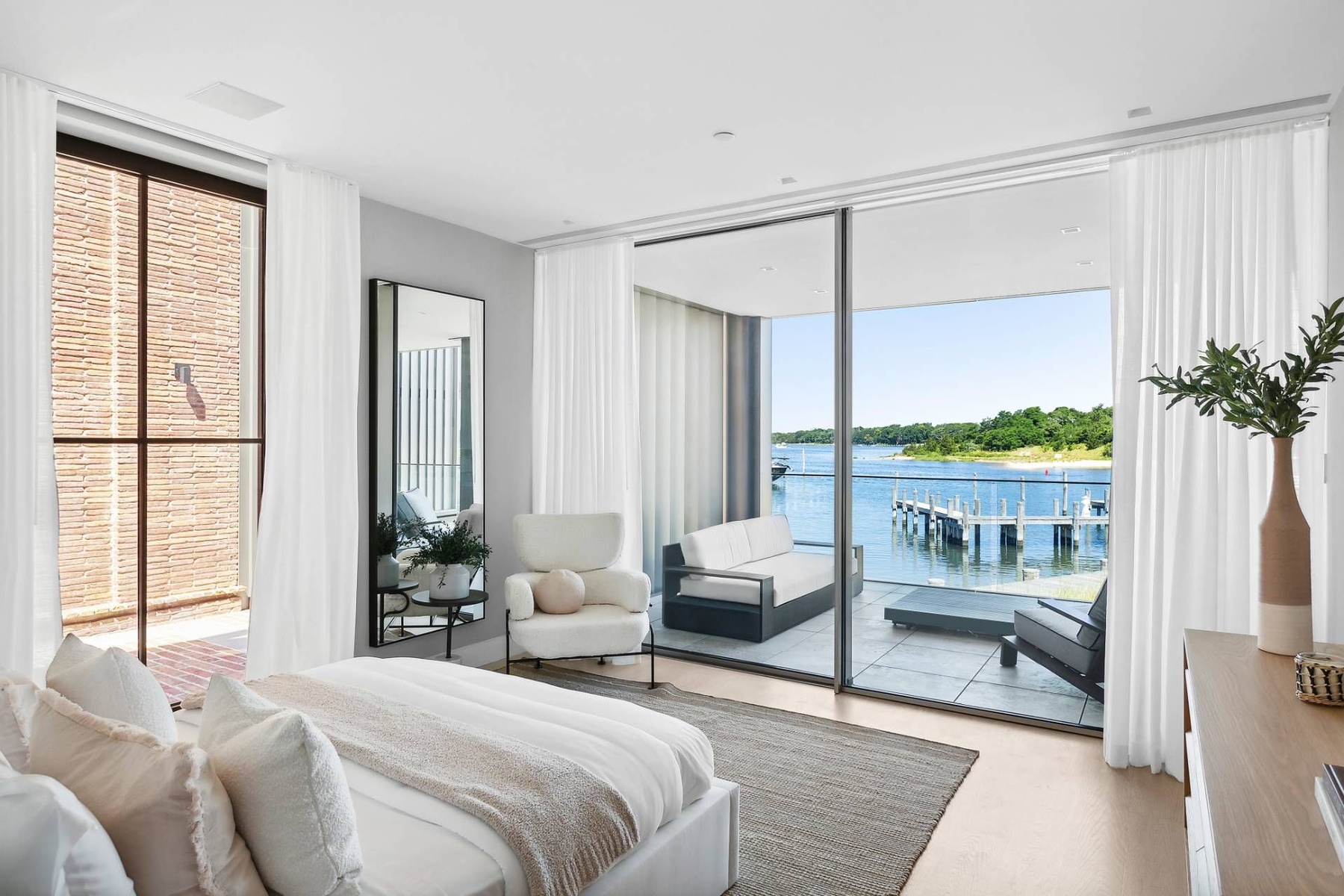 Presenting a truly exceptional waterfront offering at 2 West Water Street, Residence B, this remarkable property spans approximately 11,723± sq. ft. of thoughtfully designed interior and exterior living space. Created by J. Bialsky Premier Design & Development in collaboration with award-winning Andre Kikoski Architect, this turnkey residence represents a sophisticated blend of innovative architecture, modern luxury, and effortless waterfront living in the heart of Sag Harbor. Arranged across four elevator-serviced levels, the home features a refined layout with eight beautifully appointed bedroom suites and expansive, light-filled living spaces designed to capture the surrounding harbor views. The entry level offers direct garage access and opens to a welcoming family room that connects seamlessly to a waterfront gym and a covered porch overlooking the dock, creating a tranquil indoor-outdoor lifestyle experience. The second level is dedicated to the serene waterfront primary suite, complete with a spa-inspired bath featuring a soaking tub, a private office, dual closets, and a waterside terrace designed for quiet mornings overlooking the harbor. At the heart of the residence, the third-level great room serves as the main gathering space, showcasing an open-concept kitchen, dining, and living area. Floor-to-ceiling openings lead to an expansive waterfront deck, perfectly positioned to take in sweeping views across Sag Harbor Cove and the village beyond. The rooftop terrace elevates the living experience further, featuring an outdoor kitchen, multiple seating and dining areas, and panoramic vistas in every direction. The generous rooftop footprint also allows for the potential addition of a plunge pool or spa, creating a private retreat above the water. The offering includes private beach access and immediate harbor entry, along with two individual boat slips accommodating vessels up to 50 feet, making this an exceptional opportunity for boating enthusiasts. Seamlessly combining the comfort of modern townhouse living with the rare privilege of direct waterfront access, Residence B stands as a distinctive and highly sought-after Hamptons offering.