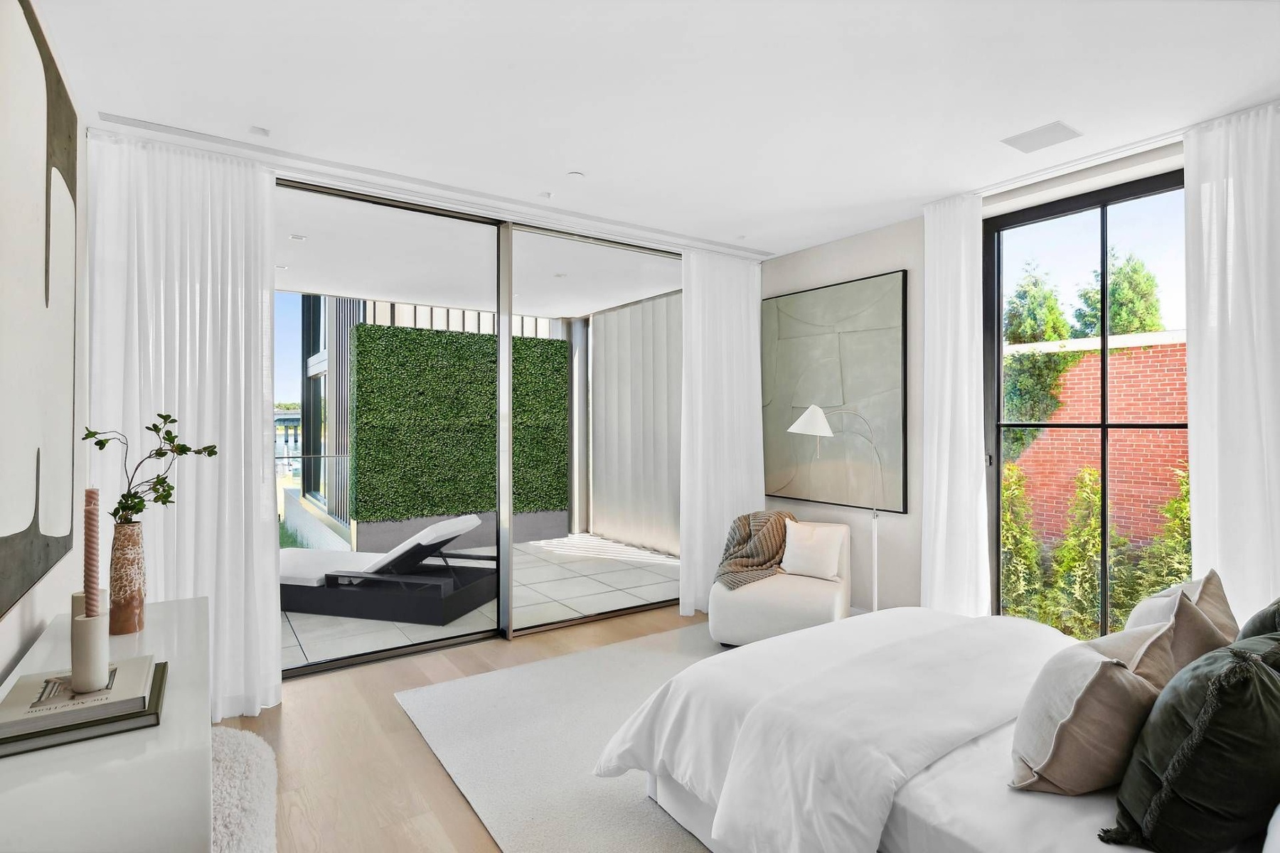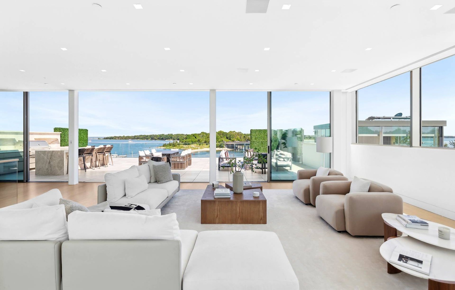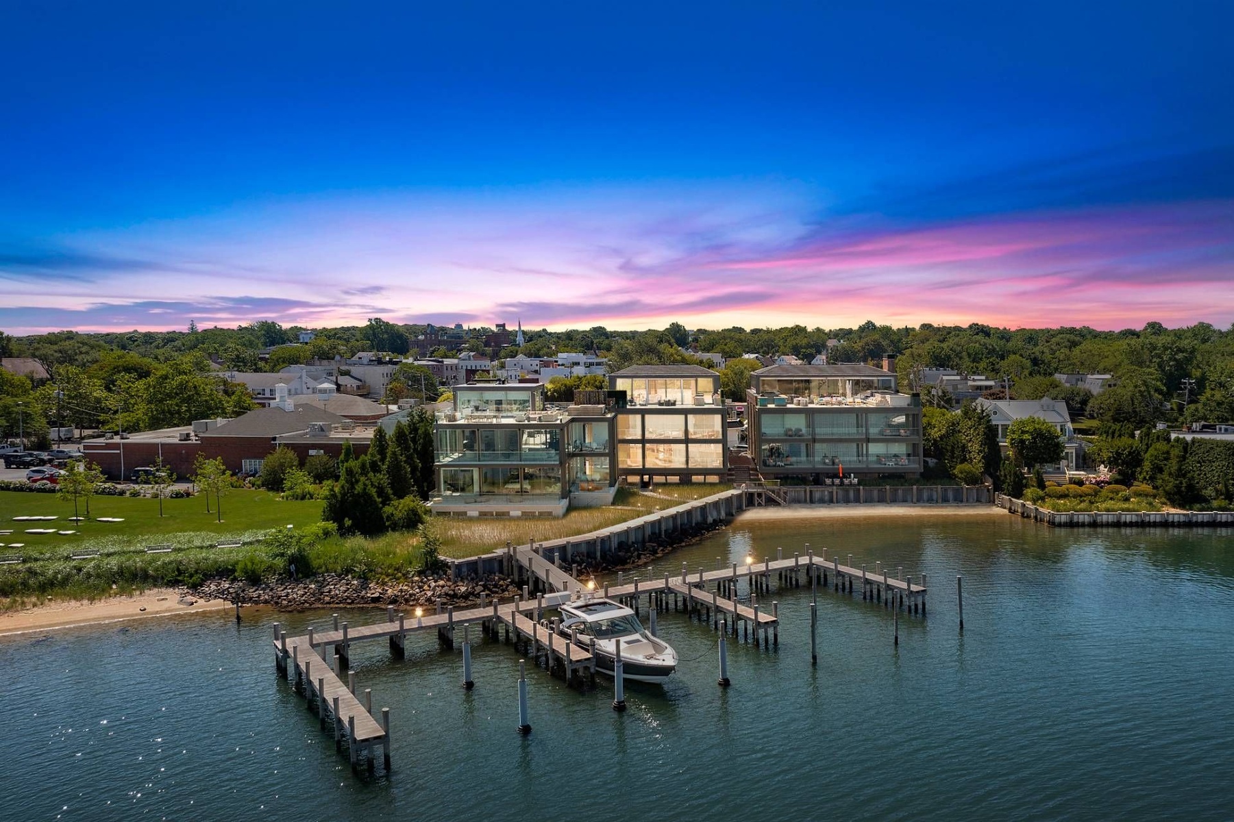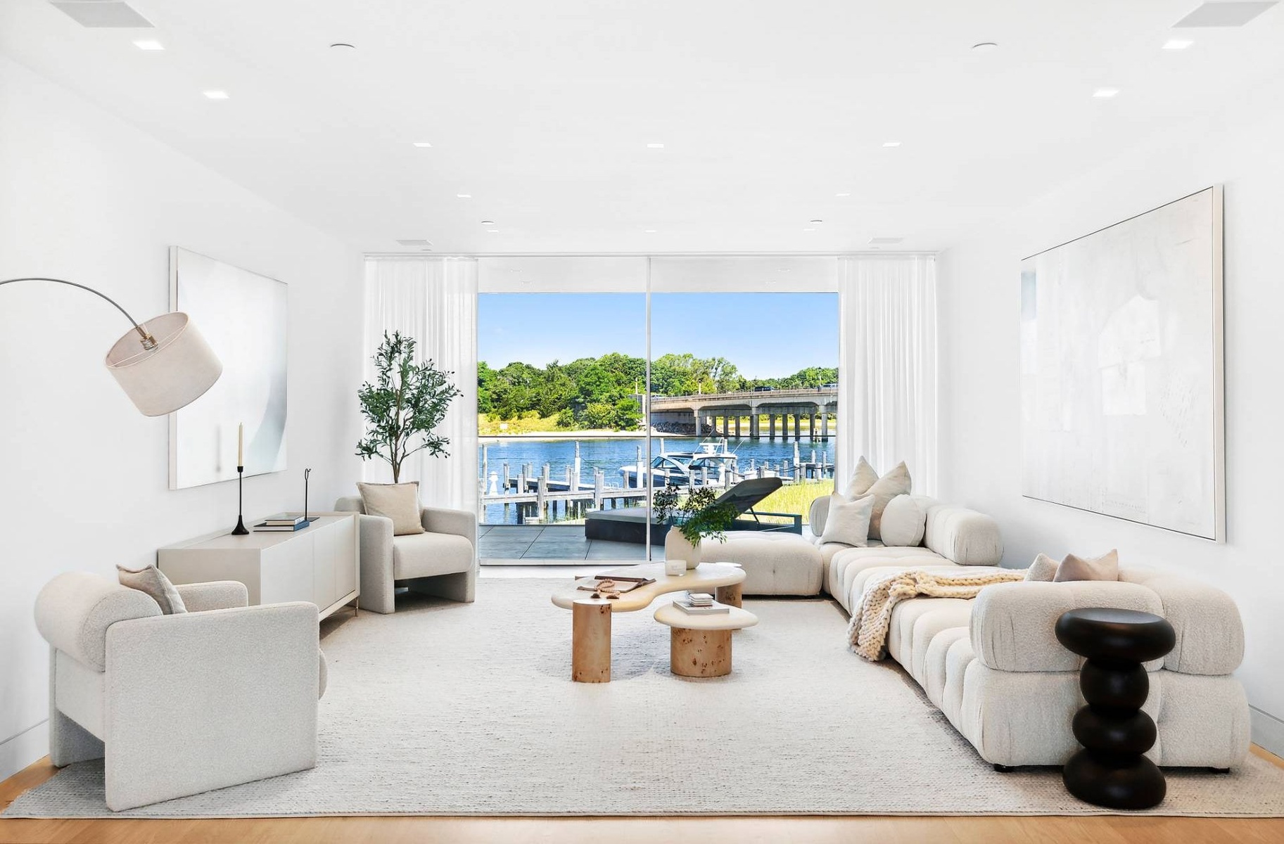 Presenting a truly exceptional waterfront offering at 2 West Water Street, Residence B, this remarkable property spans approximately 11,723± sq. ft. of thoughtfully designed interior and exterior living space. Created by J. Bialsky Premier Design & Development in collaboration with award-winning Andre Kikoski Architect, this turnkey residence represents a sophisticated blend of innovative architecture, modern luxury, and effortless waterfront living in the heart of Sag Harbor. Arranged across four elevator-serviced levels, the home features a refined layout with eight beautifully appointed bedroom suites and expansive, light-filled living spaces designed to capture the surrounding harbor views. The entry level offers direct garage access and opens to a welcoming family room that connects seamlessly to a waterfront gym and a covered porch overlooking the dock, creating a tranquil indoor-outdoor lifestyle experience. The second level is dedicated to the serene waterfront primary suite, complete with a spa-inspired bath featuring a soaking tub, a private office, dual closets, and a waterside terrace designed for quiet mornings overlooking the harbor. At the heart of the residence, the third-level great room serves as the main gathering space, showcasing an open-concept kitchen, dining, and living area. Floor-to-ceiling openings lead to an expansive waterfront deck, perfectly positioned to take in sweeping views across Sag Harbor Cove and the village beyond. The rooftop terrace elevates the living experience further, featuring an outdoor kitchen, multiple seating and dining areas, and panoramic vistas in every direction. The generous rooftop footprint also allows for the potential addition of a plunge pool or spa, creating a private retreat above the water. The offering includes private beach access and immediate harbor entry, along with two individual boat slips accommodating vessels up to 50 feet, making this an exceptional opportunity for boating enthusiasts. Seamlessly combining the comfort of modern townhouse living with the rare privilege of direct waterfront access, Residence B stands as a distinctive and highly sought-after Hamptons offering.