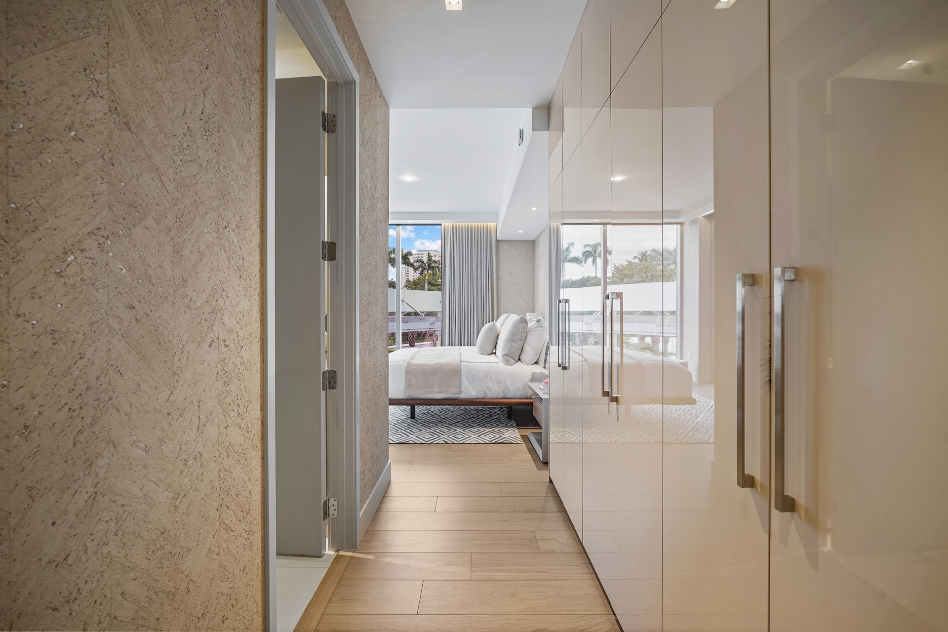Boca Beach Residences, waterfront Luxury living on Lake Boca! Perfectly positioned directly across the water from The Boca Raton & a short walk to The Boca Beach Club. This Exceptional 4,200 SF residence was meticulous designed by a top designer. It showcases statement millwork with integrated LED inlay lighting throughout, 48'' x 48'' marble flooring, a foyer that welcomes you with a dramatic agate stone feature and a fully custom chef's kitchen designed by Mia Cucina and exceptional appliances by Gaggenau. This home features a primary suite directly on Lake Boca with a generous balcony to enjoy your morning coffee or a cocktail at night. A custom closet to feature your beloved possessions as if you were in a high end department store and a bathroom with a wet room and steam shower that rivals any spa. The guest suite is gorgeous and comfortable with access to a balcony and a large bathroom. The club room is spectacular with wood paneling, cork wallpaper, marble slab inlay on the wall behind the desk and a large balcony. The clubroom also features a full bath, reach in closet and corner closet, easily converted into a third bedroom. Open family and living room are accentuated by floor to ceiling sliders that highlight the views of the intracoastal. The sliders open wall to wall and lead to a generous balcony where one can enjoy watching the yachts go by.... This home includes a dedicated boat slip accommodating a 50' vessel, along with 4 car garage spaces, 2 of which are privately enclosed to keep your favorite cars. Residents enjoy a full service luxury building offering a resort-style pool and grilling area, state of the art fitness center, valet parking, concierge services, 24 hour doorman & private security.