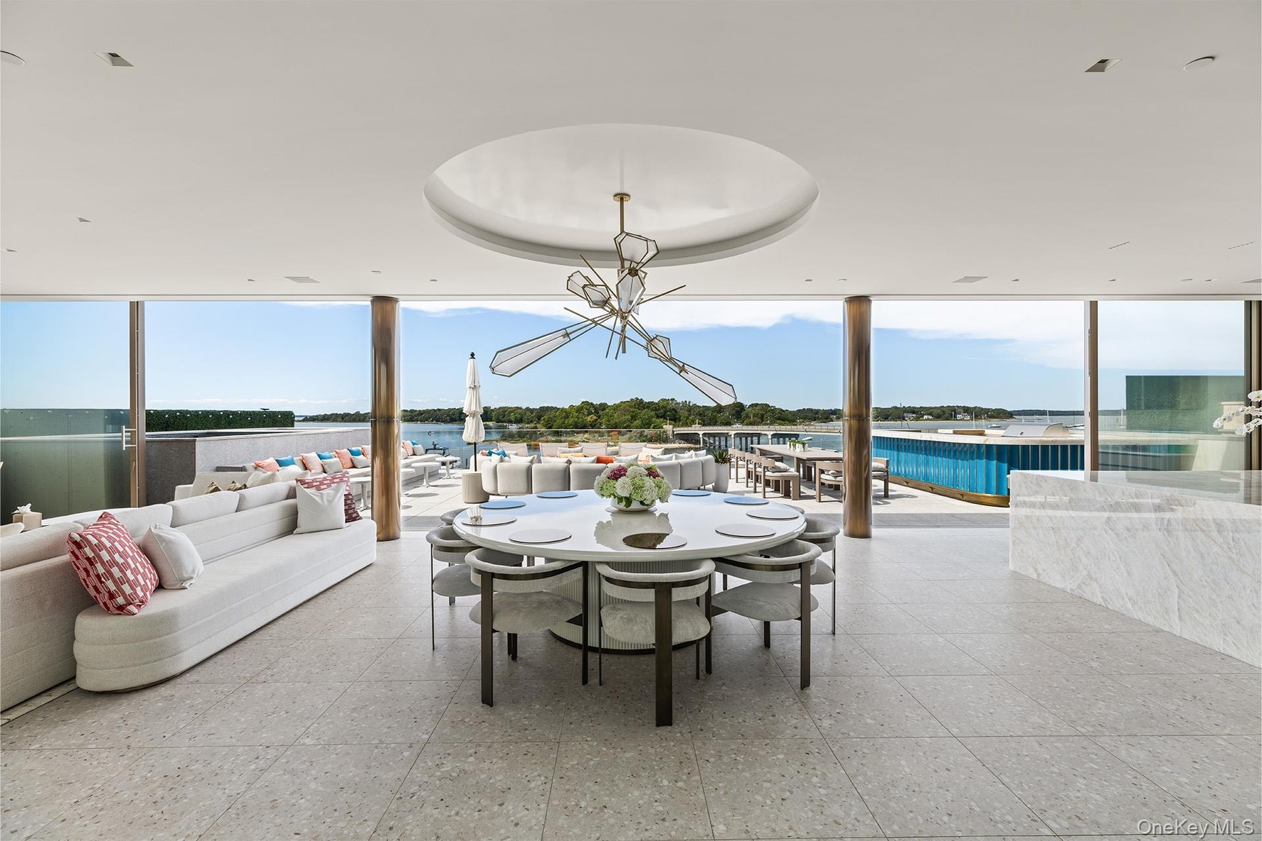 In the historic heart of Sag Harbor-a village defined by its whaling heritage and contemporary cultural gravity-Residence A emerges as a singular architectural achievement. Occupying a commanding 250'+/- of prime water frontage, this estate is not merely a residence; it is a four-level masterwork of light, glass, and stone, curated for the global citizen who demands total discretion alongside unrivaled nautical access. This unparalleled pedigree is a collaborative triumph between the visionary J. Bialsky of Bialsky Premiere Design & Development and the world-renowned Hollander Design Landscape Architects, the property represents a seamless dialogue between the built environment and the Peconic Bay. Every line is intentional, every view is framed, and every material is selected for its ability to withstand the coastal elements while maintaining a refined aesthetic. Spanning a staggering 16,974 SF+/- of total living space, the residence is designed as a vertical sanctuary, where grand-scale entertaining meets quiet, private retreat. The interior volume boasts 12,551 SF+/- of meticulously crafted interiors featuring a palette of organic textures and state-of-the-art finishes. The layout accommodates 8 palatial bedrooms and 10 bespoke bathrooms, ensuring ample space for family, guests, and live-in staff. An outdoor al fresco experience of tiered terraces and lounge decks provide a multi-sensory connection to the water. With a rooftop sanctuary, a crowning achievement, featuring a private pool and spa suspended above the harbor, offering a 360-degree vantage point of Sag Harbor's gold-coast sunsets. For the yachting enthusiast, the property offers a level of utility rarely found in private residential real estate. Exclusive marina access: The estate includes a private, deep-water marina featuring two 60' boat slips. Located at the epicenter of the Hamptons' maritime scene, providing immediate access to the open Atlantic or the sheltered coves of the Shelter Island Sound. Beyond the views, the residence functions with the precision of a high-tech fortress. From the secure private garage parking-a rare luxury in the village-to the integrated smart-home systems that manage climate, lighting, and security from anywhere in the world, This residence is the ultimate turn-key asset for the high-net-worth portfolio.
