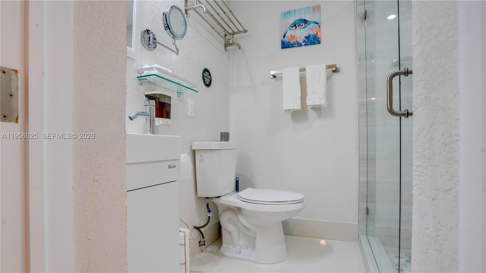 The heart of the home is the chef-inspired custom kitchen, featuring sleek European cabinetry, expansive quartz countertops, and a premium suite of newer (2022) stainless steel appliances. Both bathrooms have been tastefully modernized to match the home’s contemporary aesthetic, offering a spa-like feel.