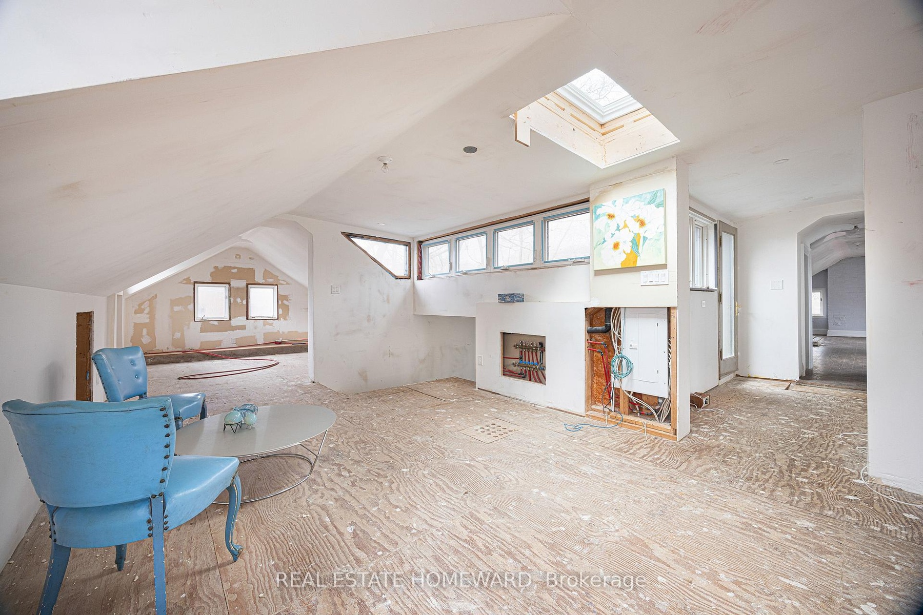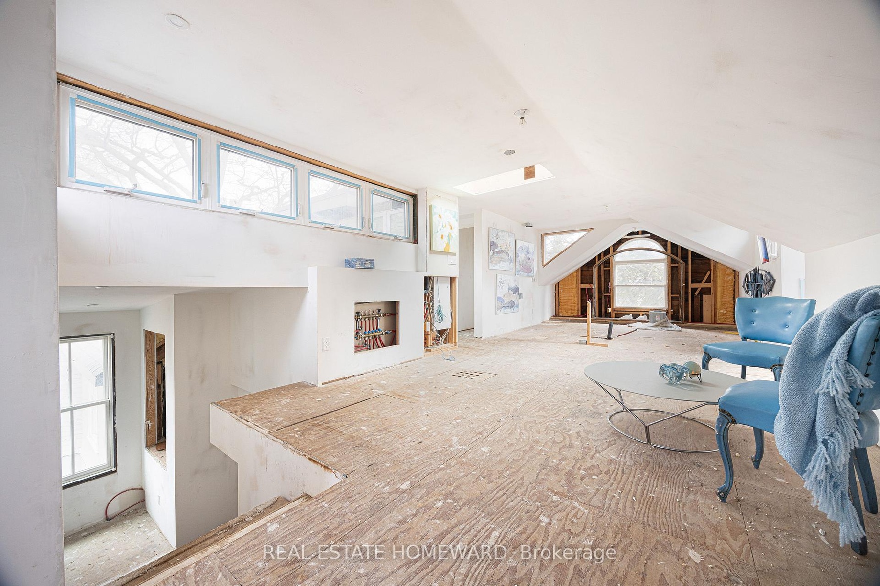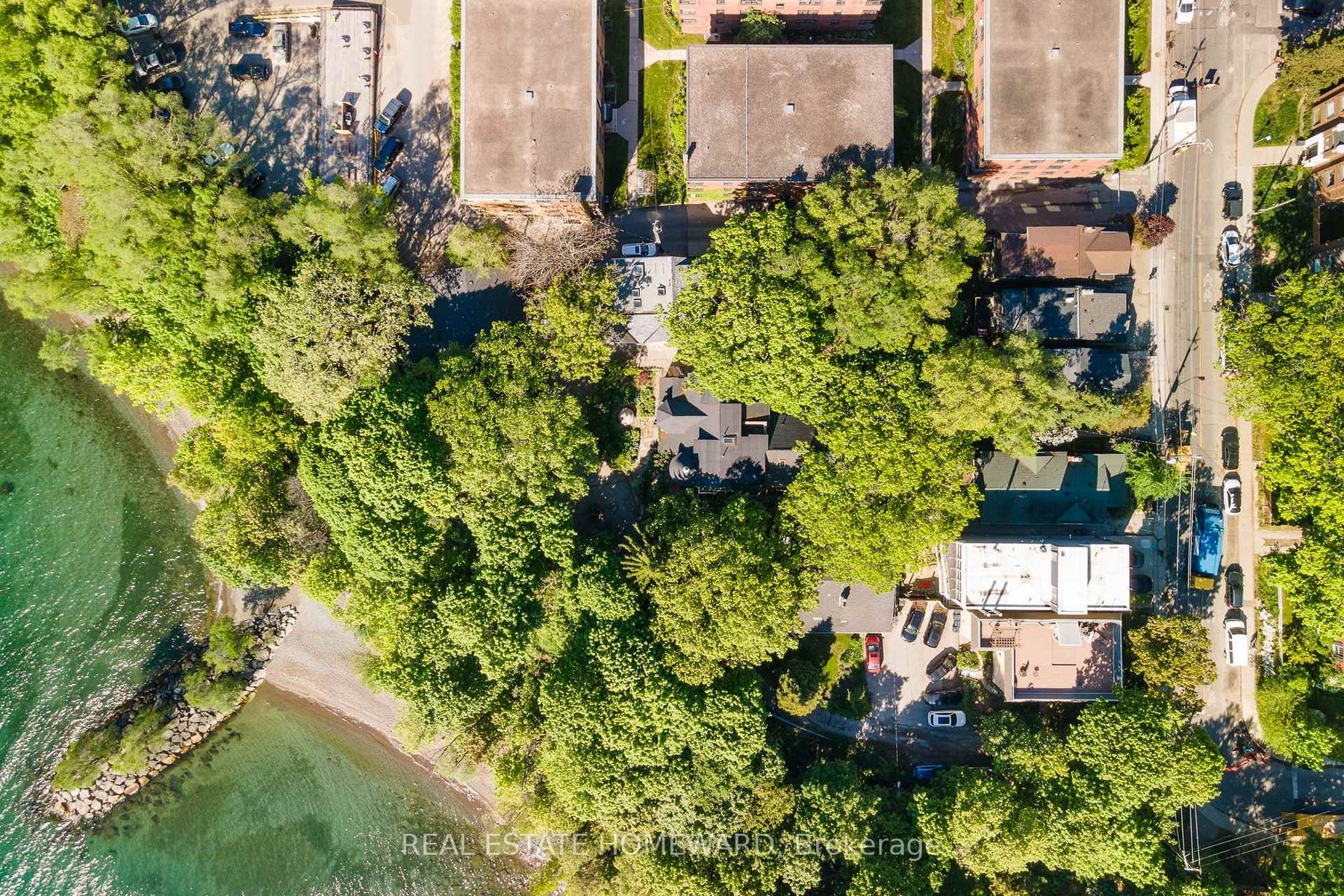 Own your own castle in the city!!! Rare 7-unit investment property with exceptional character and history, located in the Beaches and overlooking Lake Ontario. Known as Chateau de Quatre Vents (Castle of the Four Winds), this landmark was designed by the architect of Casa Loma and Old City Hall. The home has been converted into 7 self-contained suites, each with separate hydro. Three units are currently rentable; four units are under renovation with plumbing and electrical completed, ready for finishing. The layout includes five 2-bedroom and two 1-bedroom suites, with projected gross income of approximately $350,000 annually once completed. Although the civic address is Queen Street, the house is set back over 100 feet from the street on a bluff facing the lake, with sweeping views from most principal rooms. Access is from a walkway off Queen Street or via a winding driveway from Rockaway Crescent. The property is subject to a Heritage designation under the Ontario Heritage Act. Irregular lot buyer to verify lot dimensions and lot lines. Being sold under Power of Sale in as-is, where-is condition without representation or warranty from the Seller. Do not walk the property without an appointment.