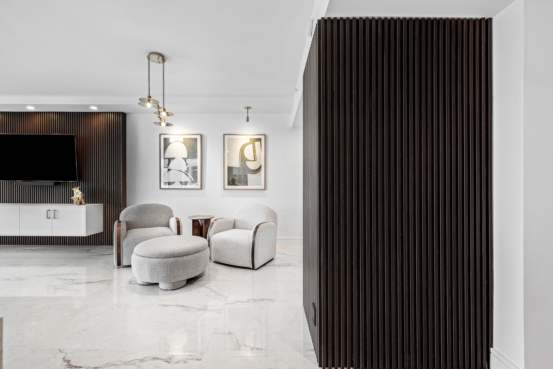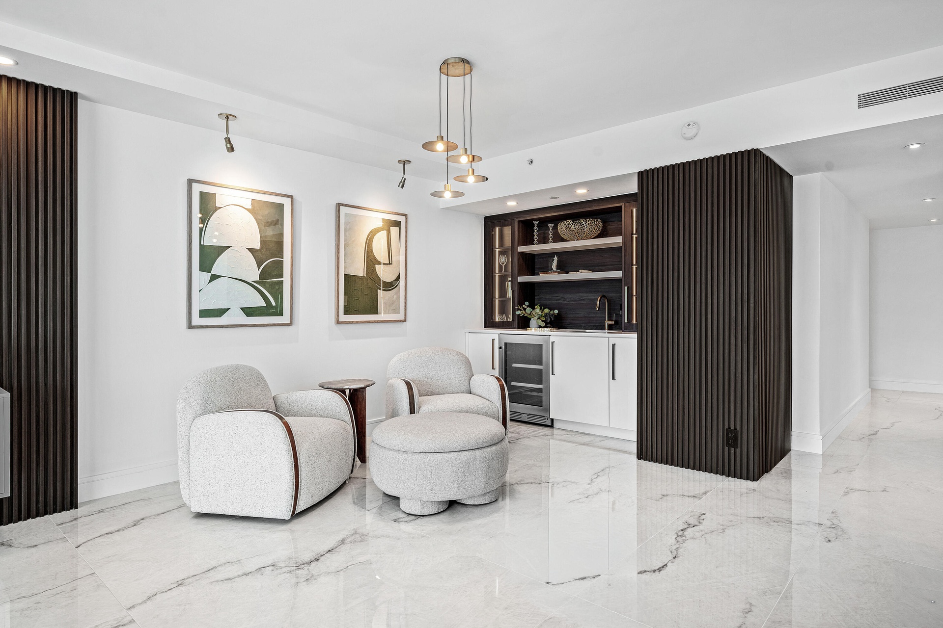 Step into a masterfully redesigned 2,091sqft residence at The Plaza, offering breathtaking ocean, intracoastal, and sunset city views from an ultra-luxury, east-to-west layout. Every inch of this home has been fully-renovated with no detail overlooked, blending modern elegance with thoughtful functionality. A grand, light-filled great room features polished porcelain tile throughout, custom fluted millwork, integrated media wall, and a designer wet bar with illuminated glass cabinetry; all capturing sweeping waterfront vistas through floor-to-ceiling impact glass. Visual Comfort lighting, art spotlights, and sleek architectural lines create an atmosphere that is as refined as it is inviting. The gourmet kitchen showcases Thermador appliances, bespoke cabinetry, backlit display elements, and exceptional storage. The spa-quality bathrooms are beautifully light-filled with windows, and include custom-feature walls, oversized glass showers with rainfall fixtures, luxury vanities, and sophisticated brass accents. The primary suite boasts a show-stopping bath with freestanding tub and skyline views, plus a fully customized boutique-style dressing room with integrated LED lighting and built-in cabinetry. The Plaza is one of West Palm Beach's iconic full-service buildings, offering private gated entry, 24-hour guardhouse and valet, five-star concierge, two pools facing east and west, hot tub, three fitness centers, tennis, pickleball, sauna, steam room and beautifully maintained grounds. The building is currently undergoing an exciting exterior enhancement, with balconies being fully renovated to all-glass railings and a fresh, modernized façade, elevating the overall aesthetic and future value of the property. Enjoy complimentary AKA Hotel amenity passes while building improvements are underway. Unmatched design, craftsmanship, amenities, and panoramic viewsperfectly positioned moments from One Flagler, West Palm Point, 360 Rosemary, and the best of downtown West Palm Beach living. Ideally located moments from the waterfront, dining, and cultural destinations that define this premier urban lifestyle. A rare move-in ready residence offering unmatched design, craftsmanship, and incredible views in the heart of West Palm Beach.