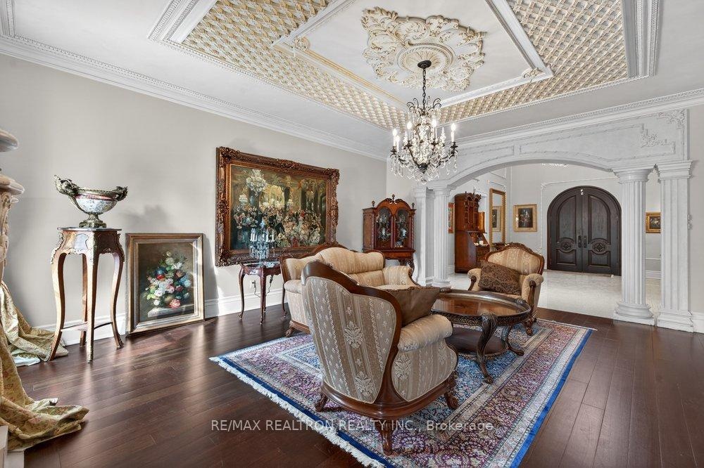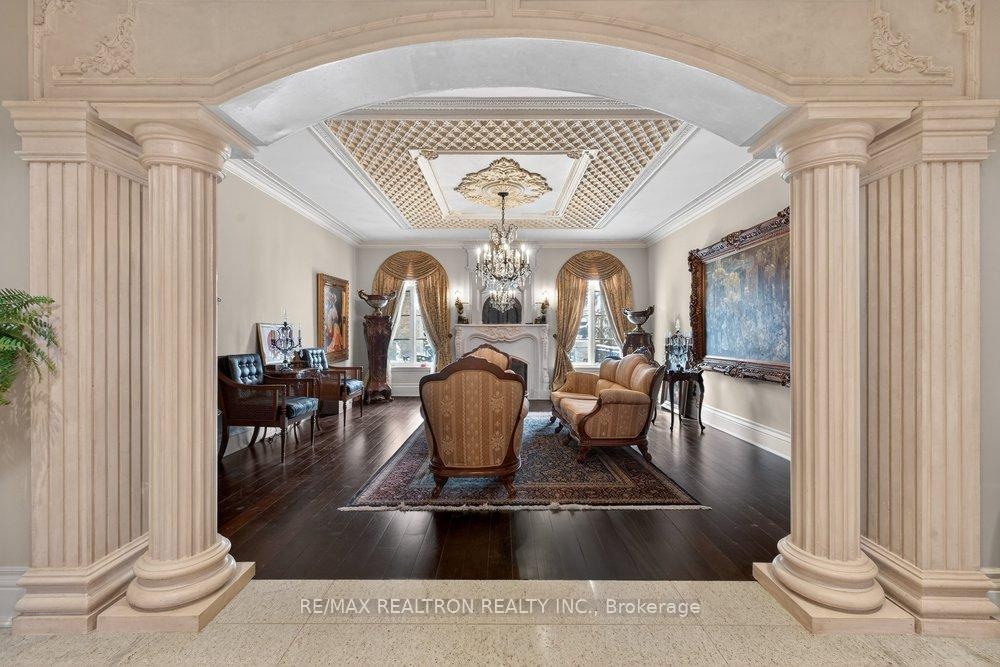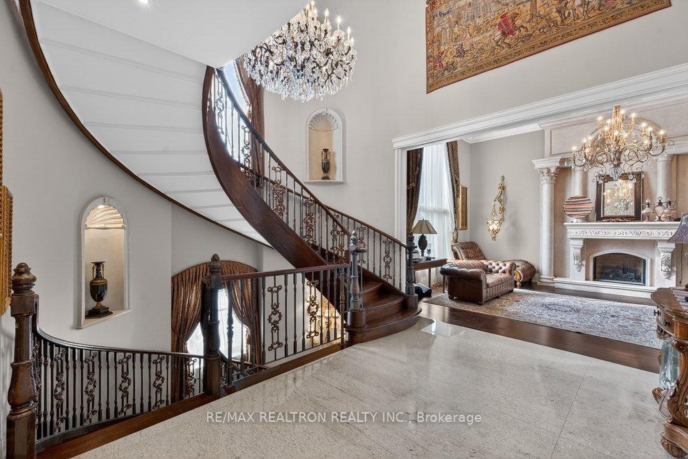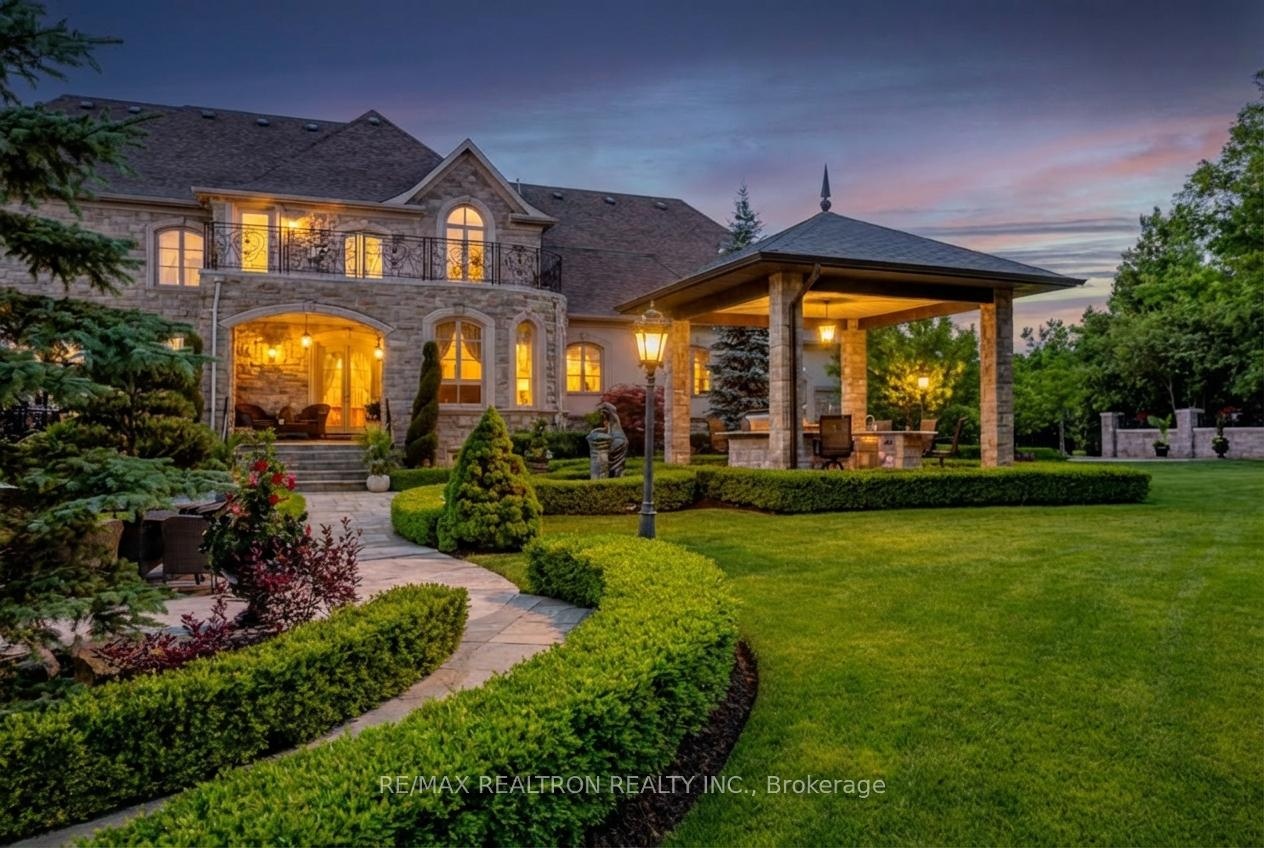 An ultra-rare gated Kleinburg estate set on an extraordinary 4.5 acres of impeccably manicured, conservation-backed grounds within one of Vaughan's most coveted estate courts. This European Castle-inspired residence offers approximately 11,000 square feet of refined living space, showcasing exceptional craftsmanship, soaring ceilings, and rich architectural detail throughout. The grand & highly functional layout is designed for elevated living and entertaining. Features include multiple kitchens, a main-floor butler's preparation kitchen, servant's staircase, private wine room, and a dramatic château-style lower-level wine cellar with tasting area. The professionally finished lower level further enhances the home's true estate caliber. Seamless indoor-outdoor living opens to storybook grounds with fairytale views, expansive terraces, an outdoor kitchen, saltwater pool with indoor cabana, and resort-style amenities. A heated six-car garage, multiple laundry centres, and top-tier finishes complete this world-class offering where privacy, luxury, and tranquility converge. Ideally located just steps to Kleinburg Village, schools, shops, and amenities, with convenient access to downtown Toronto and the airport. A truly irreplaceable residence.