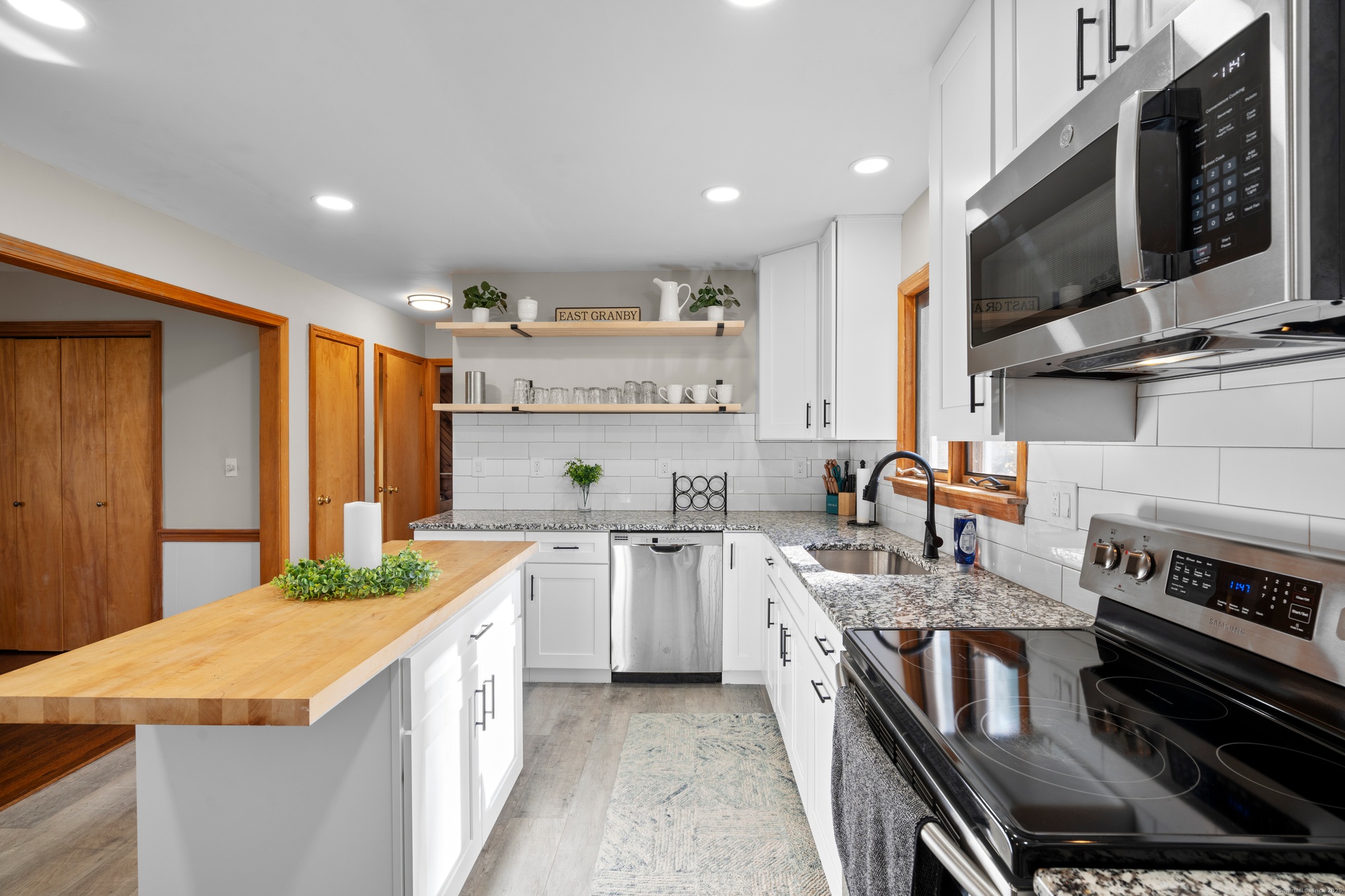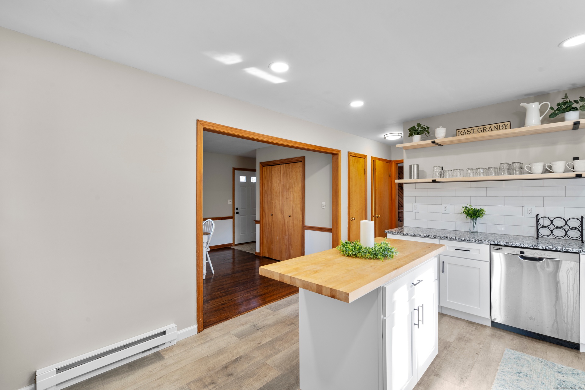 Welcome Home! This well maintained cape style home is ready for its new owners! This home features a convenient, well-designed layout with large remodeled kitchen featuring tile backsplash, island with butcher block, granite counter tops and floating wood shelving. The kitchen flows into the living room, dining room, and the sun-room. The sun room overlooks a new concrete patio overlooking a fenced in back yard with plenty of room for activities and entertaining. The living room features a propane fire insert for those cold winter nights, multiple windows for plenty of natural light, and a pine accent wall. The finished basement adds additional finished space including a full bathroom, and utility room with washer and dryer hookups. On the upper level you'll find 3 bedrooms with refinished hardwood flooring and a full updated bath. An oversized garage, refinished hardwood floors, newer roof and siding, and freshly painted interior truly make this home turn key! Farmington is a highly desirable town with highly rated public schools, low taxes, and is centrally located for easy commuting. Make this one yours!