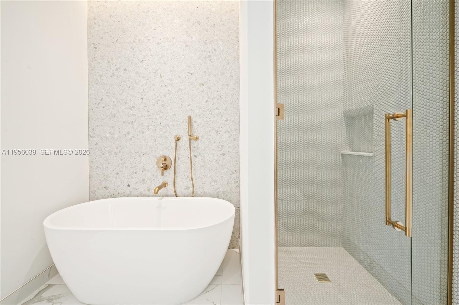 The primary suite includes a spa-style bathroom with freestanding soaking tub, glass-enclosed shower, custom vanity plus thoughtfully designed custom closet maximizing storage space. A generous second bedroom offers flexibility for guests, home office, or den.