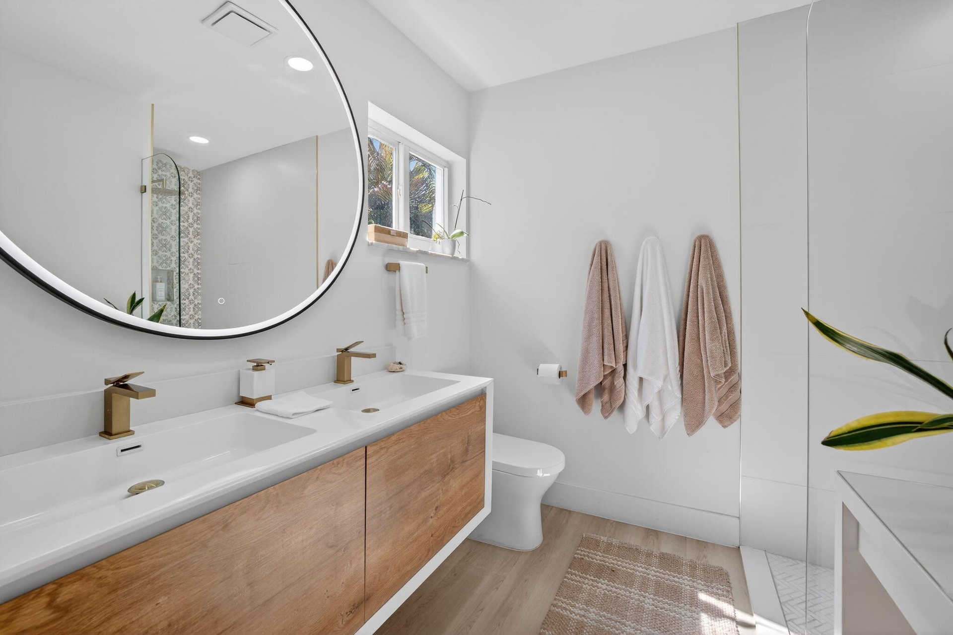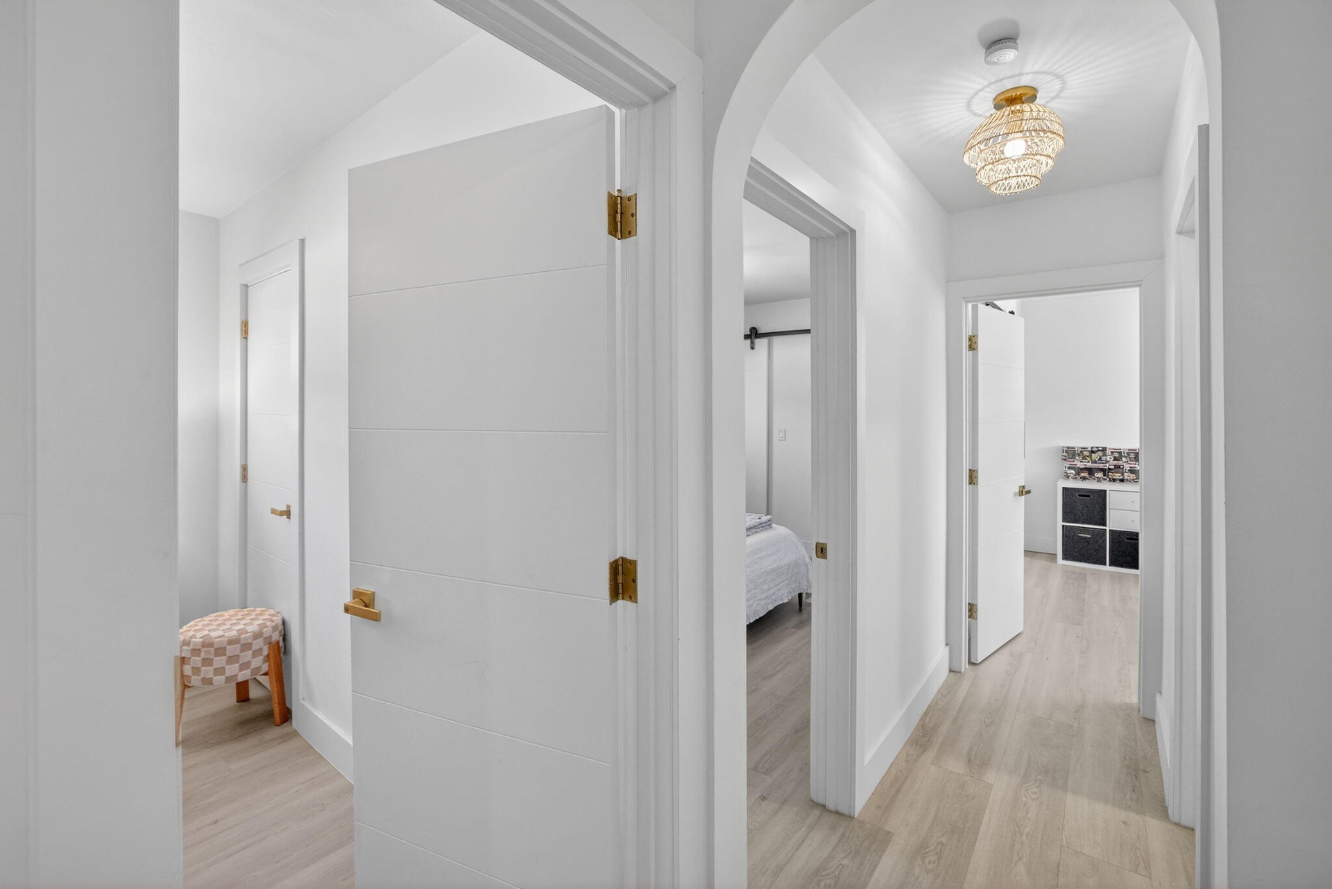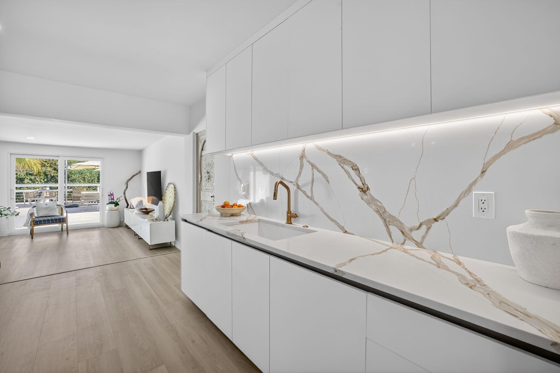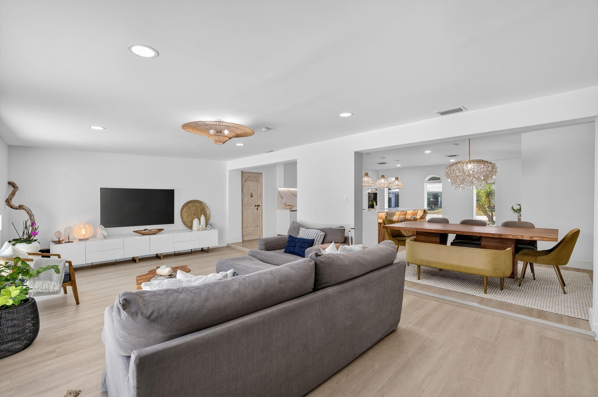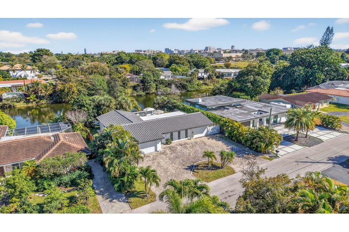 Exquisitely renovated 4BR/2.5BA coastal-modern lakeside residence in Conference Lakes Estates in the heart of East Boca. Featuring impact glass and a brand-new roof, this exceptional home blends sophisticated design with effortless South Florida living. Wide-plank wood-look luxury vinyl floors lead to a showstopping chef's kitchen with waterfall-edge quartz countertops, Samsung smart appliances, hidden pantry, and custom European soft-close cabinetry. Statement lighting highlights the open dining area and expansive great room with dual sliders that open to a stunning lakefront deck — perfect for indoor-outdoor entertaining. The primary retreat stuns with a Moroccan entry door, custom walk-in closet room, and spa-inspired bath designed for ultimate relaxation. Tropical grounds offer room for a pool, along with a spacious 2-car garage.