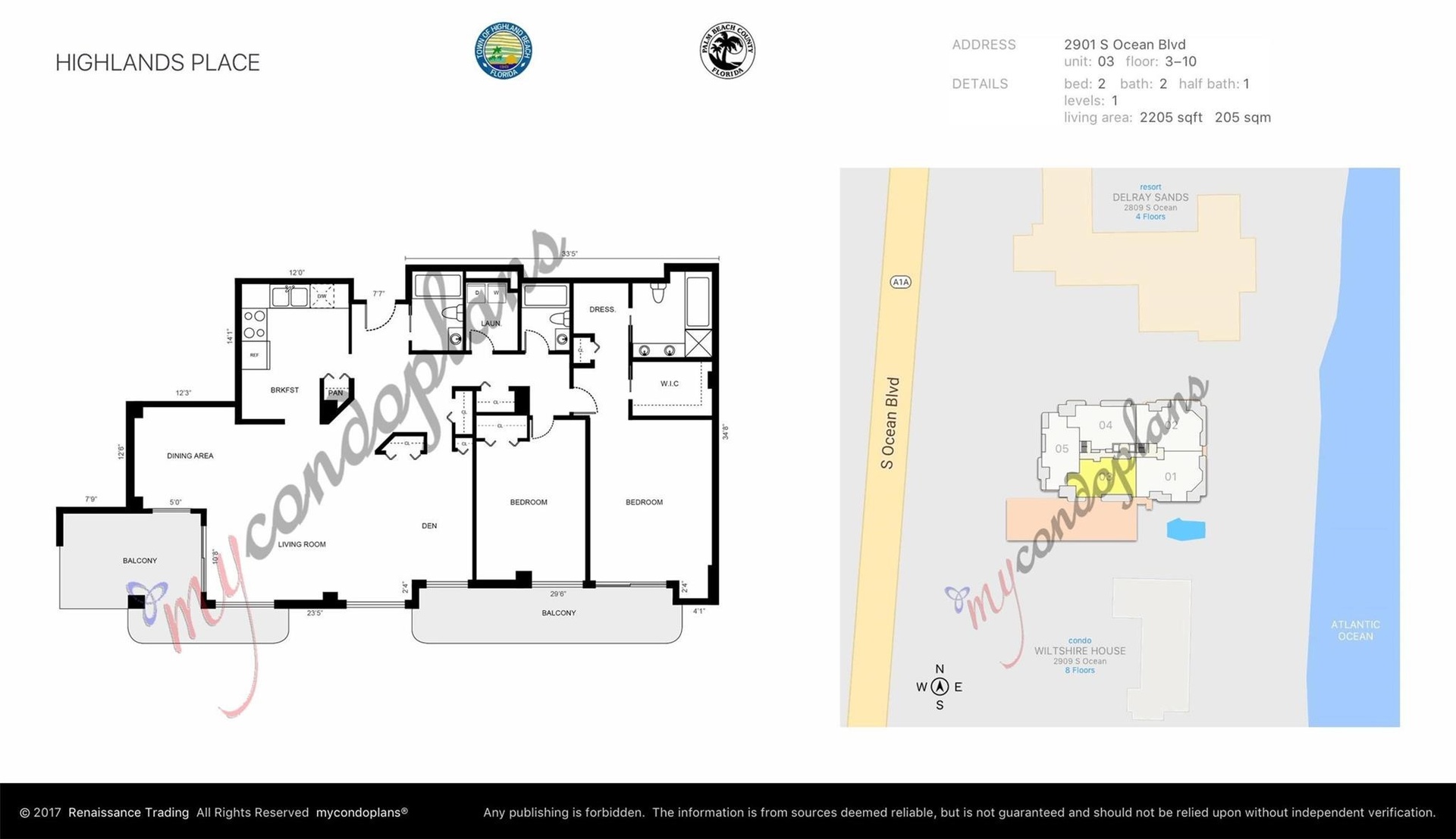 This oceanfront 2BR 2. 5BA condo in Highland Beach is offered at an exceptional value with over 2, 200 square feet under air on the 8th floor, featuring 180 Ocean ...