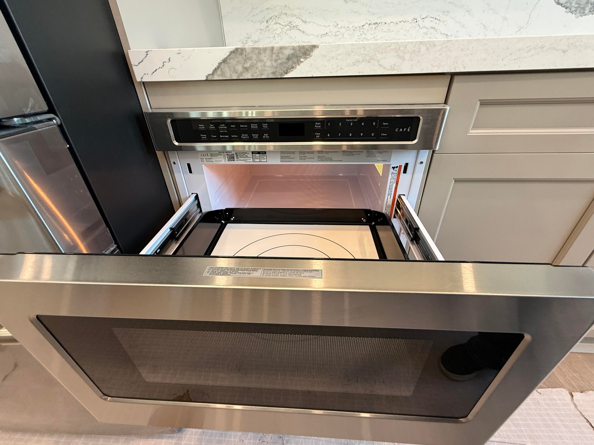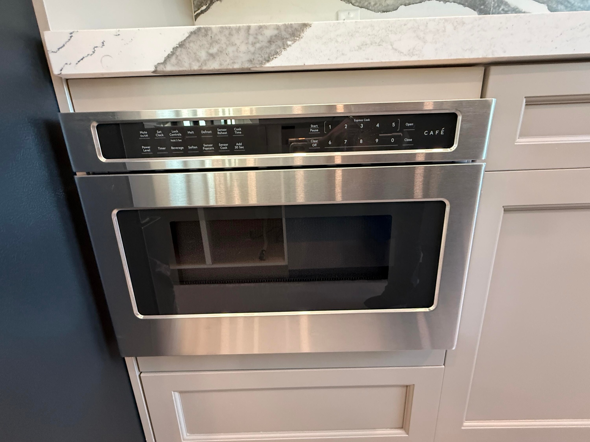 The chef-inspired gourmet kitchen anchors the home with the GE Cafe line of professional-grade appointments, including a 36'' induction cooktop, a ventilation hood, double wall ovens, a wine chiller, and a built-in microwave drawer. Every detail provides both functionality and style for daily living and entertaining.
