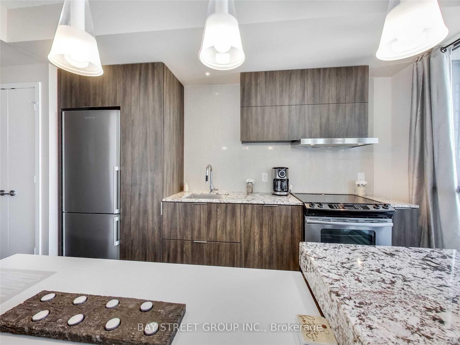 Beautiful Furnished Studio In A Super Well-Managed Building, Luxury, Spacious and functional layout. Enjoy The Amazing Views From An Oversized Balcony. Total 3 Closets, including a Very Large One in Living Room. The Kitchen Is Fully Loaded with A Big Island. A Queen Murphy bed and one locker is also included. 3 Minute Walk To The Subway, Restaurants, Shopping, Etc.