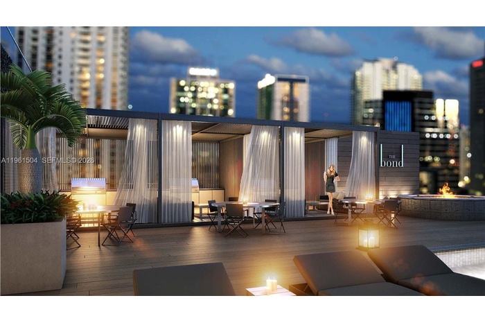 A state-of-the-art residence in sophisticated central Brickell, this 1-bedroom, 1.5-bathroom unit is located on the 32nd floor of the luxurious British inspired high rise, The Bond on Brickell. Unit includes a fully equipped kitchen outfitted with all premium appliances, as well as an assigned garage parking space. Enjoy spectacular views of the city & the bay both day & night from the 32nd floor balcony. High impact sliding glass doors. 5-star resort level amenities with concierge service, security, fully equipped gym, his & her sauna, Resident's lounge, infinity pool, hot tub, & pool deck cabanas w/ BBQ grills. 5-minute walk to popular shopping, dining, entertainment venues at Brickell City Centre. Chic British decor in this upscale residence in the heart of Miami make The Bond on Brickell a truly exclusive downtown lifestyle experience.
