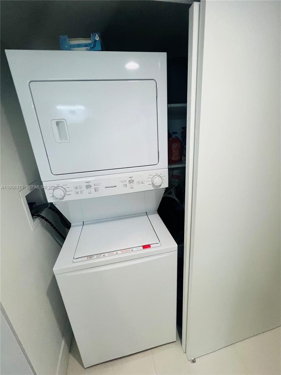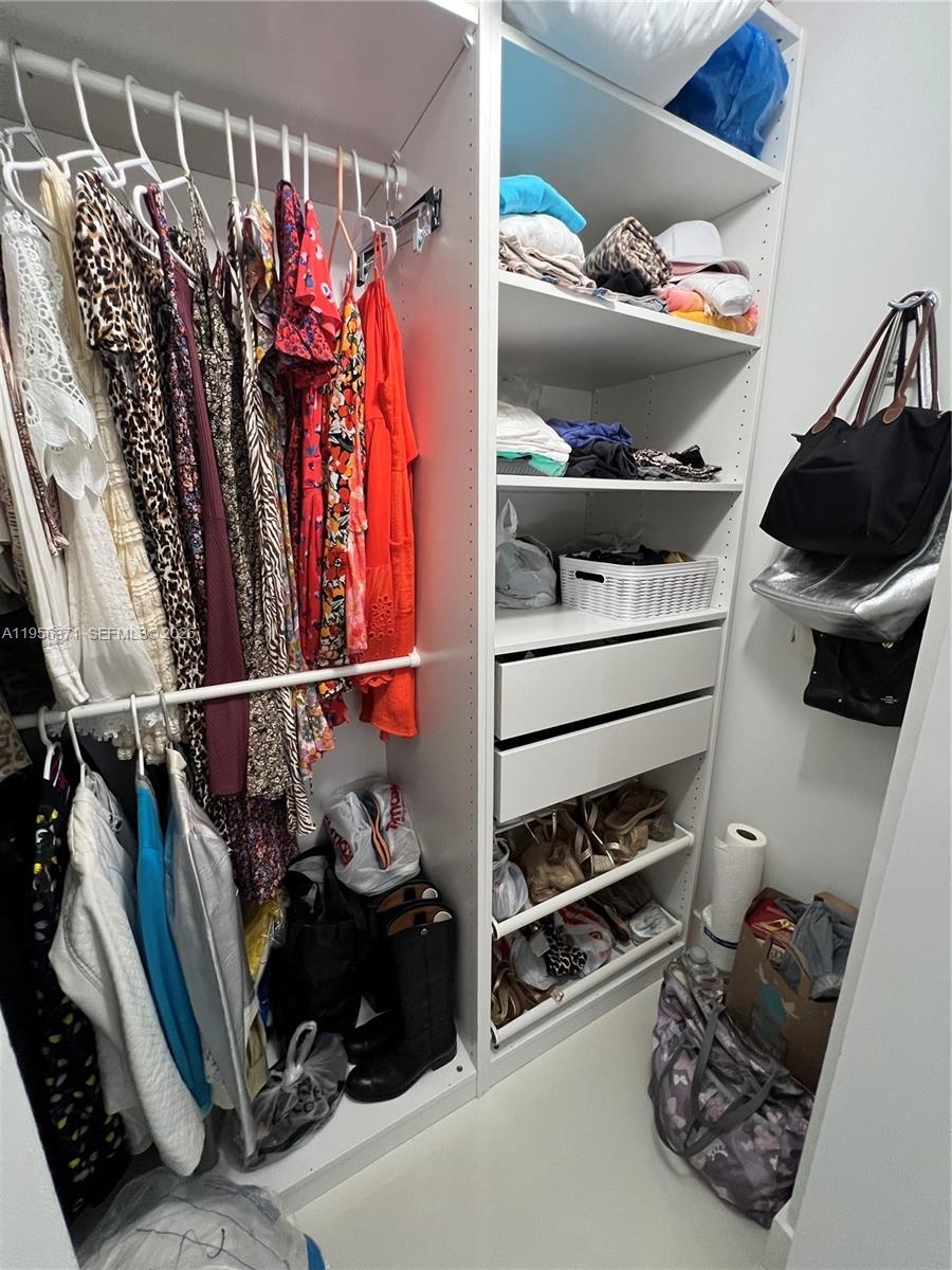 The second bedroom has a custom built closet, enough space for a king size bed and other furniture. The guest bathroom has a spacious shower with double glass doors and washer/dryer behind a sliding door.