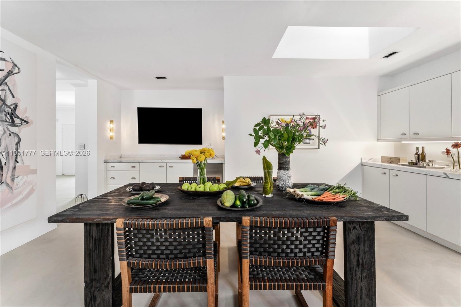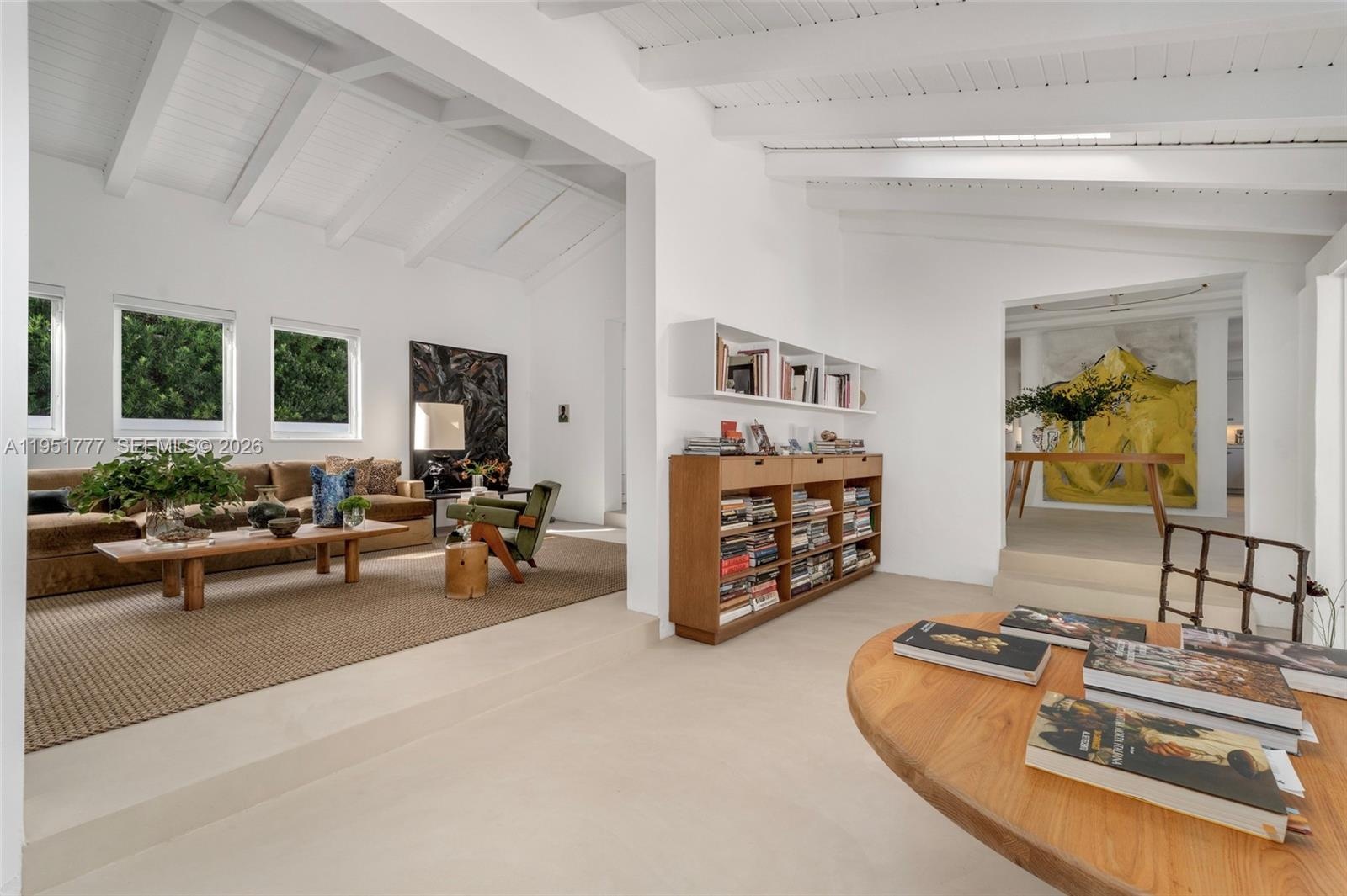 Modern, refined, and beautifully updated, this two-story, three-bedroom residence on Pine Tree Drive blends architectural calm with a warm welcoming aesthetic. Set on a corner lot with dual frontage, the property is fully enclosed by a solid concrete perimeter wall and gated entry, offering exceptional privacy, security and a sense of scale rarely found in dry-lot Miami Beach homes. All exterior elements have been thoughtfully redesigned, including new landscape, hardscape, architectural lighting, and gated entry, creating a composed and serene arrival experience. Inside, bright interiors are highlighted by white beamed ceilings, open living areas, and a clean architectural aesthetic. The upstairs primary suite offers elevated privacy, treetop views, and separation from social spaces, while two additional bedrooms downstairs provide flexibility for guests or office use. The property offers an unusually expansive outdoor environment made possible by its corner-lot setting. Three distinct garden areas—including a front garden, a rear garden with pool, and a private side garden—create a layered sense of openness, light and privacy rarely achievable on mid-block properties. Thoughtfully designed exterior circulation and perimeter walls transform the residence into a true private compound. Ideally located in prime Miami Beach, close to temples, schools, beaches and walkable neighborhood amenities, this is a private and elegant residence defined by design, serenity, and discretion.