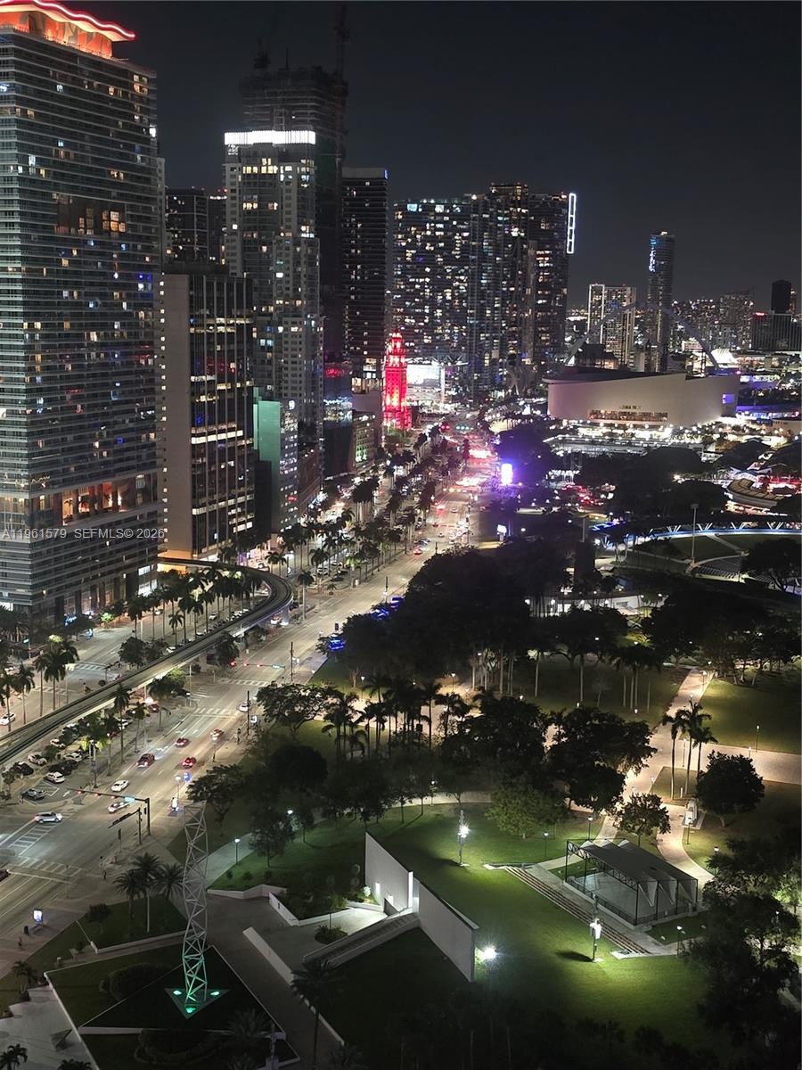 Corner unit with direct views of Bayside Park, Freedom Towner, Arena, Miami Arches, Bay and Ocean from living room. Views of Ocean and Bay from principal bedroom. Views of pool, river, and Miami skyline from second bedroom. Walk to Wholefoods, Starbucks, Bayside, Arena, Brickell City Center, Metromover stations, top rated restaurants, bars, museums. See today