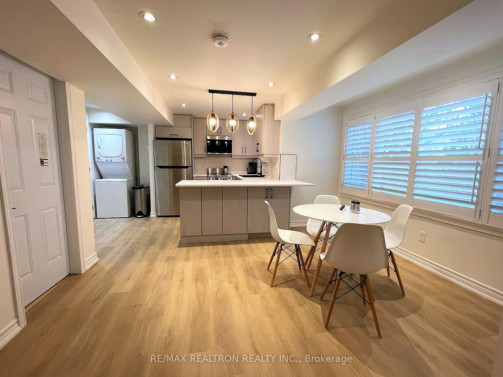 Absolutely Stunning and Charming Apartment Suite in Prestigious South Richvale Awaits! This recently renovated Sensational Sun-Filled Unit has been meticulously designed throughout by a Professional Designer with an ideal Functional Layout. Featuring a gorgeous Open Concept Modern Kitchen with Premium Counters & Breakfast Bar, Extended Cabinets, Backsplash, Full 5 Pc Suite Of Stainless Steel Appliances: Fridge, Stove, Microwave/Hood Fan Combo, & Dishwasher. Deep Sink with Faucet Glass Rinsers! Premium Laminate Floors, California Shutters, & Upgraded Pot Lights & Fixtures Thru-Out. Ensuite Laundry Combo with Convenient Built-In Shelving. Bedroom Retreat with French Doors and a Large Closet. Simply Move In and Enjoy! Fully Furnished includes: Mounted HD TV, Streaming Device, Sofa, Nesting Tables & More. Separate Entrance. Parking Included for 2 Cars! Don't miss out on this Tremendous Opportunity! ** Legal Apartment with all City Permits & Approvals **