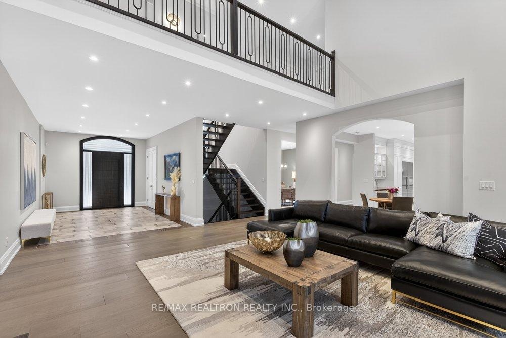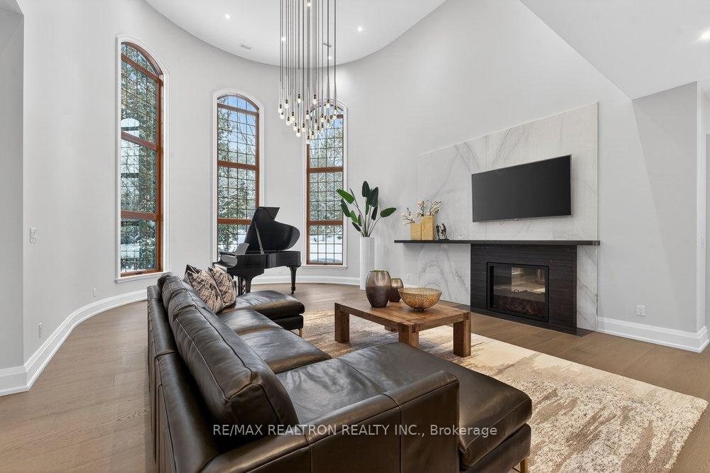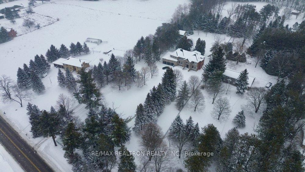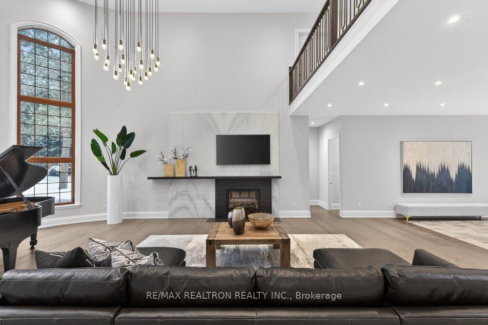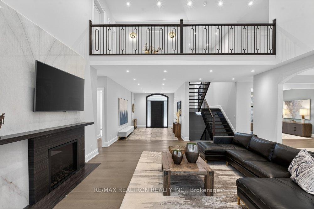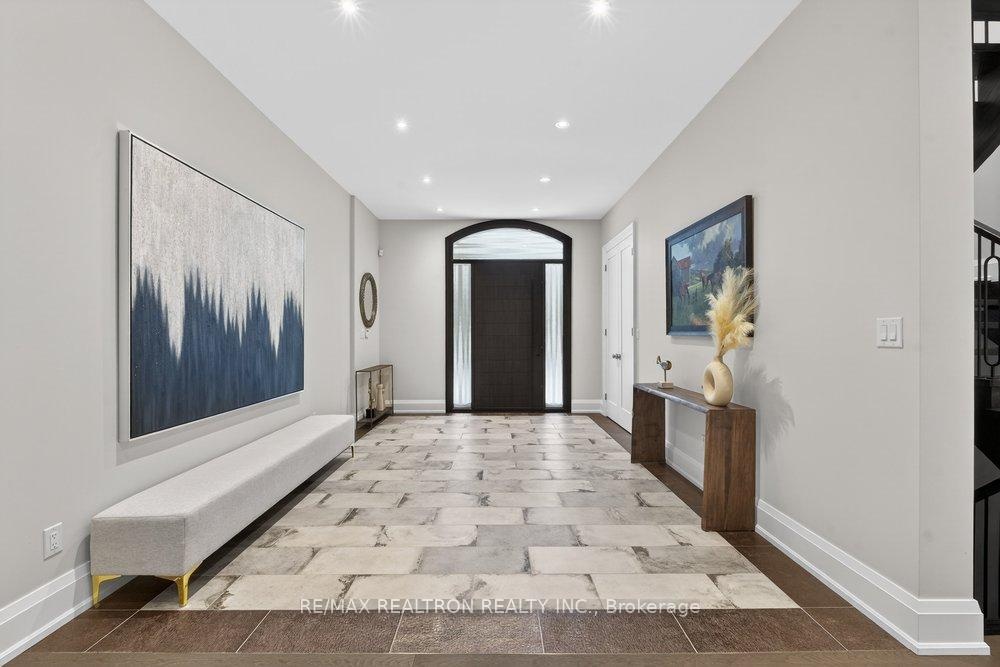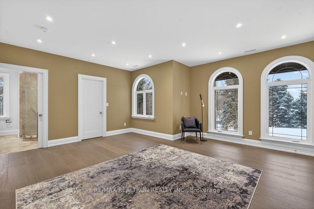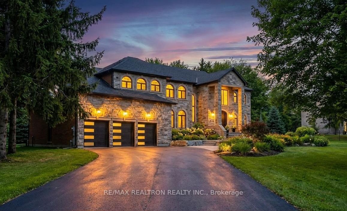 Welcome to a Marvel of Modern Construction. Recently Completed on a 2.4-acre Gated Estate in Prestigious King Offering over 7,500 Sq ft of refined luxury living (5800 SQ.FT+2950 SQFT). A long, tree-lined approach unveils a residence defined by natural stone and brick masonry, balanced proportions, and striking architectural presence. Soaring two-storey 20-ft ceilings crown the grand great room, creating a dramatic yet elegant setting for entertaining. The chef's kitchen anchors the home with a quartzite island, premium built-in appliances, dual cooktops and ovens, and an oversized walk-in pantry. Each bedroom features a private en-suite, including a main-floor suite, designed for seamless multi-generational living. The upper primary retreat offers a spa-inspired en-suite and bespoke dressing room. The finished lower level, with 12-ft ceilings and golf simulator rough-in, adds exceptional lifestyle flexibility. Notable upgrades include dual HVAC systems, radiant floor heating, spray foam insulation, and a tankless water system. A 3-car garage, heated 30x30 workshop, and expansive two-tier deck complete the estate. Minutes to Hwy 400, top private schools, and amenities-an enduring legacy property defined by craftsmanship, privacy, and location.