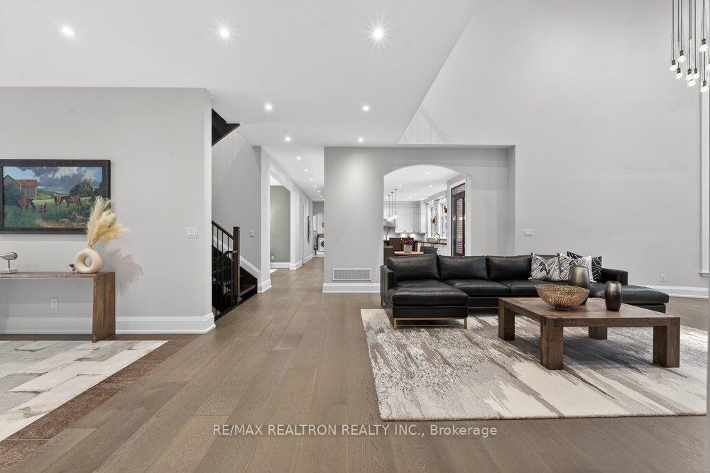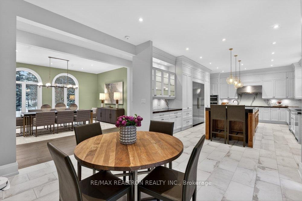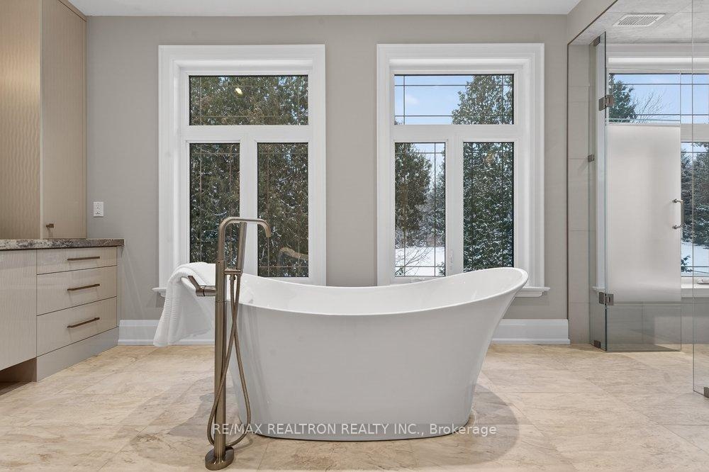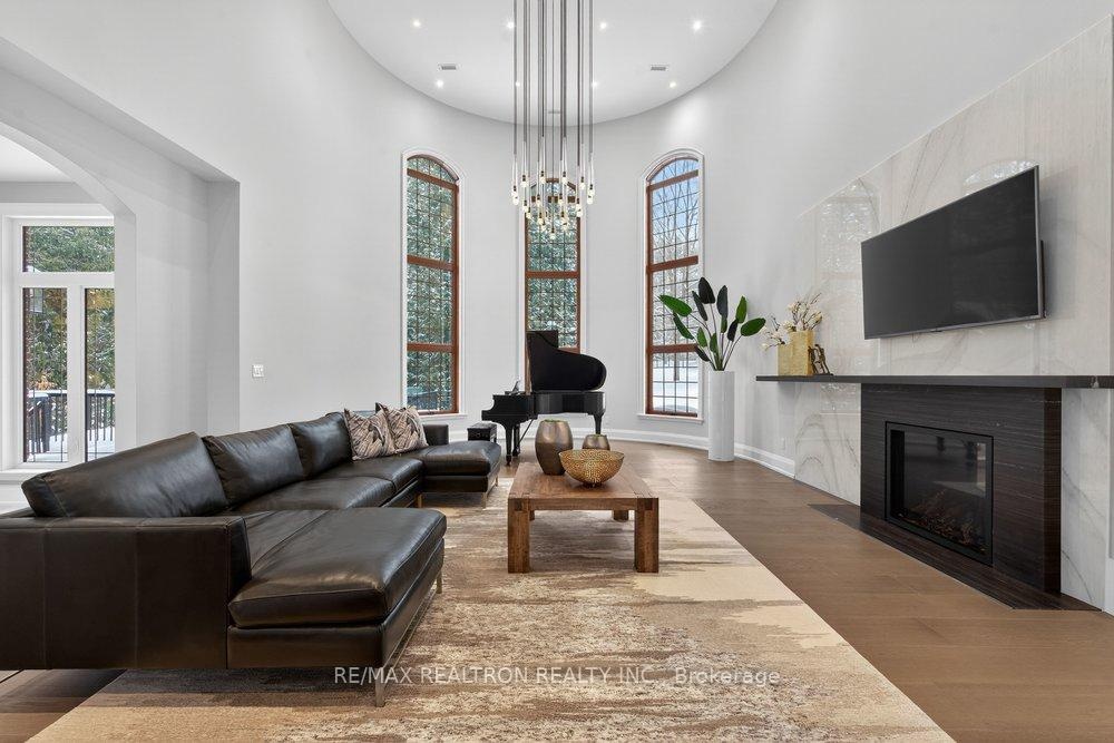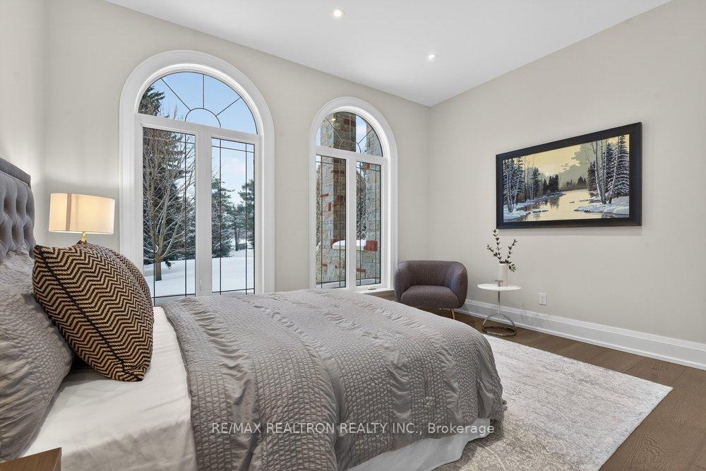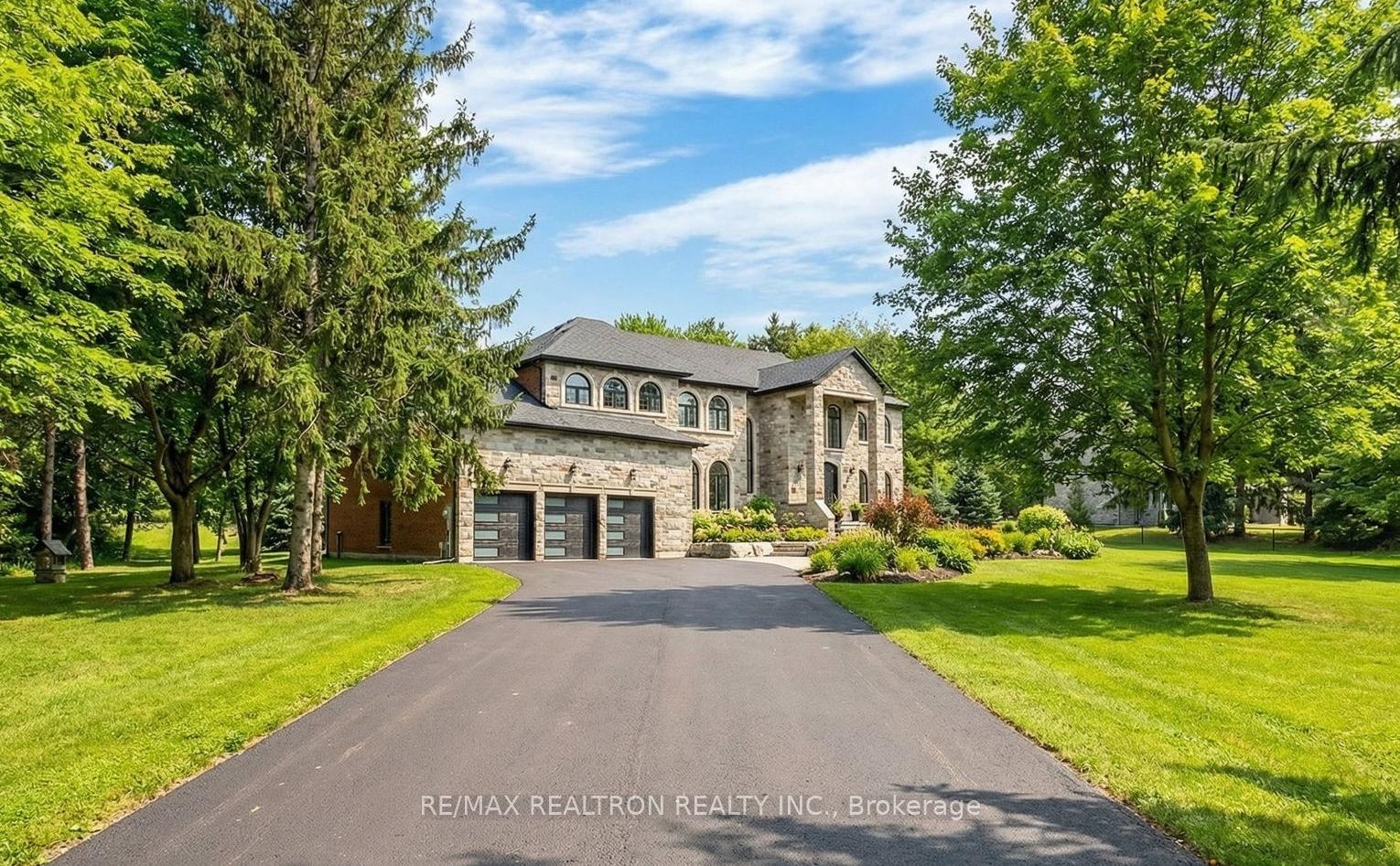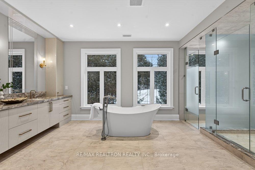 Welcome to a Marvel of Modern Construction. Recently Completed on a 2.4-acre Gated Estate in Prestigious King Offering over 7,500 Sq ft of refined luxury living (5800 SQ.FT+2950 SQFT). A long, tree-lined approach unveils a residence defined by natural stone and brick masonry, balanced proportions, and striking architectural presence. Soaring two-storey 20-ft ceilings crown the grand great room, creating a dramatic yet elegant setting for entertaining. The chef's kitchen anchors the home with a quartzite island, premium built-in appliances, dual cooktops and ovens, and an oversized walk-in pantry. Each bedroom features a private en-suite, including a main-floor suite, designed for seamless multi-generational living. The upper primary retreat offers a spa-inspired en-suite and bespoke dressing room. The finished lower level, with 12-ft ceilings and golf simulator rough-in, adds exceptional lifestyle flexibility. Notable upgrades include dual HVAC systems, radiant floor heating, spray foam insulation, and a tankless water system. A 3-car garage, heated 30x30 workshop, and expansive two-tier deck complete the estate. Minutes to Hwy 400, top private schools, and amenities-an enduring legacy property defined by craftsmanship, privacy, and location.