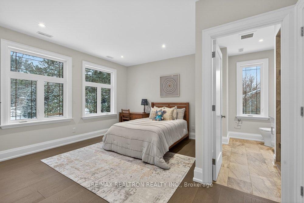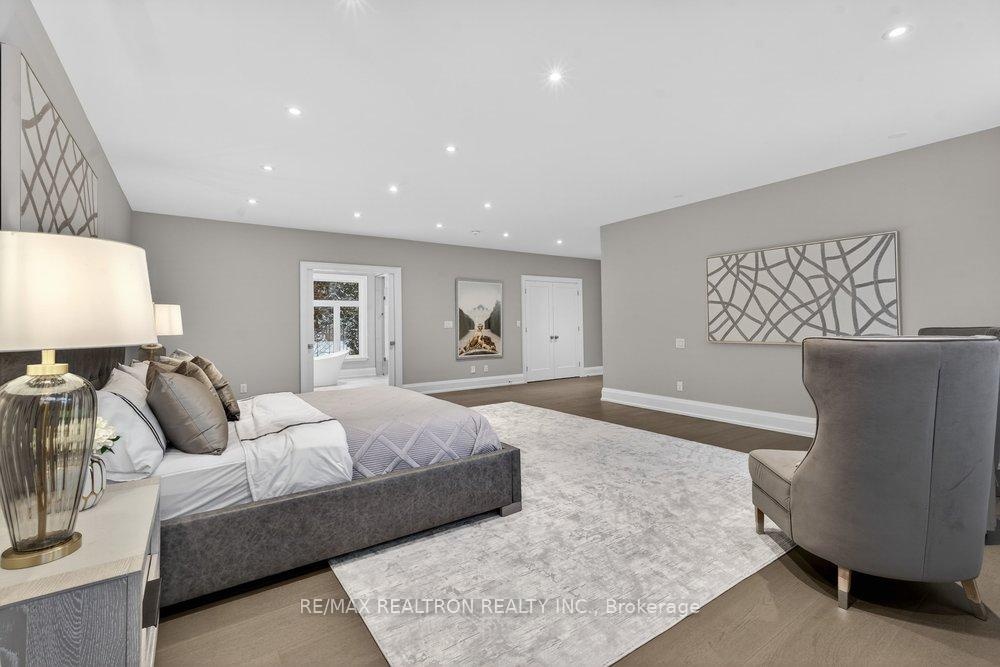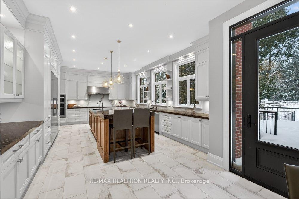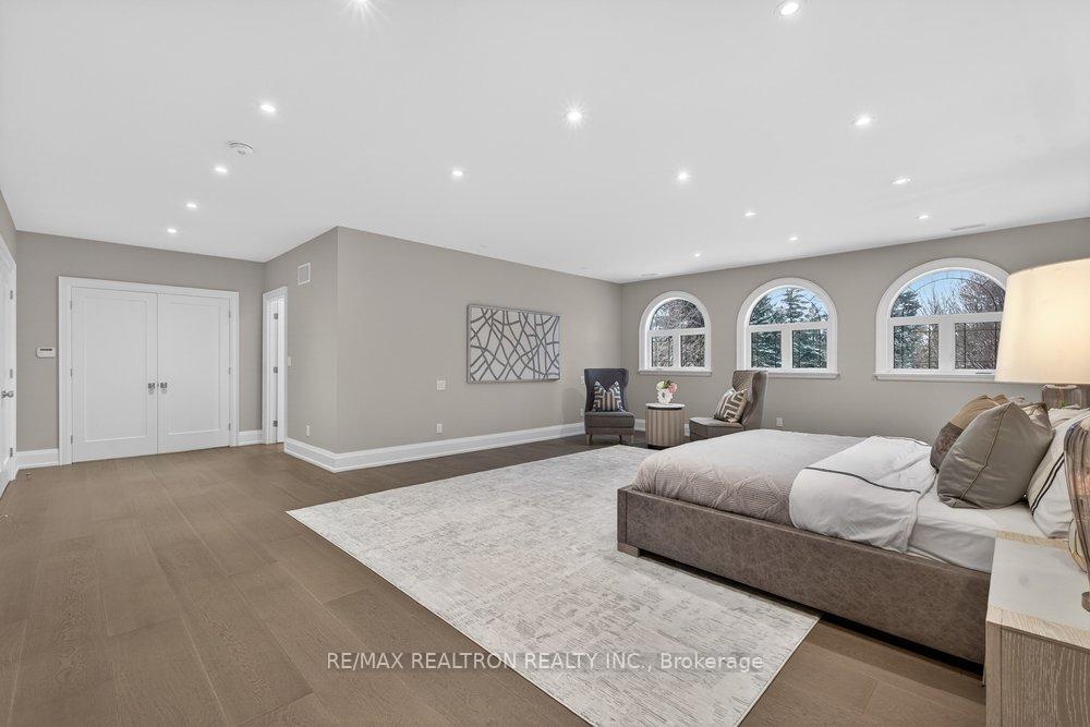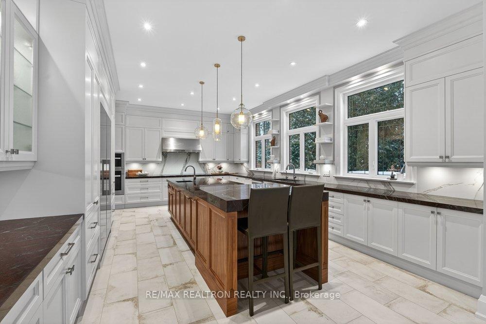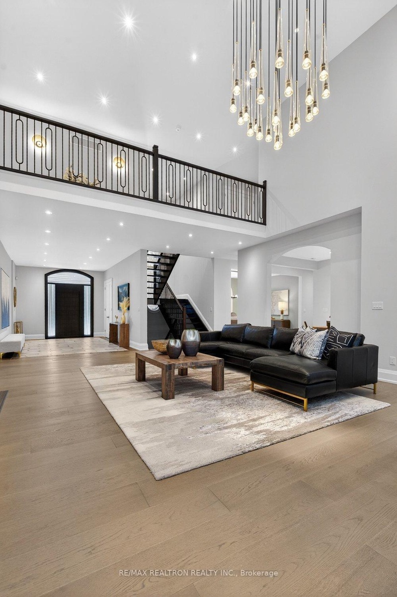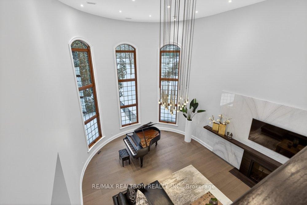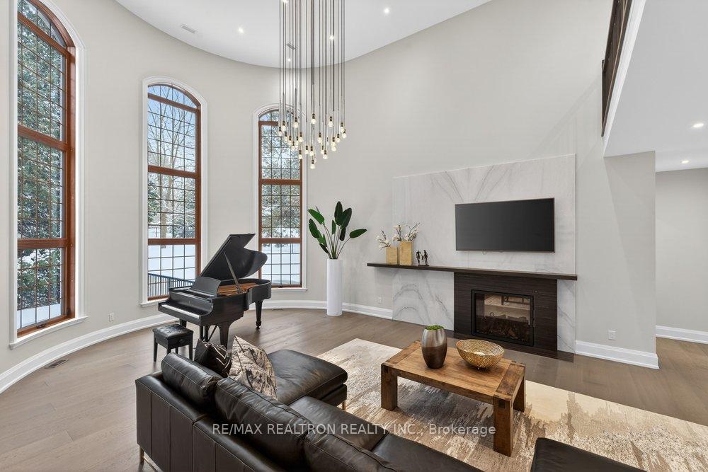 Welcome to a Marvel of Modern Construction. Recently Completed on a 2.4-acre Gated Estate in Prestigious King Offering over 7,500 Sq ft of refined luxury living (5800 SQ.FT+2950 SQFT). A long, tree-lined approach unveils a residence defined by natural stone and brick masonry, balanced proportions, and striking architectural presence. Soaring two-storey 20-ft ceilings crown the grand great room, creating a dramatic yet elegant setting for entertaining. The chef's kitchen anchors the home with a quartzite island, premium built-in appliances, dual cooktops and ovens, and an oversized walk-in pantry. Each bedroom features a private en-suite, including a main-floor suite, designed for seamless multi-generational living. The upper primary retreat offers a spa-inspired en-suite and bespoke dressing room. The finished lower level, with 12-ft ceilings and golf simulator rough-in, adds exceptional lifestyle flexibility. Notable upgrades include dual HVAC systems, radiant floor heating, spray foam insulation, and a tankless water system. A 3-car garage, heated 30x30 workshop, and expansive two-tier deck complete the estate. Minutes to Hwy 400, top private schools, and amenities-an enduring legacy property defined by craftsmanship, privacy, and location.