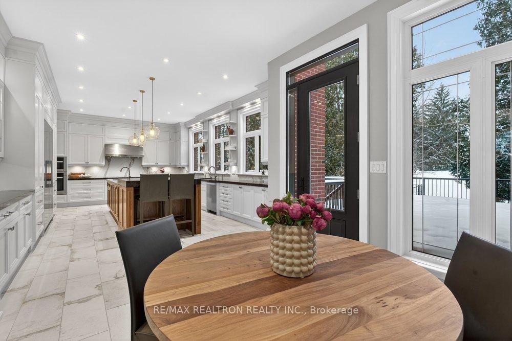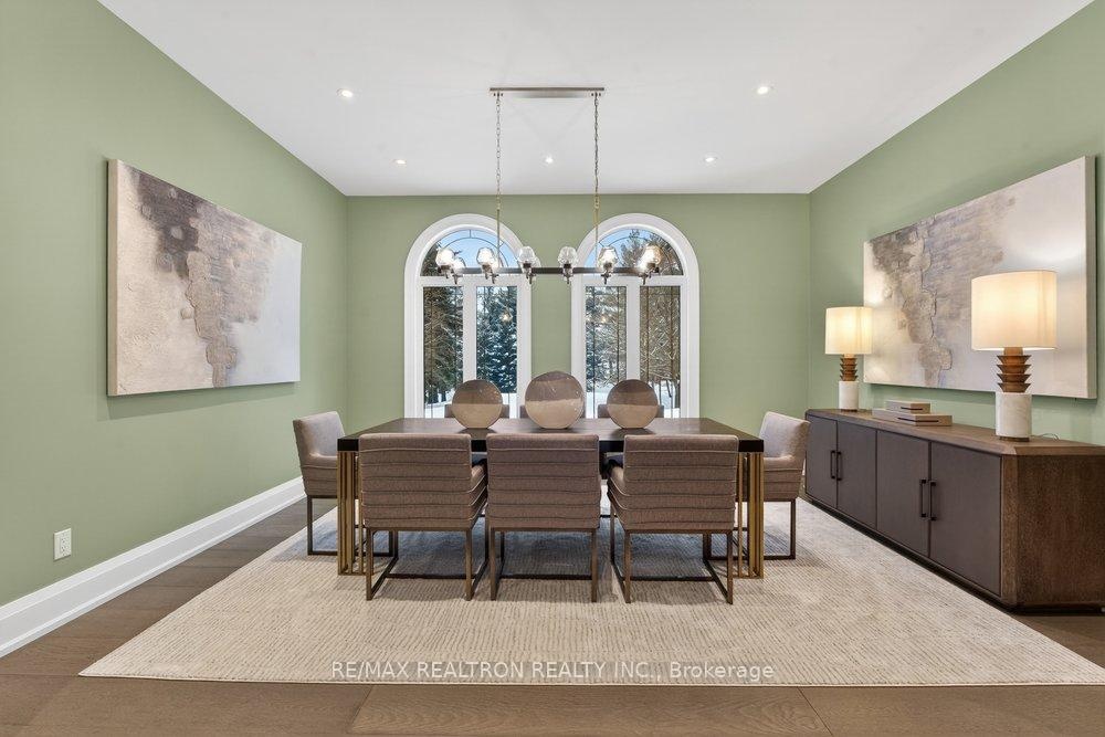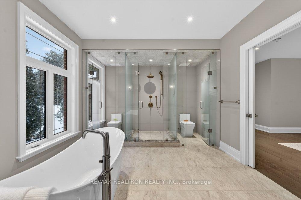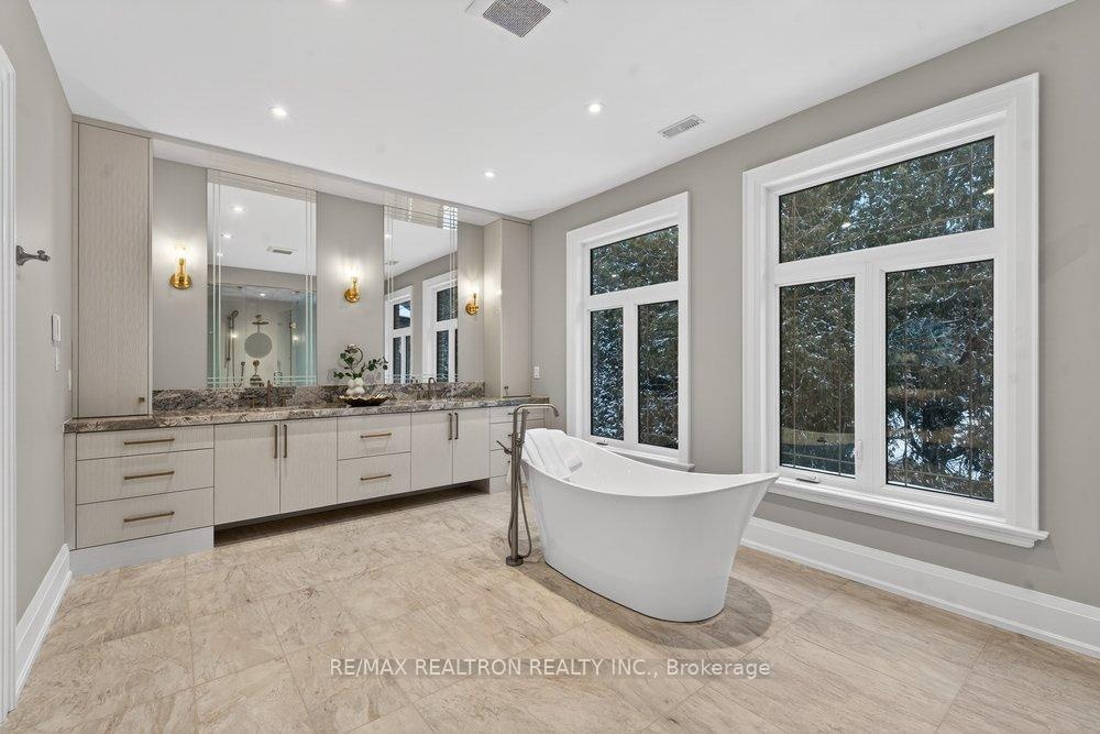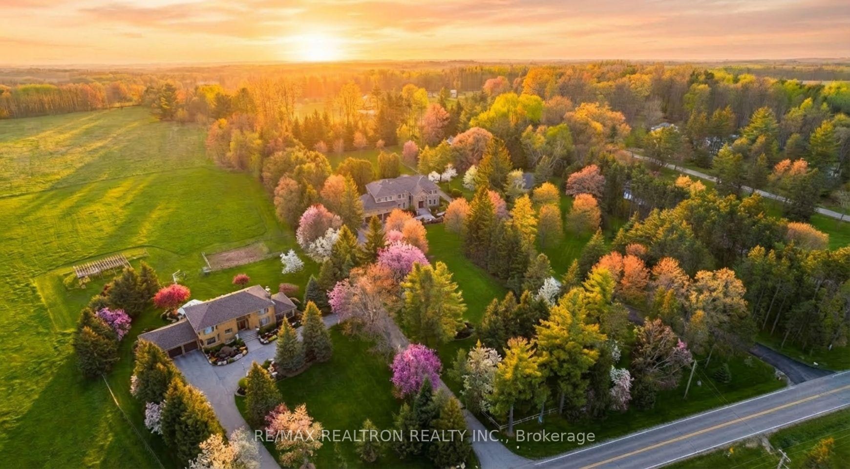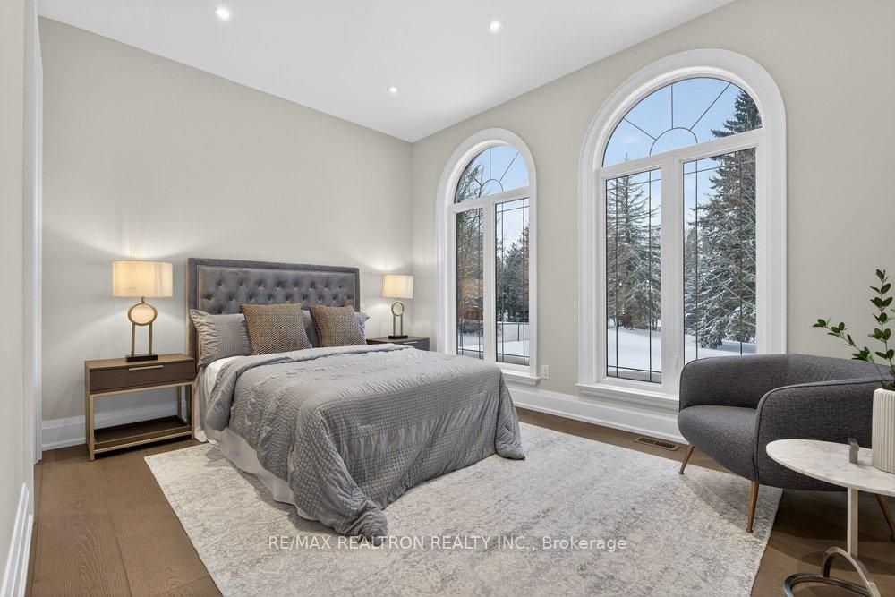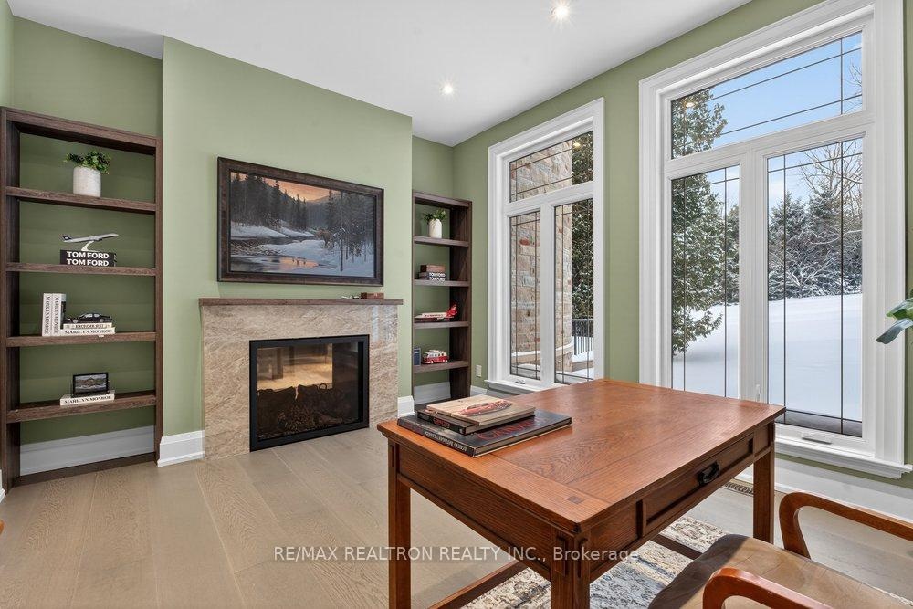 Welcome to a Marvel of Modern Construction. Recently Completed on a 2.4-acre Gated Estate in Prestigious King Offering over 7,500 Sq ft of refined luxury living (5800 SQ.FT+2950 SQFT). A long, tree-lined approach unveils a residence defined by natural stone and brick masonry, balanced proportions, and striking architectural presence. Soaring two-storey 20-ft ceilings crown the grand great room, creating a dramatic yet elegant setting for entertaining. The chef's kitchen anchors the home with a quartzite island, premium built-in appliances, dual cooktops and ovens, and an oversized walk-in pantry. Each bedroom features a private en-suite, including a main-floor suite, designed for seamless multi-generational living. The upper primary retreat offers a spa-inspired en-suite and bespoke dressing room. The finished lower level, with 12-ft ceilings and golf simulator rough-in, adds exceptional lifestyle flexibility. Notable upgrades include dual HVAC systems, radiant floor heating, spray foam insulation, and a tankless water system. A 3-car garage, heated 30x30 workshop, and expansive two-tier deck complete the estate. Minutes to Hwy 400, top private schools, and amenities-an enduring legacy property defined by craftsmanship, privacy, and location.