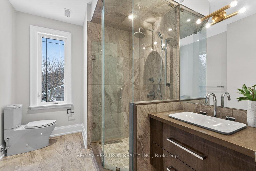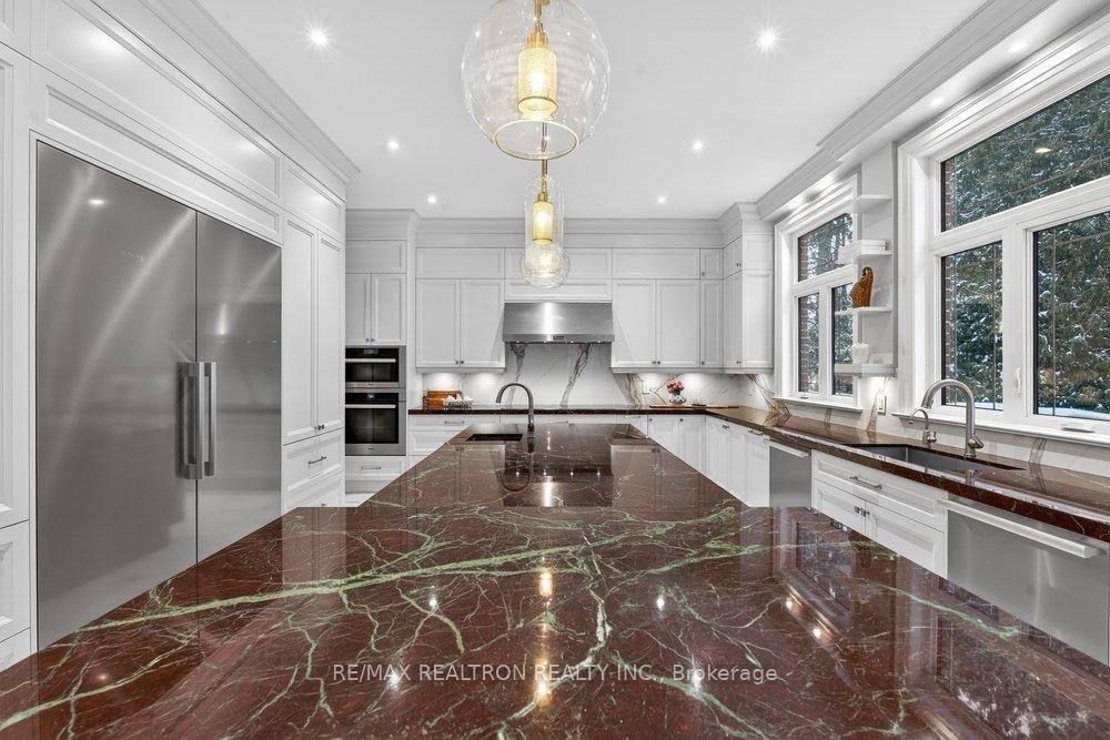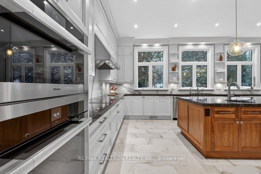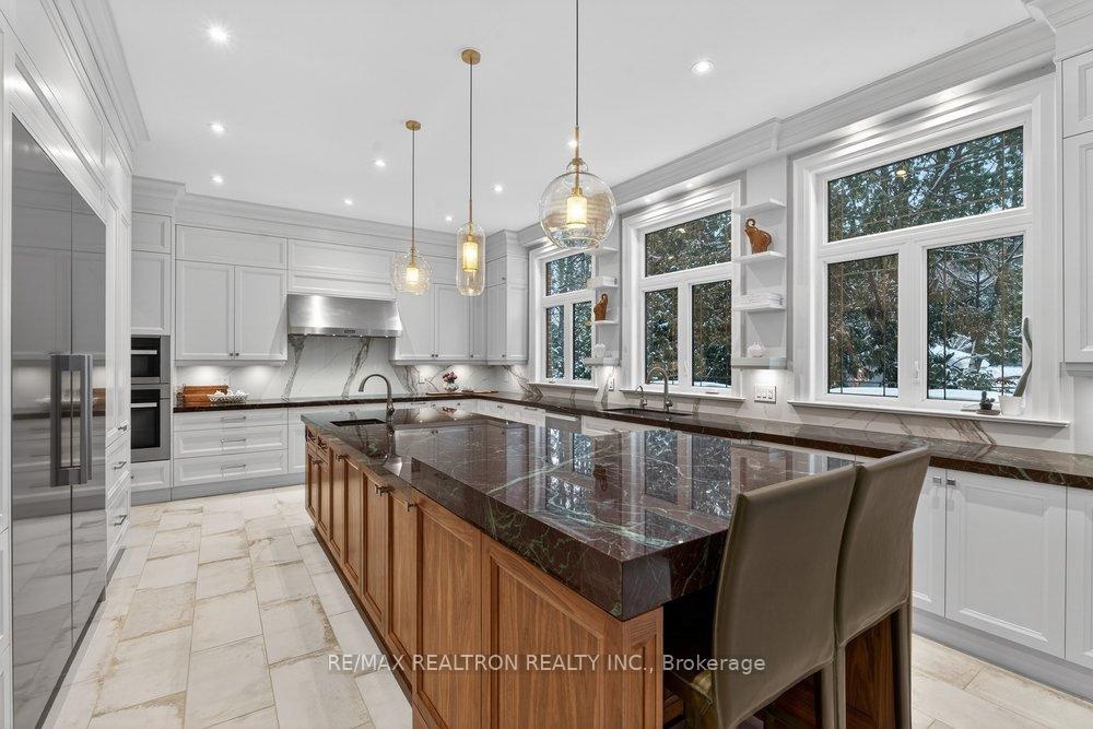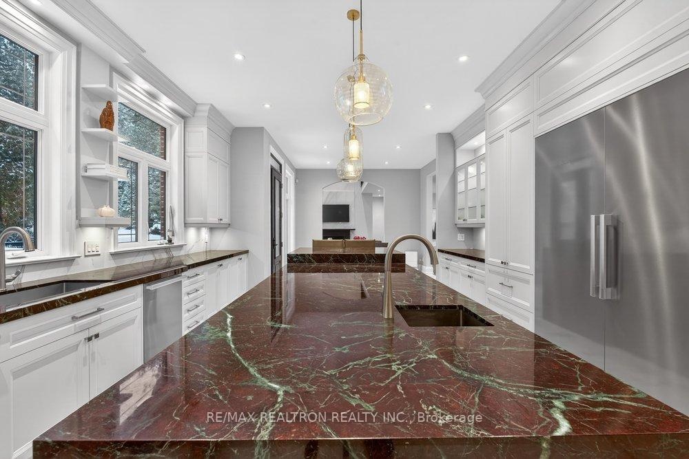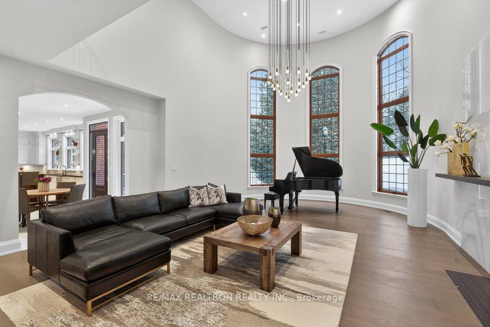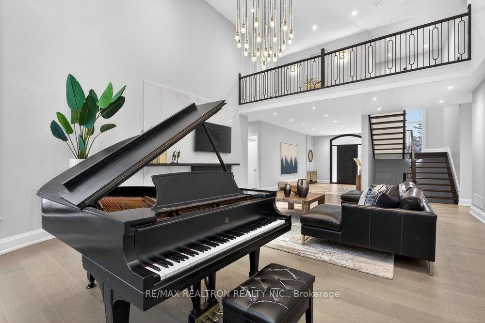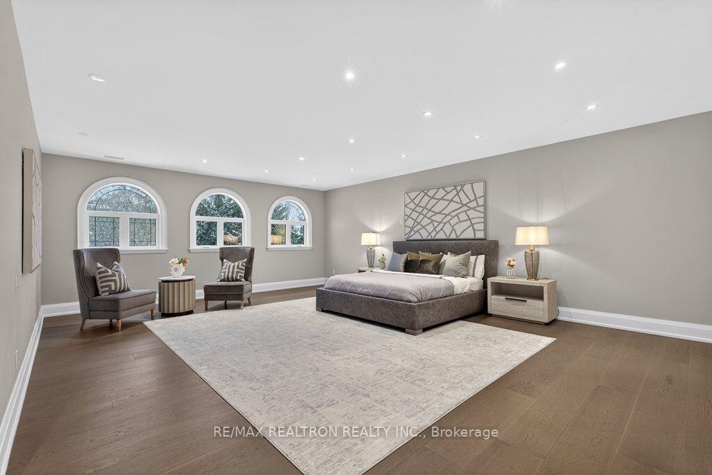 Welcome to a Marvel of Modern Construction. Recently Completed on a 2.4-acre Gated Estate in Prestigious King Offering over 7,500 Sq ft of refined luxury living (5800 SQ.FT+2950 SQFT). A long, tree-lined approach unveils a residence defined by natural stone and brick masonry, balanced proportions, and striking architectural presence. Soaring two-storey 20-ft ceilings crown the grand great room, creating a dramatic yet elegant setting for entertaining. The chef's kitchen anchors the home with a quartzite island, premium built-in appliances, dual cooktops and ovens, and an oversized walk-in pantry. Each bedroom features a private en-suite, including a main-floor suite, designed for seamless multi-generational living. The upper primary retreat offers a spa-inspired en-suite and bespoke dressing room. The finished lower level, with 12-ft ceilings and golf simulator rough-in, adds exceptional lifestyle flexibility. Notable upgrades include dual HVAC systems, radiant floor heating, spray foam insulation, and a tankless water system. A 3-car garage, heated 30x30 workshop, and expansive two-tier deck complete the estate. Minutes to Hwy 400, top private schools, and amenities-an enduring legacy property defined by craftsmanship, privacy, and location.