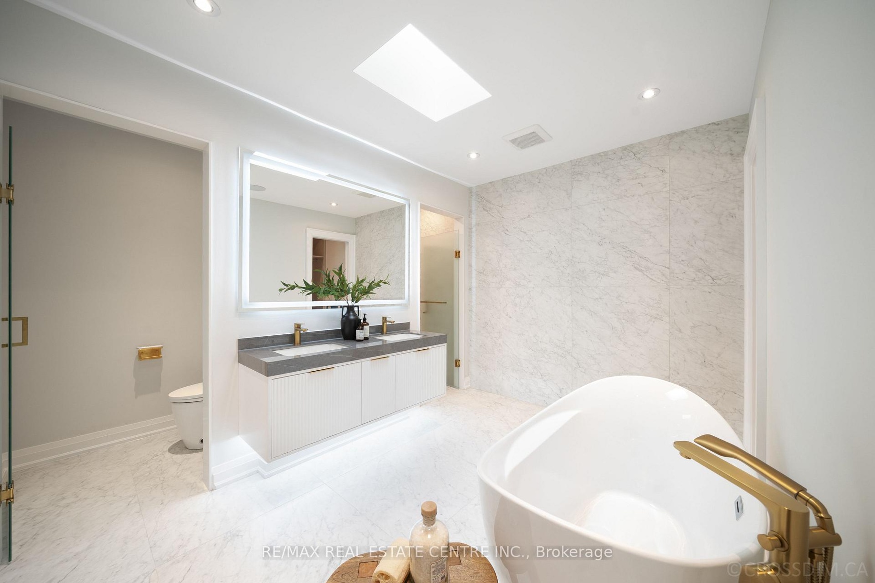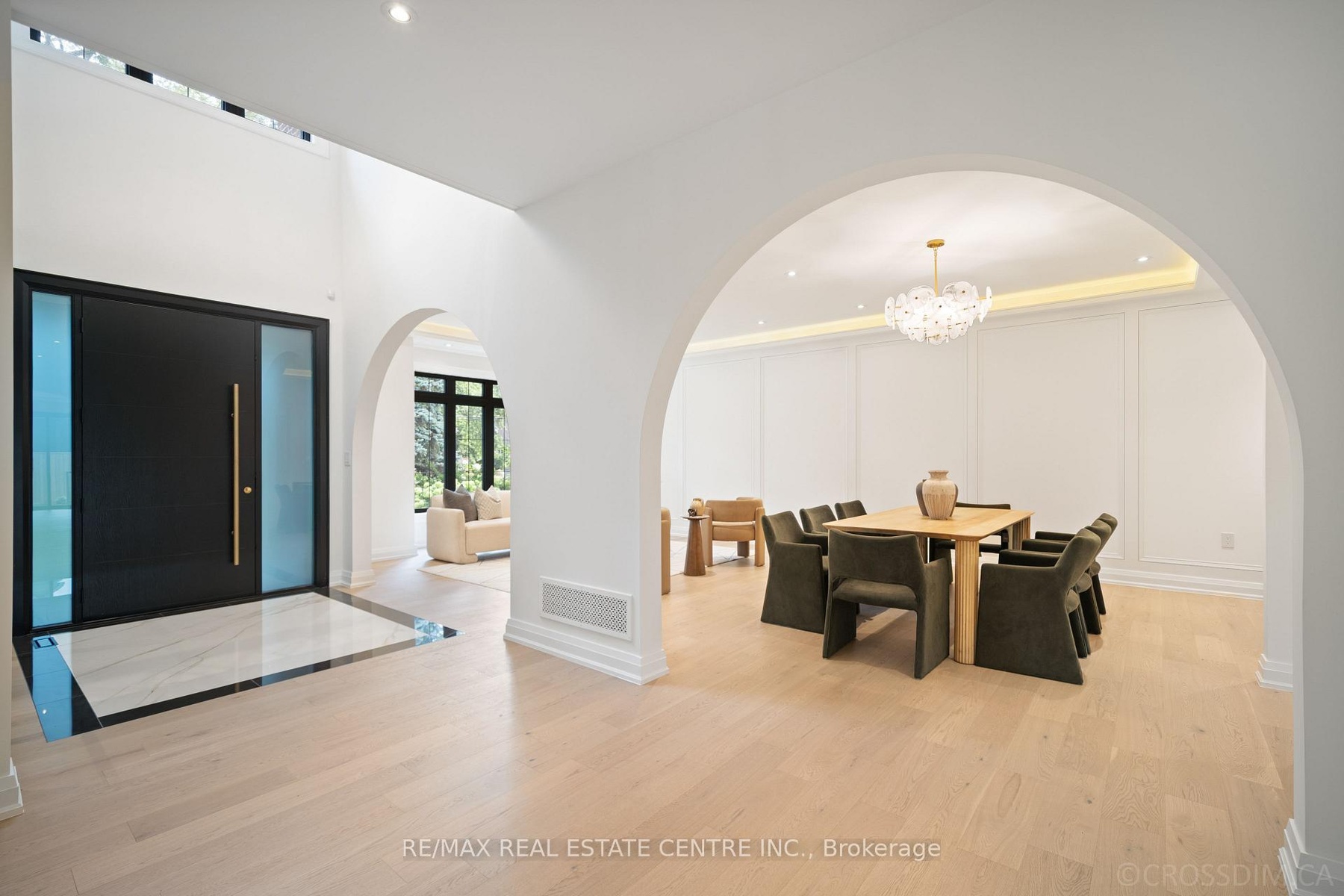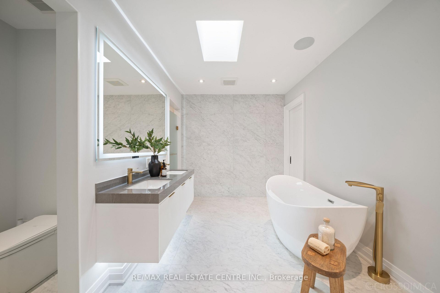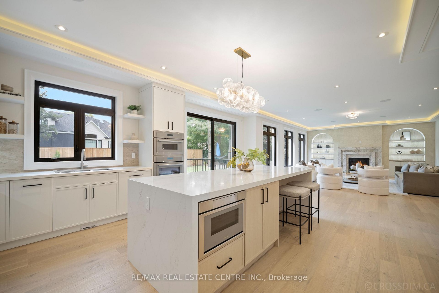 Redefine Elegance In This Masterfully Designed Residence Where Timeless Architecture Meets Modern Sophistication. Created By Rohit Bhoite, An Internationally Renowned Interior Designer With An Unwavering Passion For High-End Finishes, This Custom Home Is A Rare Statement Of Artistry And Craftsmanship. Situated On An Impressive 75X150 Ft Lot With Over 6000 SqFt Of Meticulously Designed, Functional Living Space Across 3 Levels. Located In The Prestigious Pocket Of Southwest Oakville Surrounded By Amenities And Walking Distance To Lake And Top Rated Schools Including Appleby College. Step Into The Welcoming Entryway Framed By Graceful Archways And Soaring Ceilings Leading To Open Concept Living And Dining Room With Luxury Trimwork And Integrated LED Cove Lighting. The Home Office Is A True Statement Of Space With Its Bold Character And Dramatic Windows To Create An Atmosphere Designed To Inspire And Ignite Creativity. The Gourmet Chefs Kitchen Is A True Showpiece Offering A Sleek, Oversized Calacatta Quartz Waterfall Island, Two-Tone Custom Cabinetry, Integrated Thermador Appl, Luxury Porcelain Backsplash Complete With W/I Pantry And Servery. The Family Room Showcases Italian Marble Fireplace Mantle Highlighted By Graceful Travertine-Inspired Archways And B/I Shelving. The Main Level Is Complete With W/O To Deck And Fully Enclosed Yard, Direct Access To The Dbl Car Garage And Mudroom, And Iconic Milano-Inspired Powder Room. Upper Level Offers 3 Skylights, Full Laundry Room And 4 Spacious Bedrooms, All With Ensuite Baths And Spacious Closets. The Primary Retreat Features Spacious His&Hers W/I Closets Complete With B/I Custom Shelving, Elevated Lighting, Fireplace And 5Pc Spa-Quality Bath. Fully Finished Lower Level Offers 2 Additional Bedrooms, 1.5 Baths, Custom Glass Enclosed Wine Bottle Storage, Fitness Centre, Home Theatre And Expansive Living Area With Kitchenette. Experience The Perfect Balance Of Luxury Modern Design And Timeless Warmth. Your Dream Home Awaits!