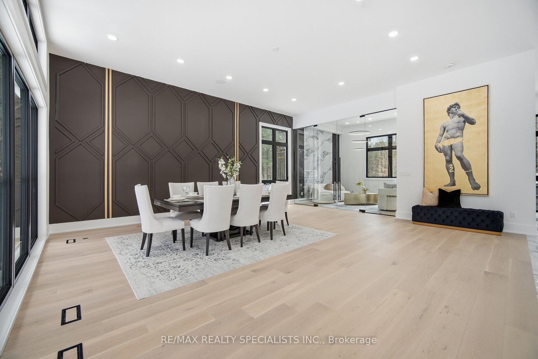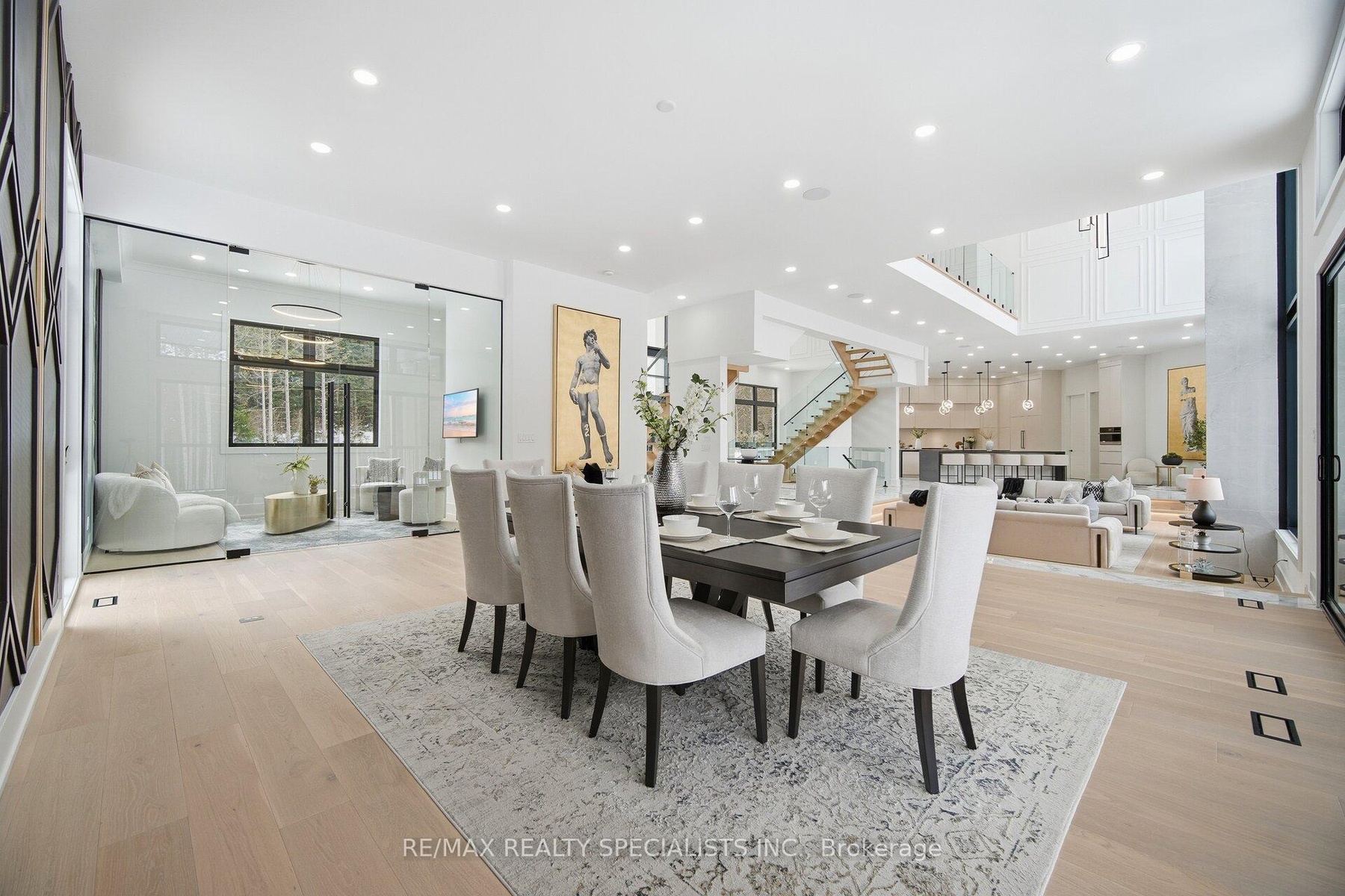 Welcome to this exceptional luxury estate, gracefully set on 9.3 acres of pristine land along the coveted Gore Road. A true architectural masterpiece, this recently built residence offers 6,952 sq. ft. of above-grade living space plus an exquisite newly finished walk out basement, where every detail reflects sophistication, comfort, and timeless elegance. From soaring ceilings and bespoke finishes to the serene private backyard, this is more than a home-it's a lifestyle. The grand entrance makes a striking first impression with a dramatic double staircase that sets the tone for the refined design throughout. The main level is adorned with 7 3/4" Snow White Oak hardwood flooring an delegant 7 1/2" baseboards, creating a seamless and sophisticated aesthetic. Designed with the modern entertainer in mind, the home features two state-of-the-art kitchens equipped with premium appliances, oversized islands with built-in wireless charging stations, and a spacious walk-in pantry-perfectly balancing style and functionality. The show-stopping family room boasts a breathtaking 23-foot open-to-above ceiling, offering an extraordinary space for both grand entertaining and everyday luxury. This remarkable residence offers five generously sized bedrooms, each complete with its own spa-inspired ensuite featuring heated floors and wall-mounted toilets for ultimate comfort. Additional highlights include a private nanny suite above the garage. A rare offering where thoughtful design meets unparalleled luxury. Schedule your private tour today and experience this extraordinary estate for yourself.