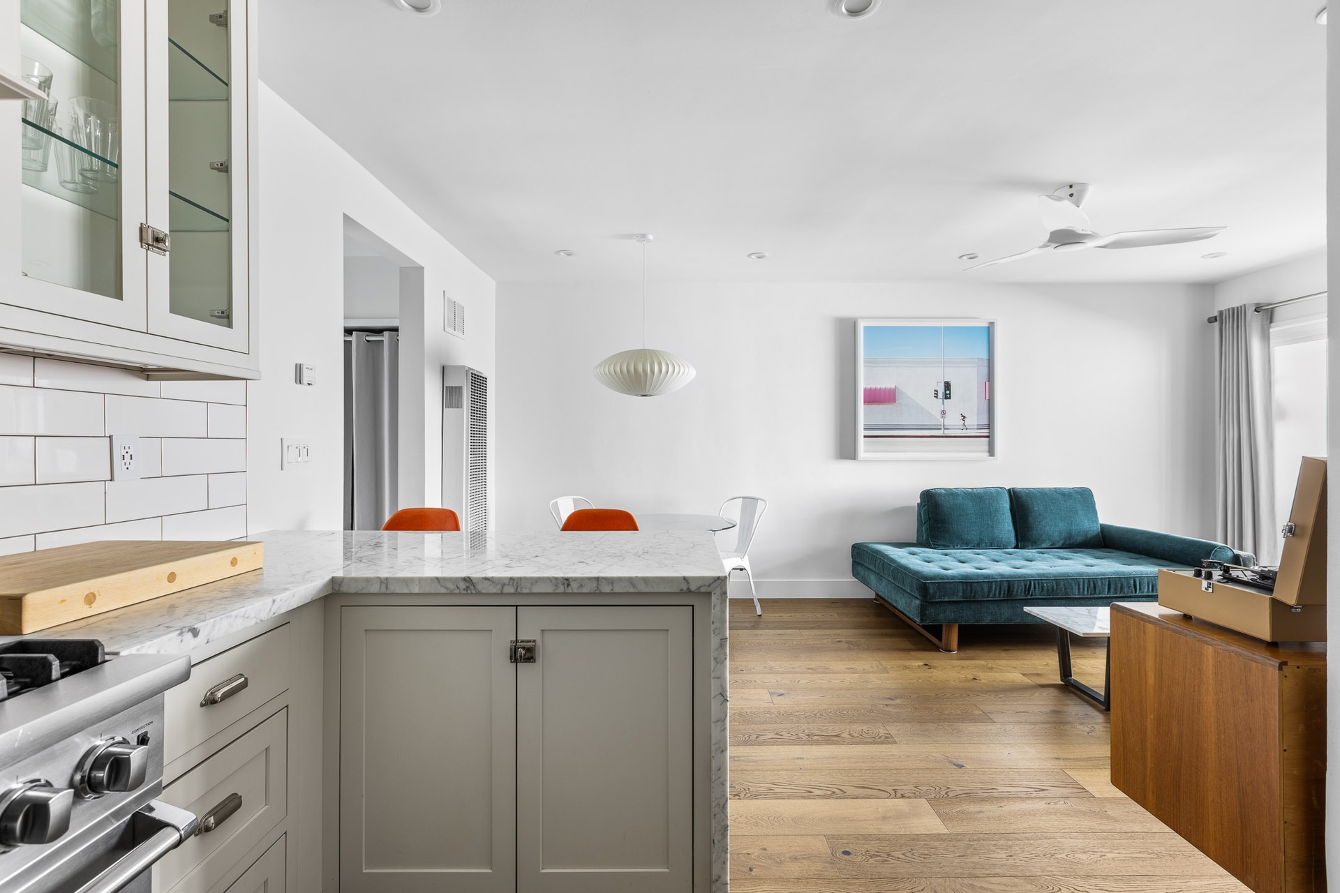 Remarks : A RARE opportunity to lease a true gem in one of Hollywood's most desirable neighborhoods. This fully furnished, extensively renovated one-bedroom condo in the heart of Franklin Village, is move in ready! Located in a prime walkable location in Hollywood near restaurants, cafes, and Gelson's market. This thoughtfully updated condo features white French oak hardwood flooring, subway-tile kitchen and bath, and Carrara marble waterfall countertops with custom cabinets and lighting. The kitchen offers high-end appliances include a Viking gas stove and Bosch refrigerator/freezer, and all the small appliances you may need. The bathroom is finished with marble floors, a large walk-in shower, and Toto toilet. Additional highlights include built-in bedroom closets, wall and portable A/C, LED ceiling lighting throughout, reverse osmosis water filtration system, and vintage Turkish rugs. The condo community offers shared laundry and patio space. Please note, there is NO parking on-site. Tenants may use street parking (which has not been an issue) or rent a nearby space. Easy to show!! Tenant required to pay a non-refundable $100 HOA move-in fee.