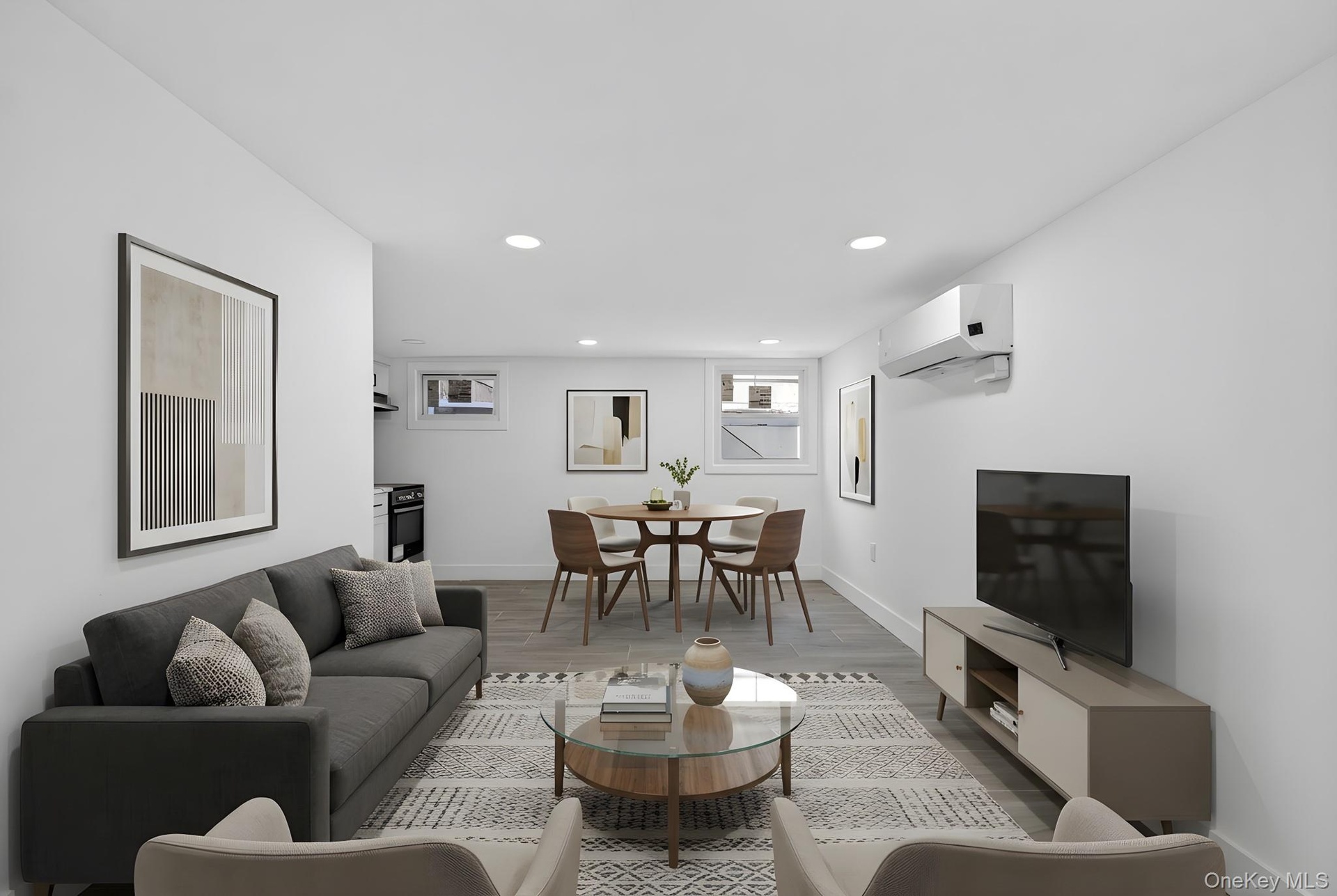 Renovations include brand new select wood flooring, recessed lighting, updated electrical, heating, plumbing, energy efficient split unit central A/C systems.
