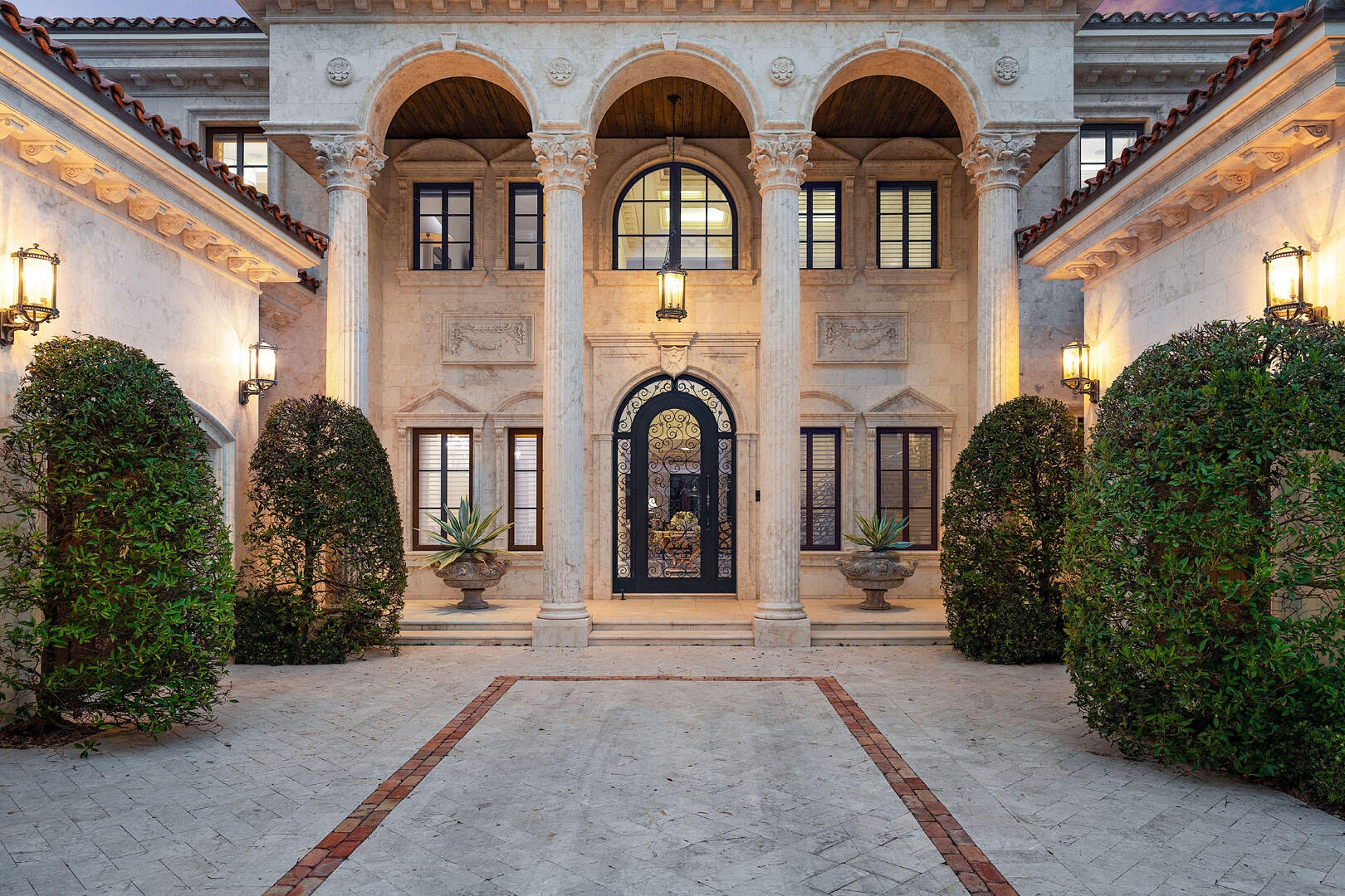 Villa Diassi is a waterfront work of art, nestled along the prestigious Buccaneer Palm Waterway with direct Intracoastal access. Designed for those who demand excellence, this five-bedroom residence, enhanced by a club room and private library, is a rare blend of timeless Venetian architectural distinction and coastal elegance. Sunlight pours over the estate's western-facing outdoor spaces, where a heated infinity-edge pool creates an exquisite setting for leisure and grand entertaining. A covered patio with retractable screens extends the home's indoor luxuries to the outdoors through vanishing sliding glass doors. At the heart of Villa Diassi, a gourmet kitchen impresses with dual center islands, premium appliances, and superior craftsmanship, setting the stage for inspired culinary pursuits. Upstairs, the primary suite is a private sanctuary featuring His & Her baths and dressing rooms, a morning bar, and a private balcony overlooking the serene waterway and pool. Thoughtfully engineered for peace of mind and enduring comfort, the home has natural gas, a generator, an elevator, Lutron lighting, a yacht-ready dock, and impact glass, further enhancing Villa Diassi's uncompromised lifestyle.